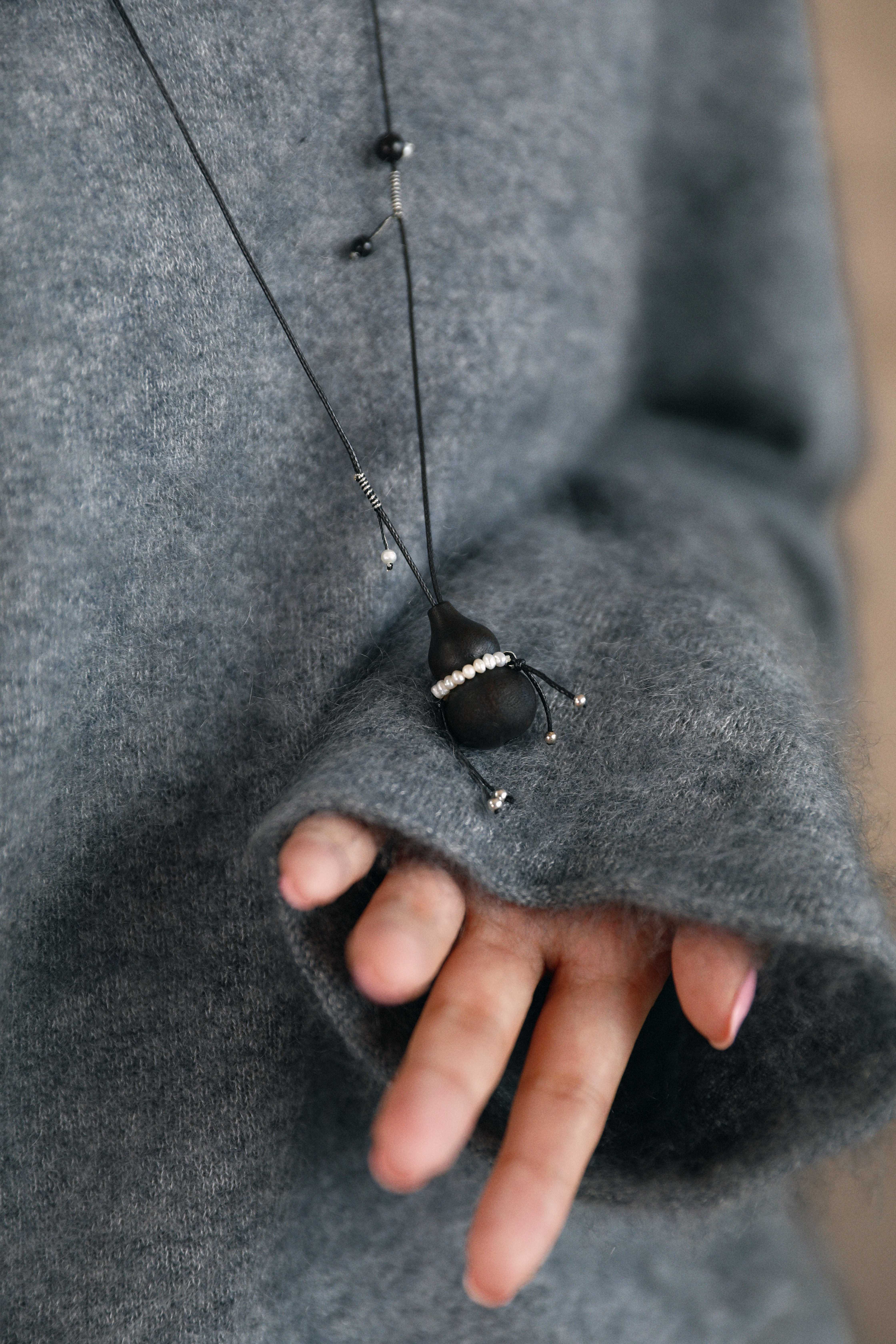 温润的黑檀木葫芦,纯手工雕刻,保留木材天然的肌理与气息,寓意“福禄”常在!葫芦腰间环绕一圈淡水珍珠,不规则的外形尽显随性之美!