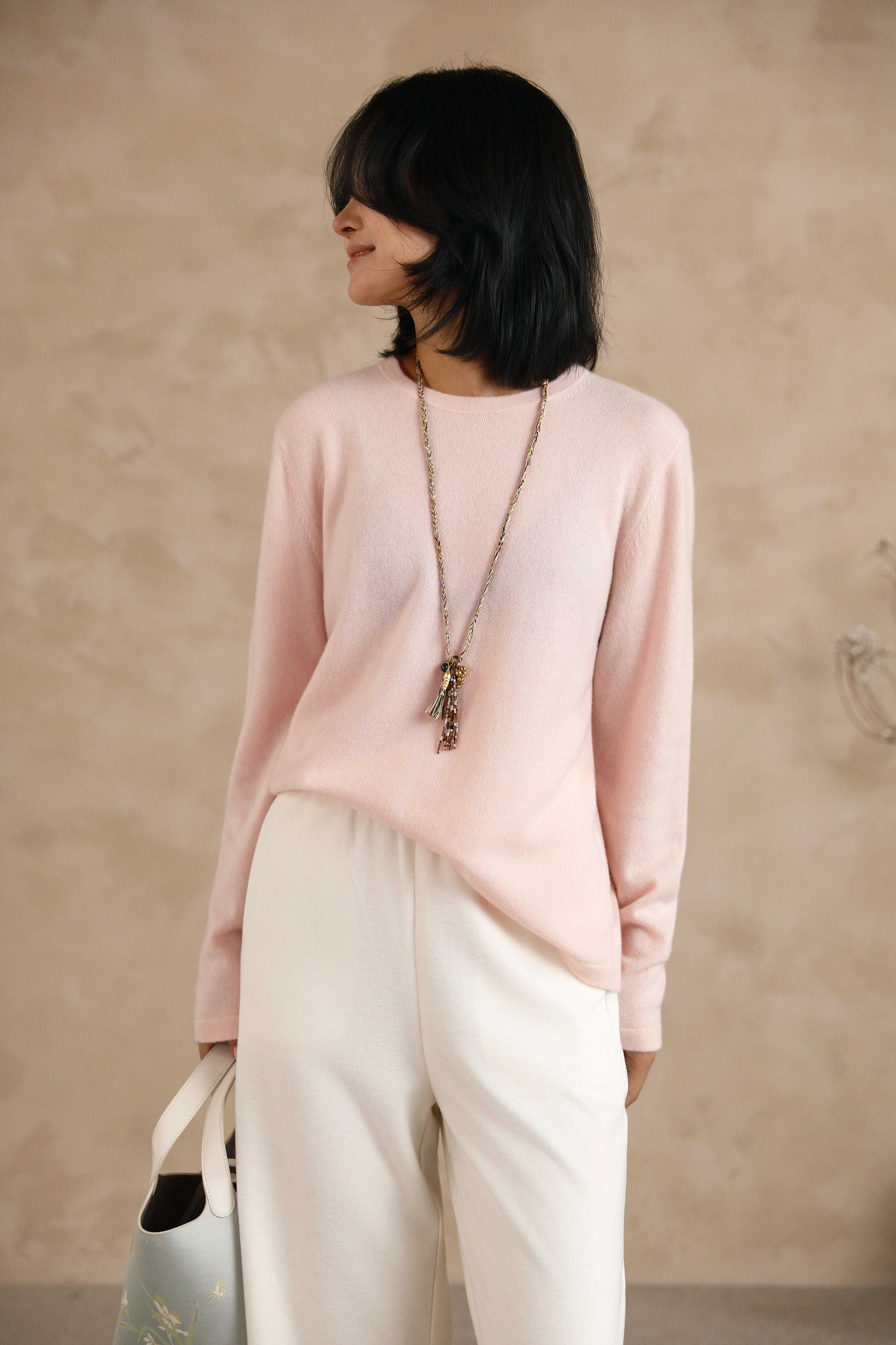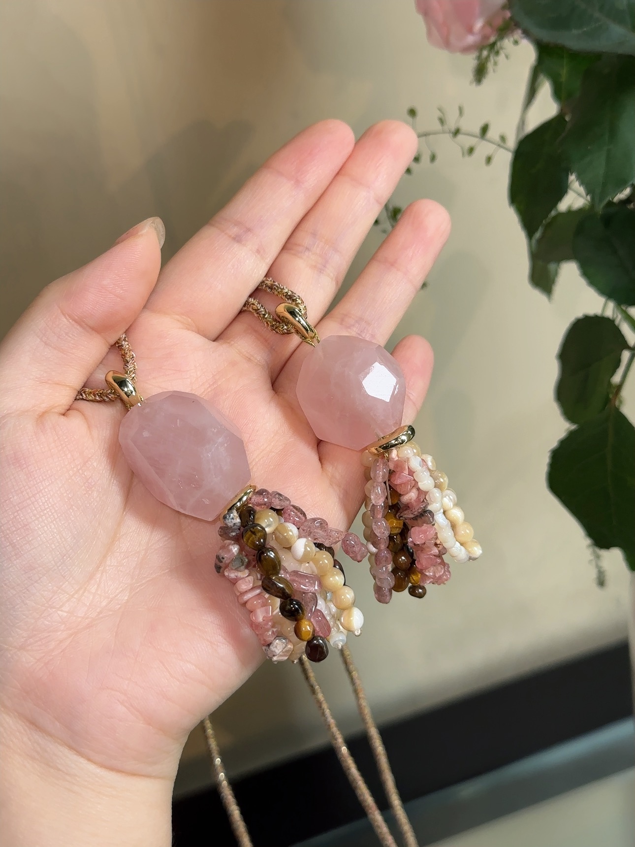 琳琅满目高品质粉晶多宝毛衣链