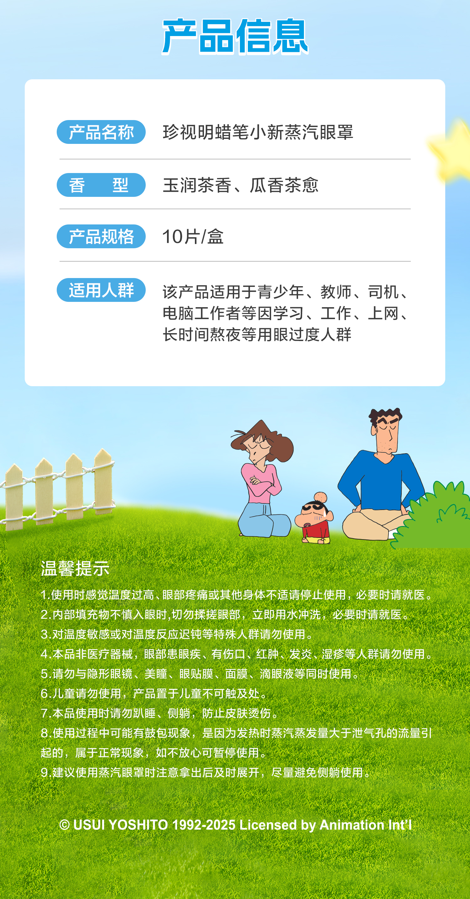 【拍3盒更划算】珍视明蜡笔小新蒸汽眼罩10片/盒