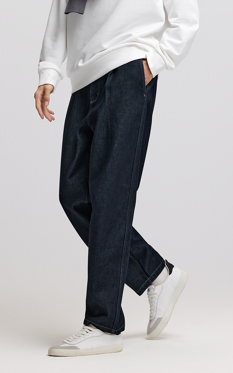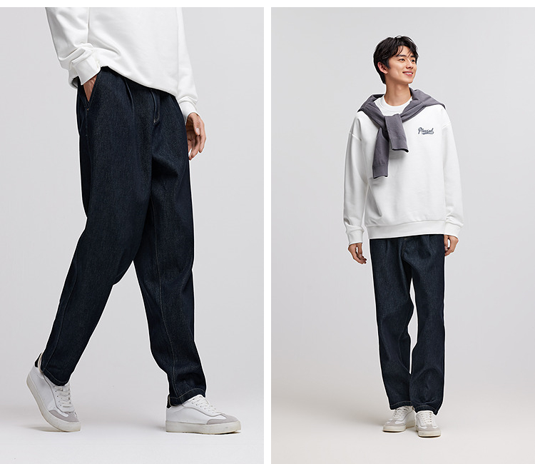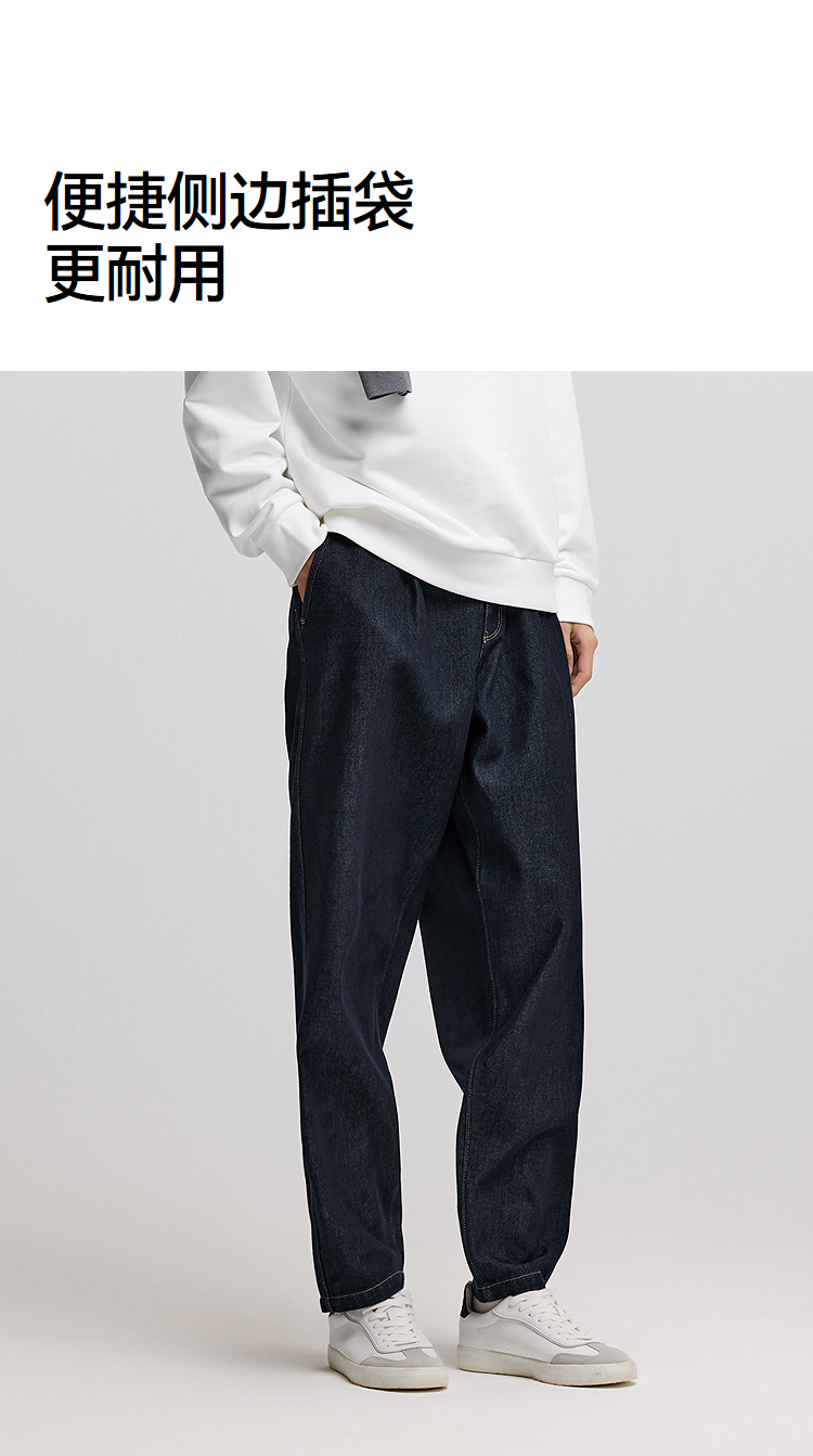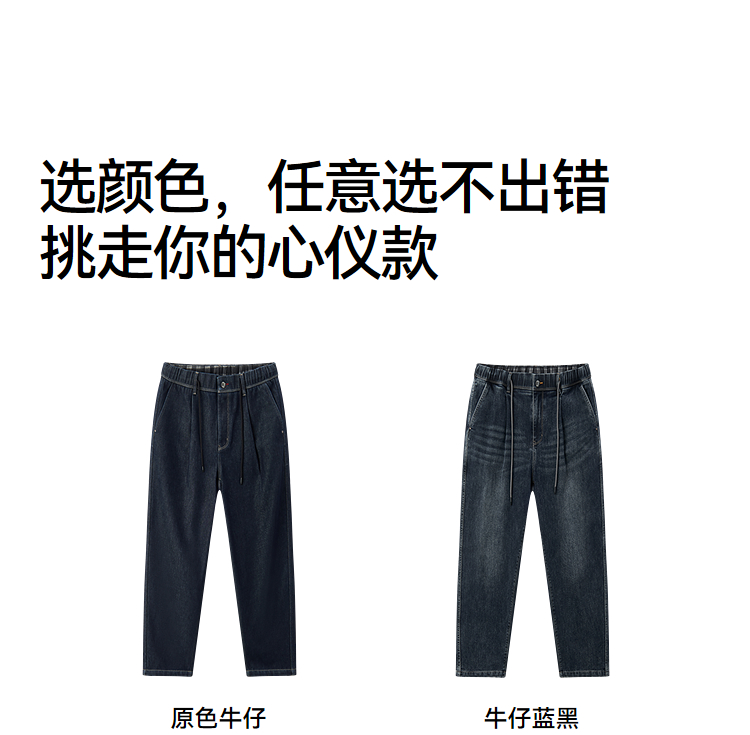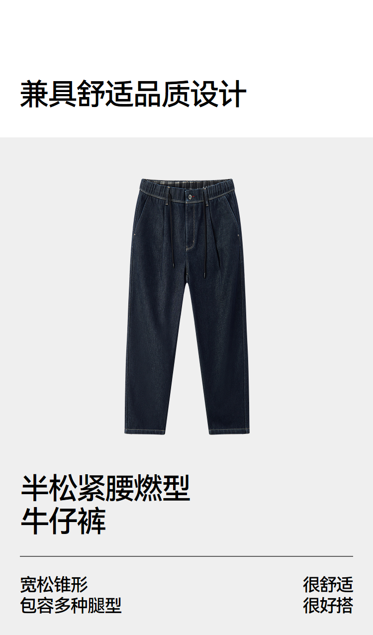 森马牛仔裤男冬季加厚宽松锥形裤青年百搭半松紧腰长裤深色裤子潮