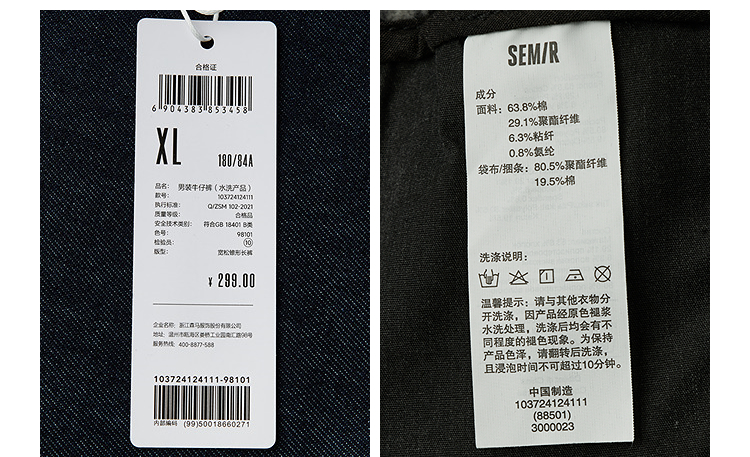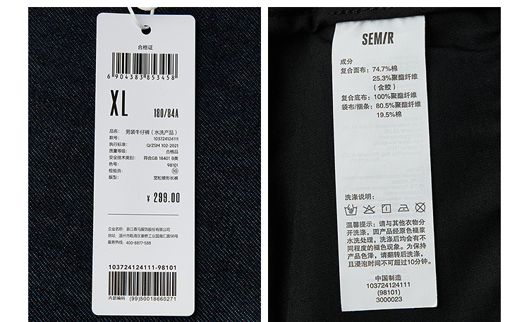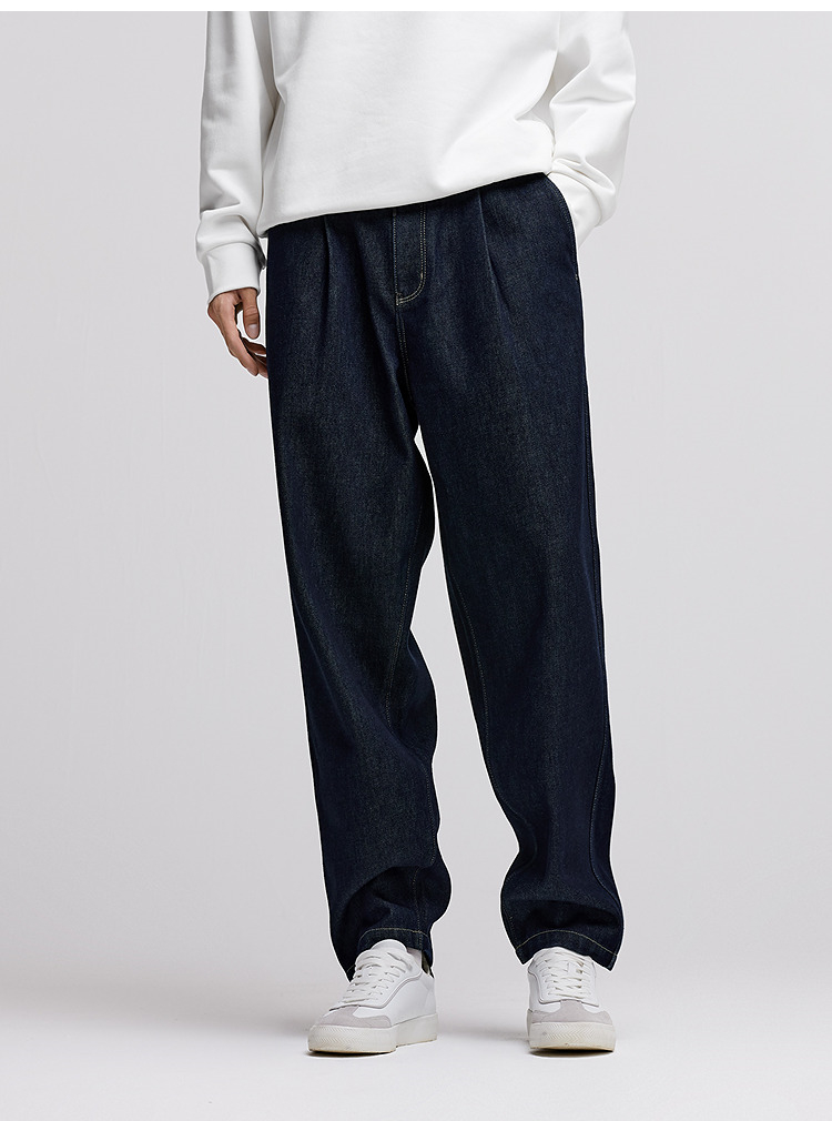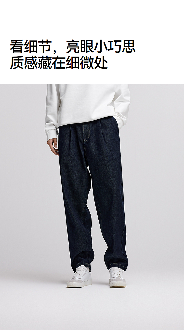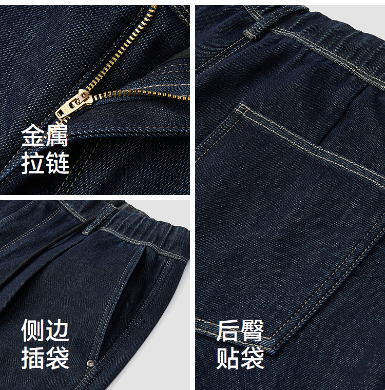 森马牛仔裤男冬季加厚宽松锥形裤青年百搭半松紧腰长裤深色裤子潮