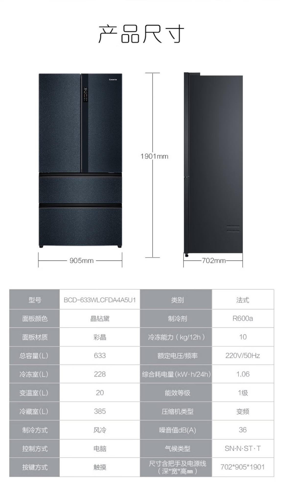 卡萨帝(Casarte)冰箱BCD-633WLCFDA4A5U1