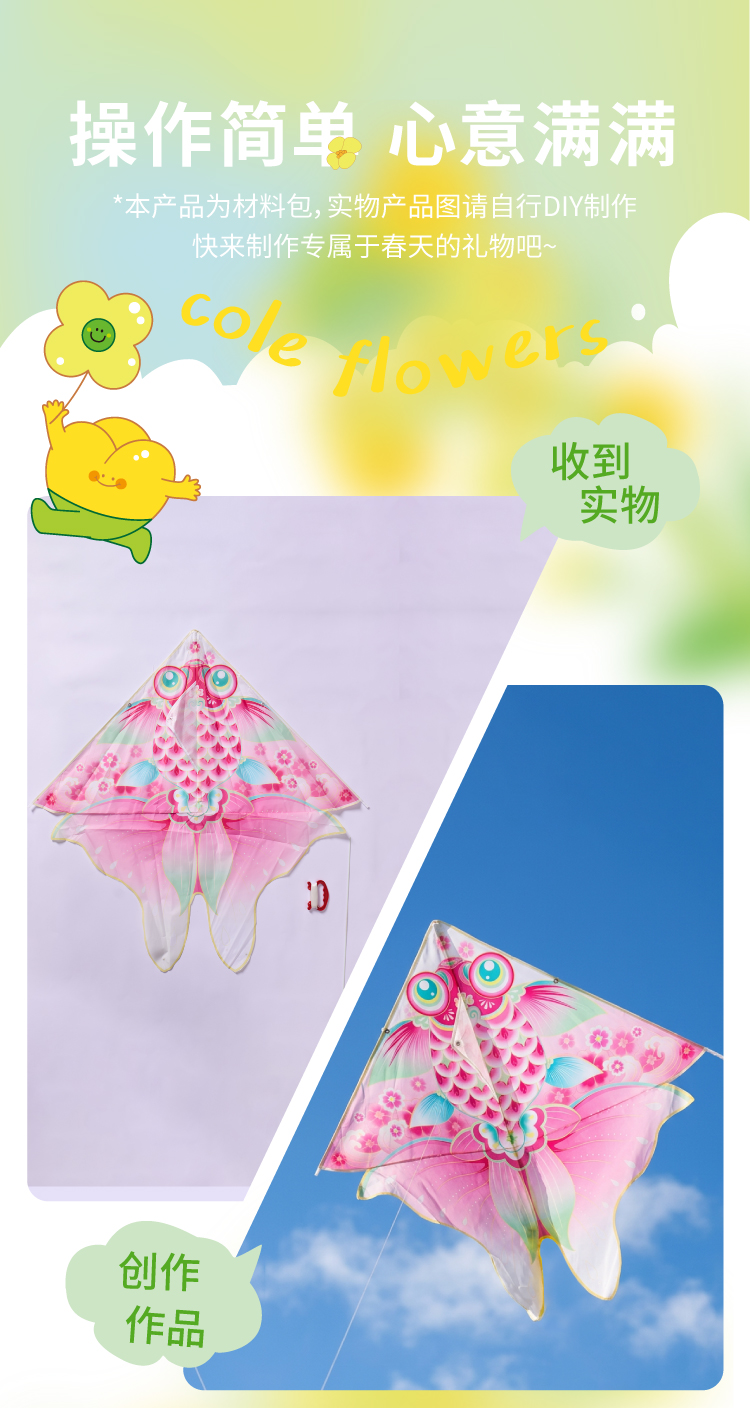 户外春天潍坊花花金鱼装扮风筝手工diy儿童材料纸鸢微风易飞2026