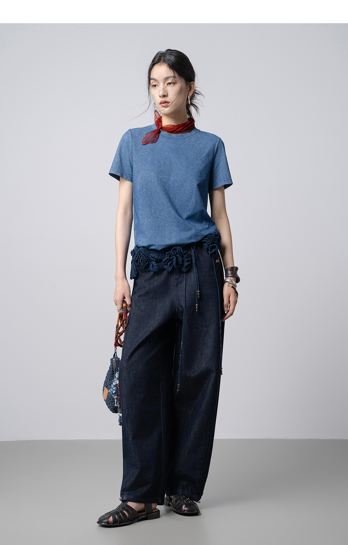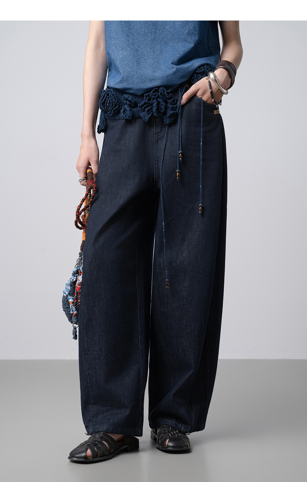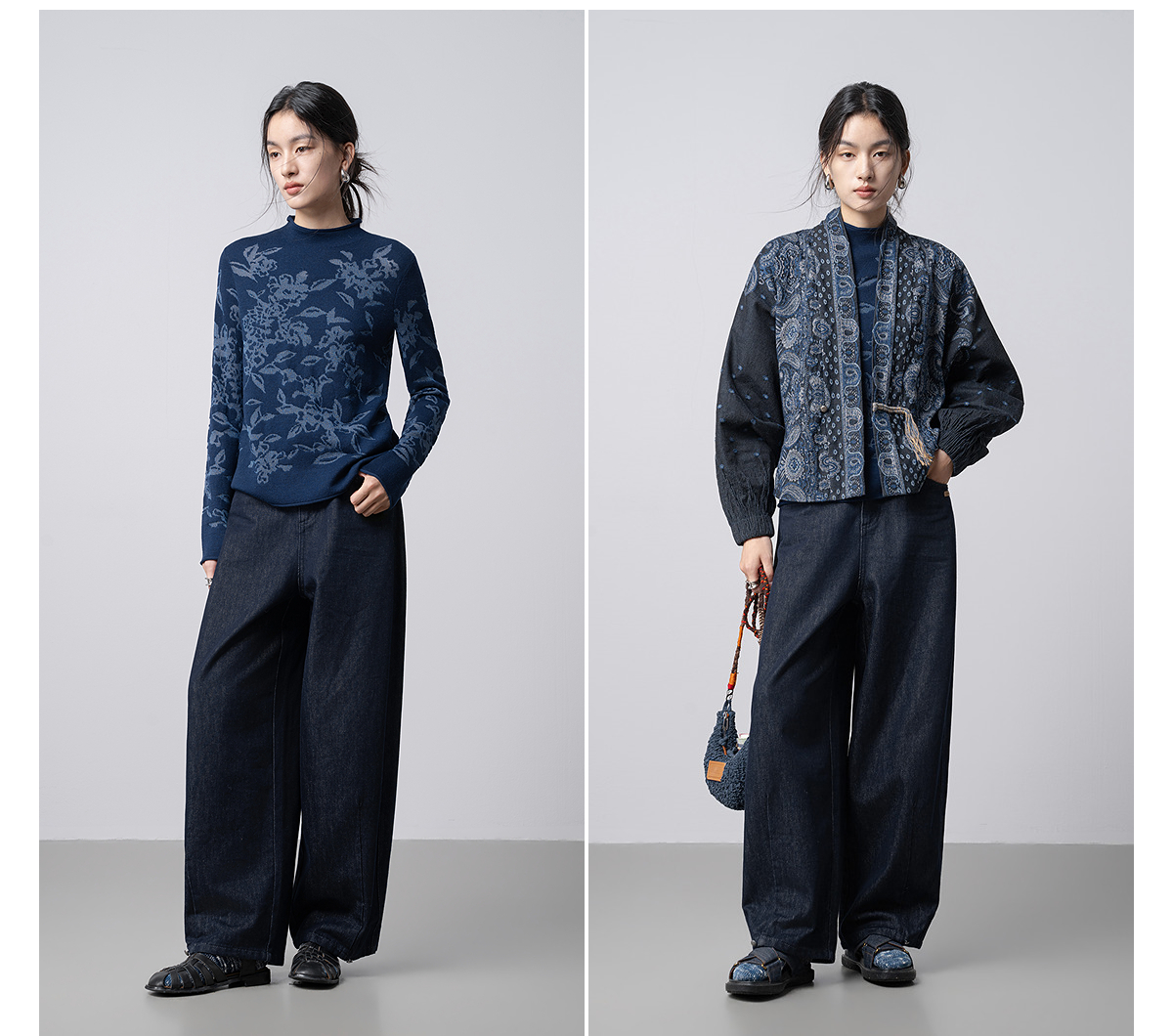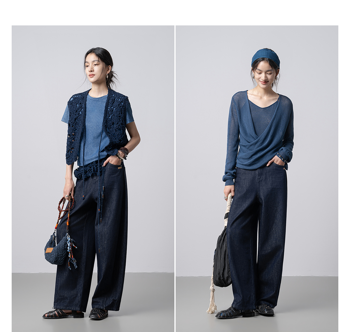 【林栖设计小店】松弛百搭 |弯刀型牛仔裤复古显瘦2026早春新款阔腿裤女1961106