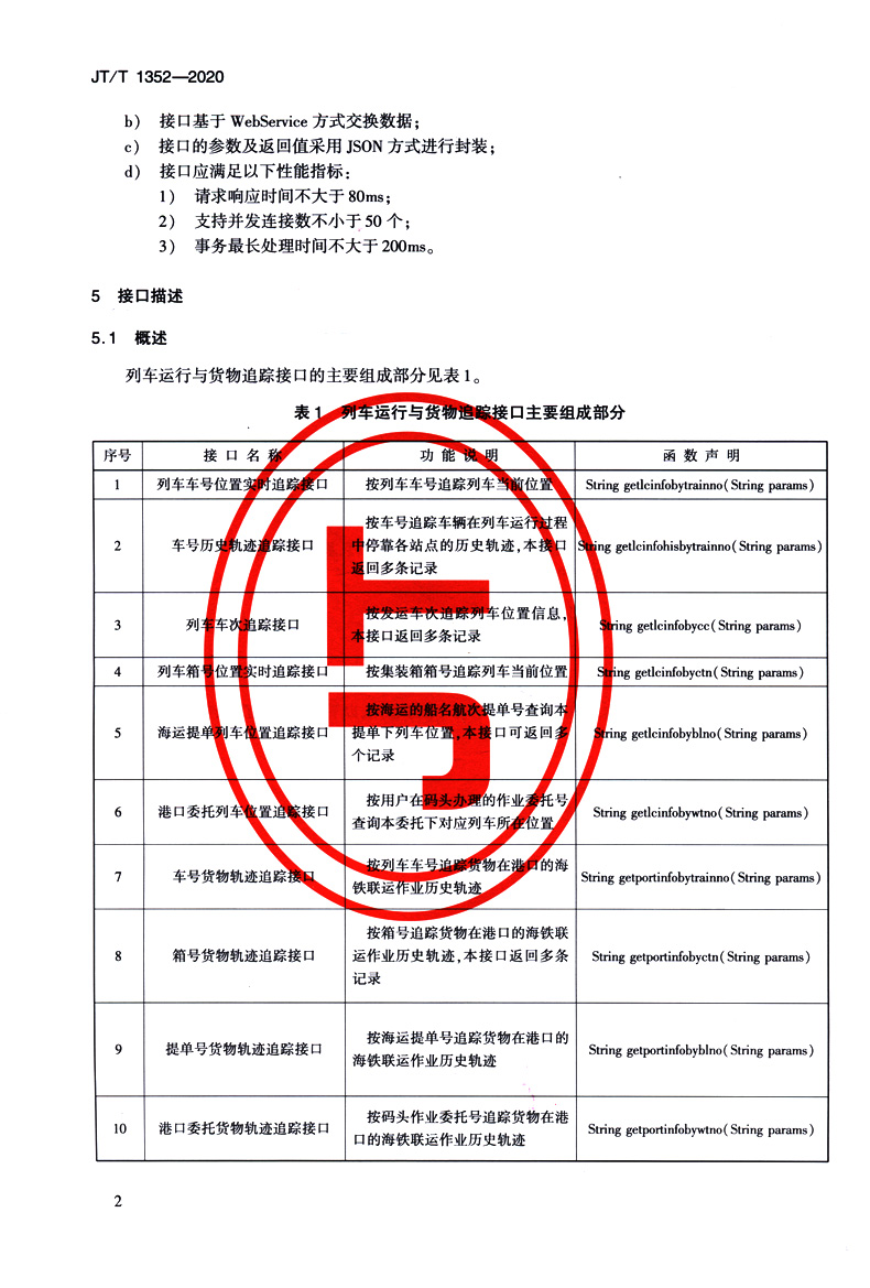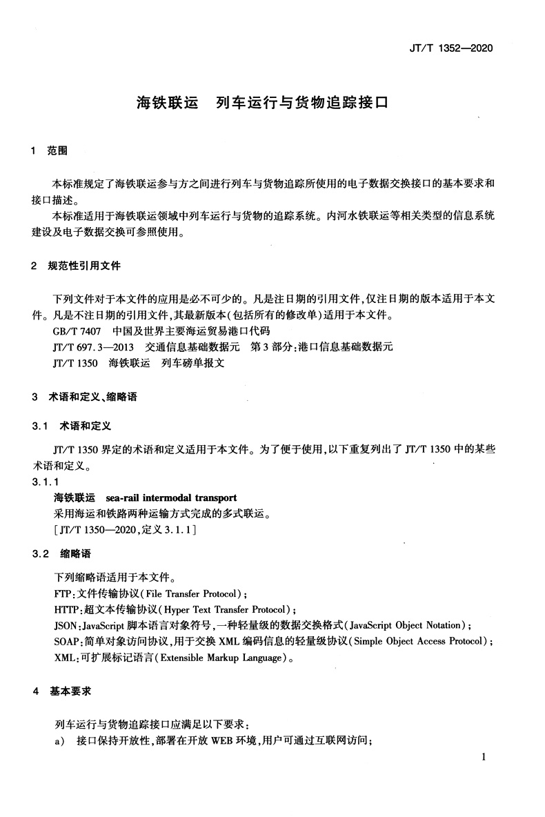 书名:海铁联运 列车运行与货物追踪接口(JT/T 1352—2020)