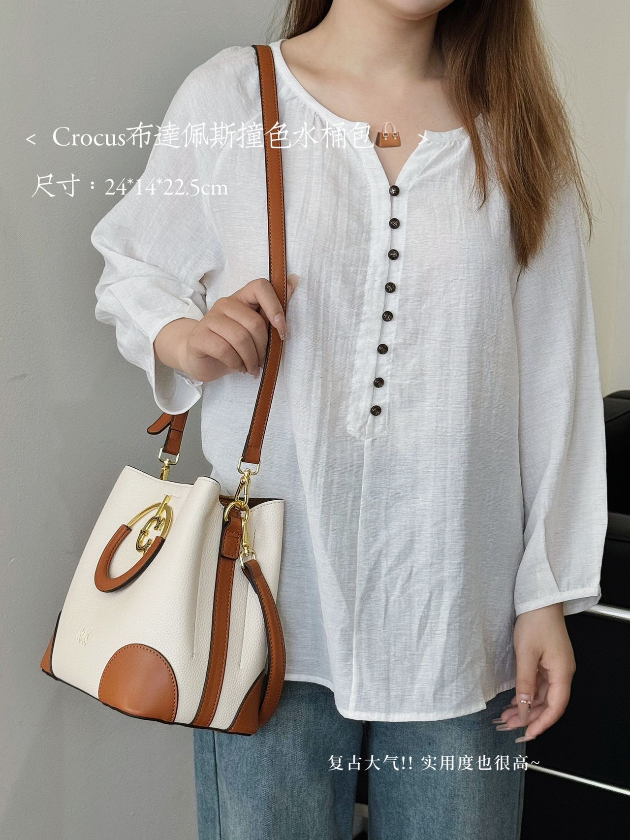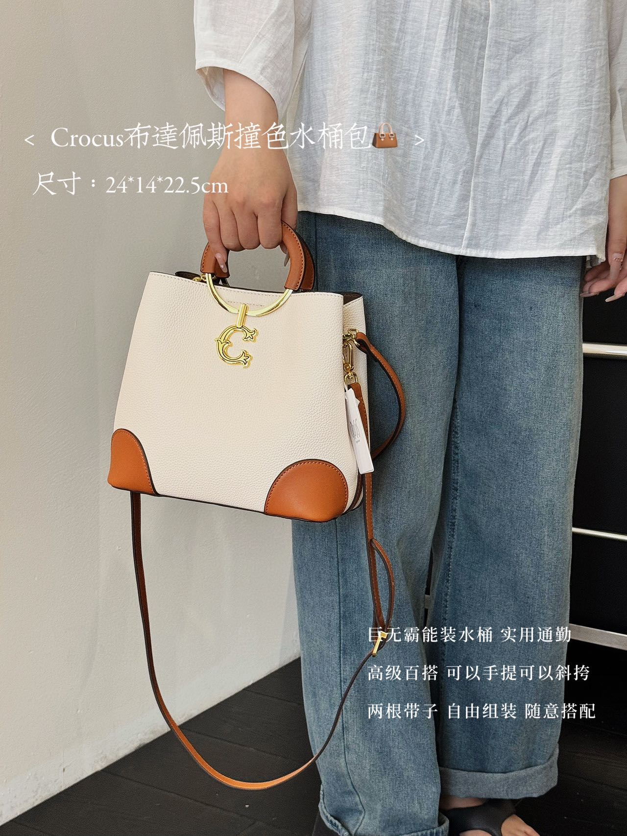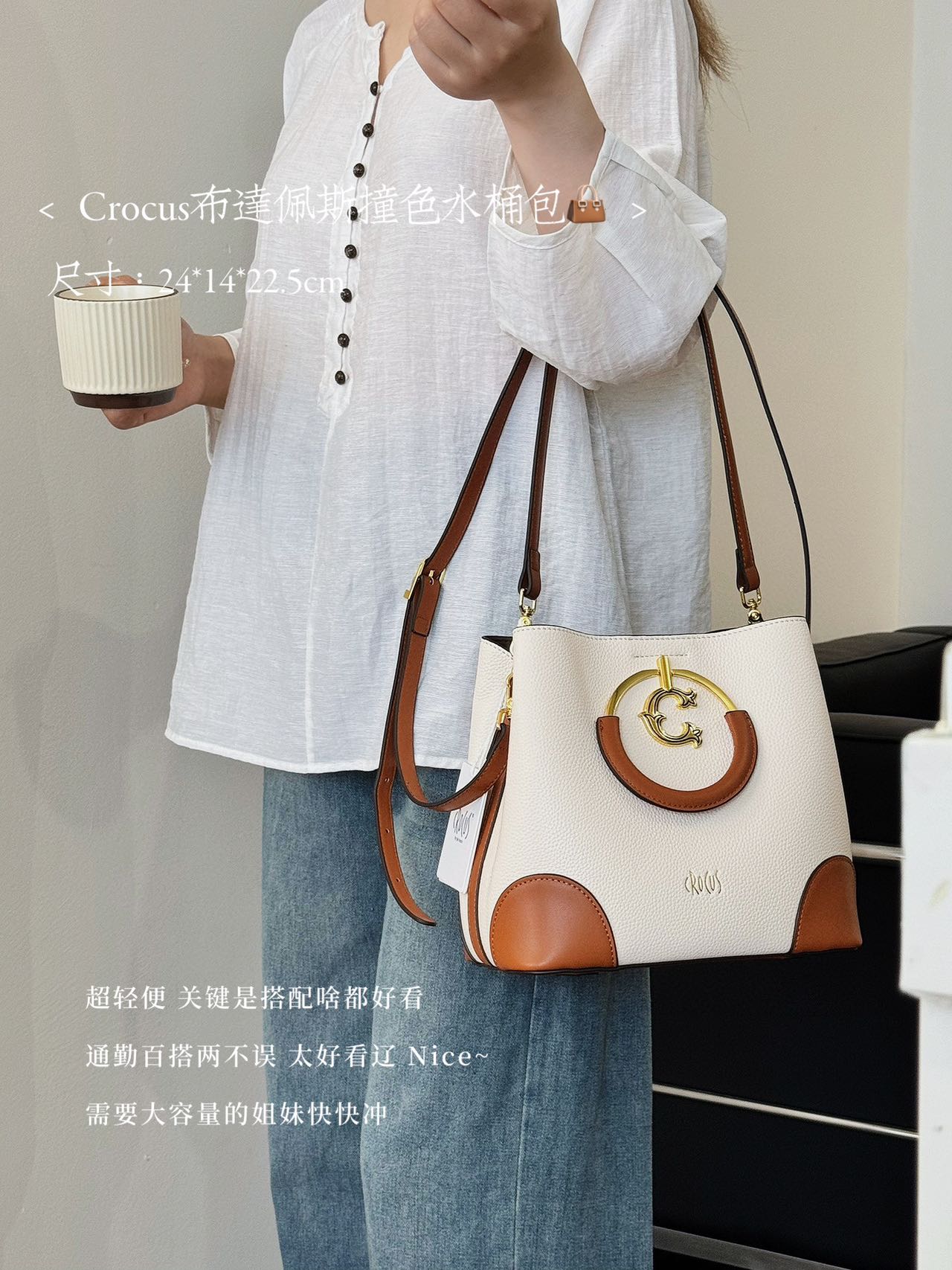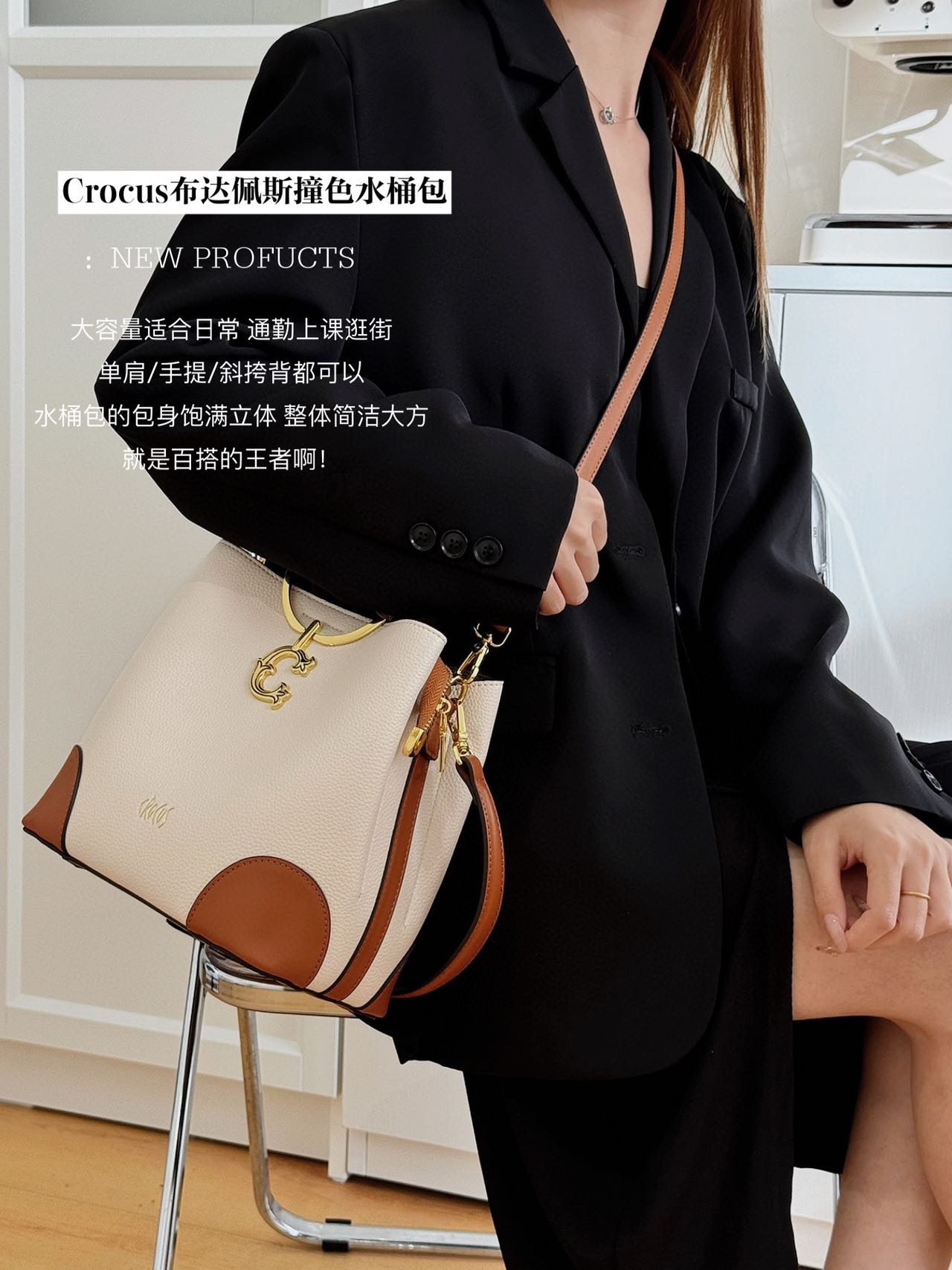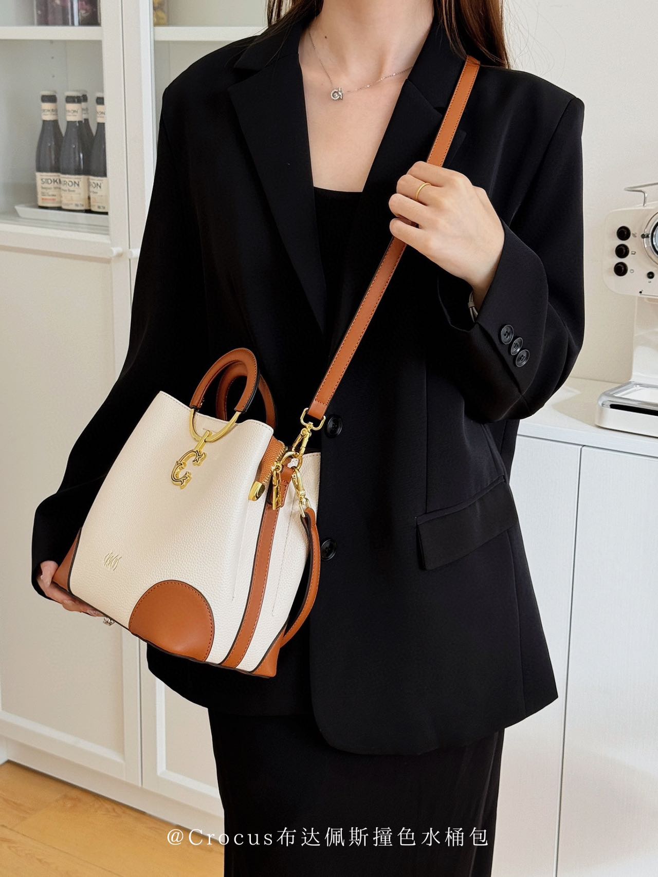 【商品名称】:Crocus布达佩斯撞色水桶包