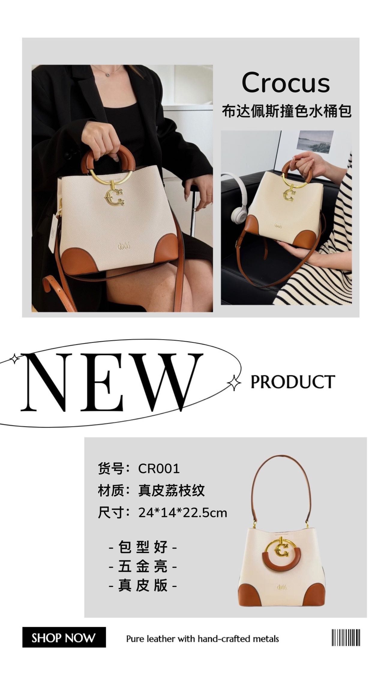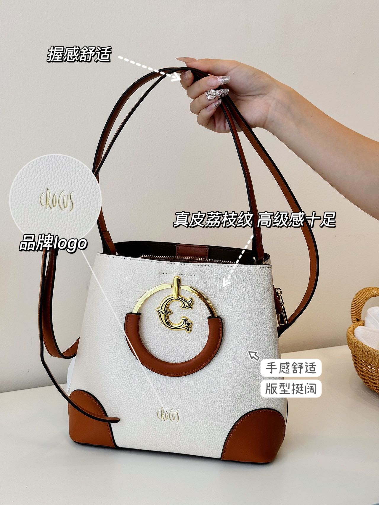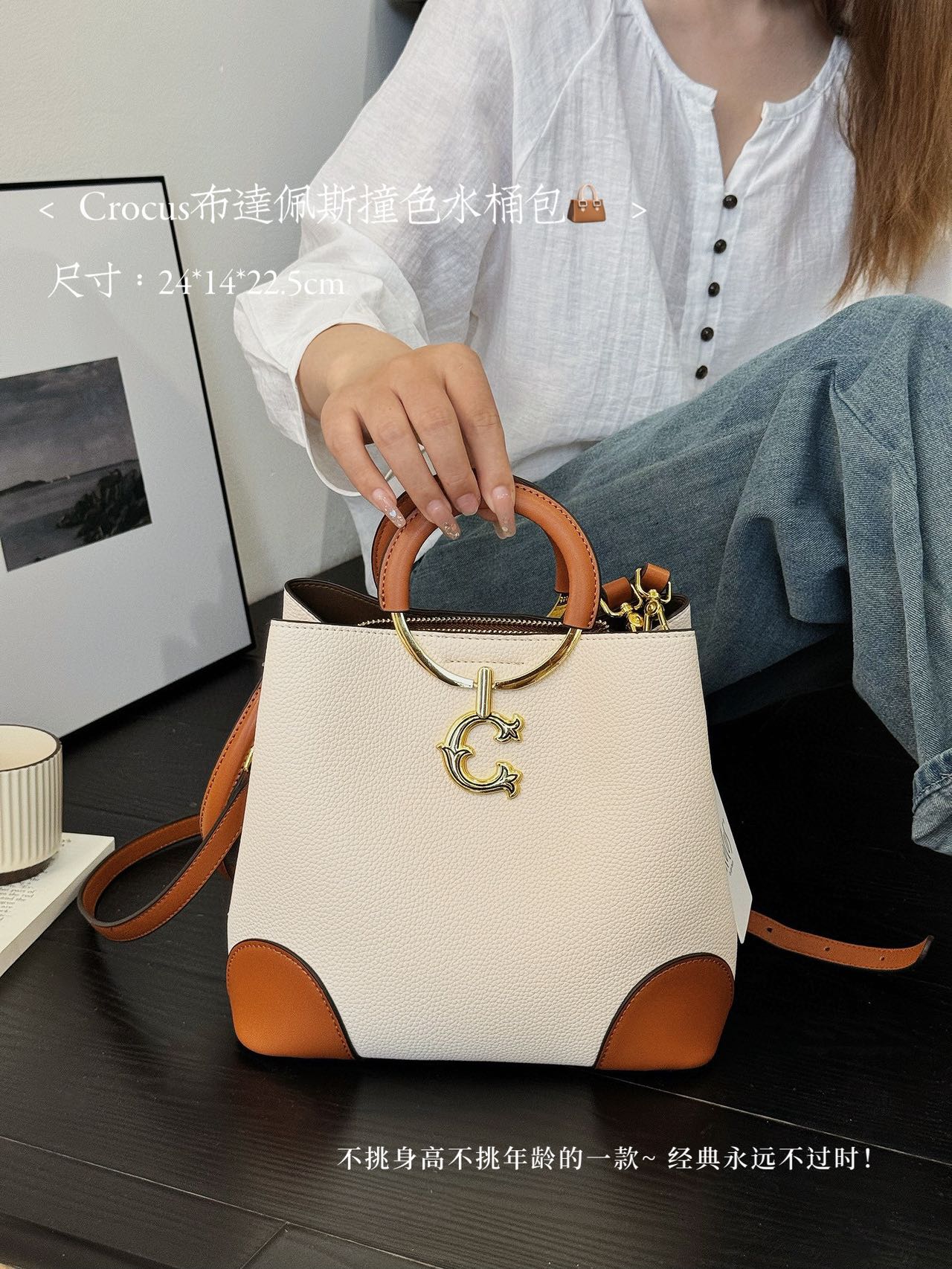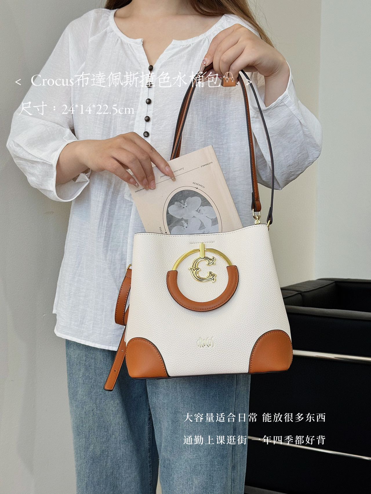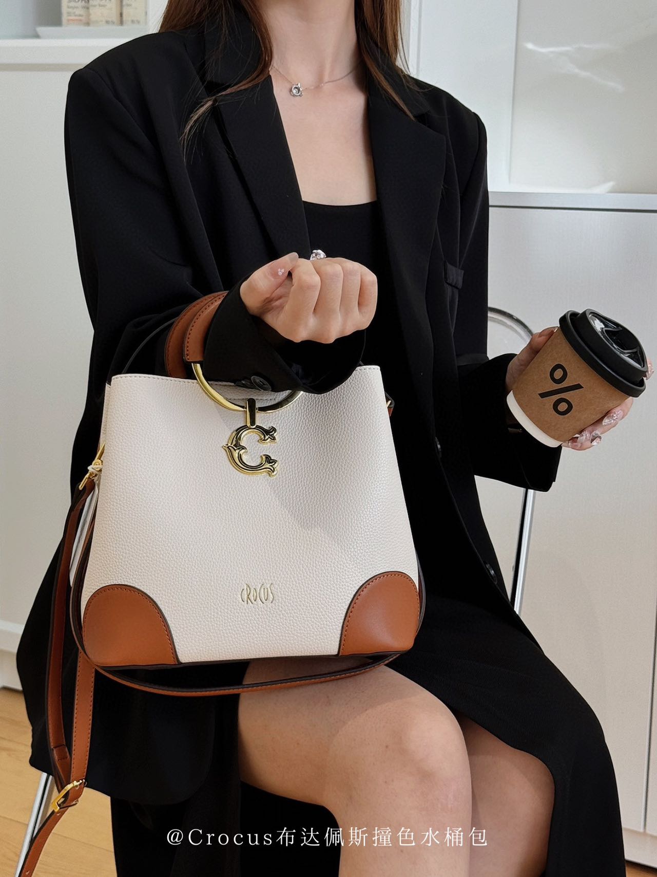 【商品名称】:Crocus布达佩斯撞色水桶包