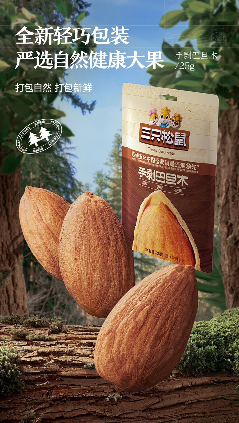 三只松鼠 甄选 手剥巴旦木 小袋装 25g/袋
