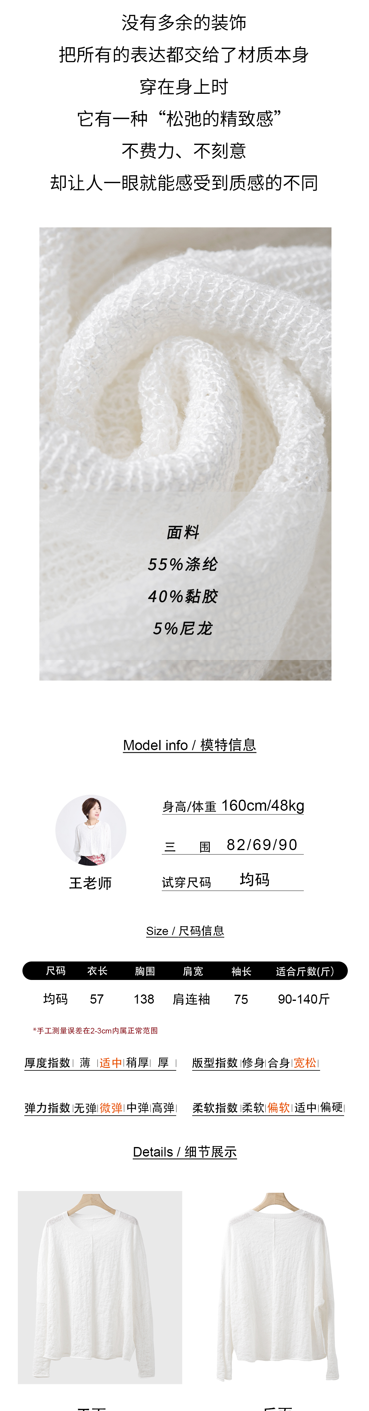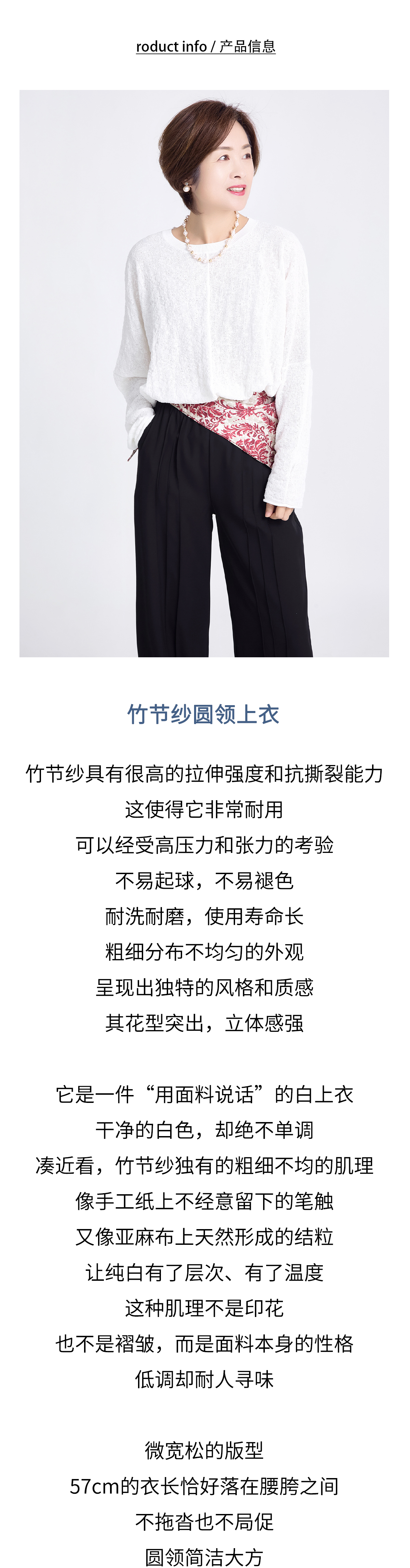 竹节纱圆领上衣