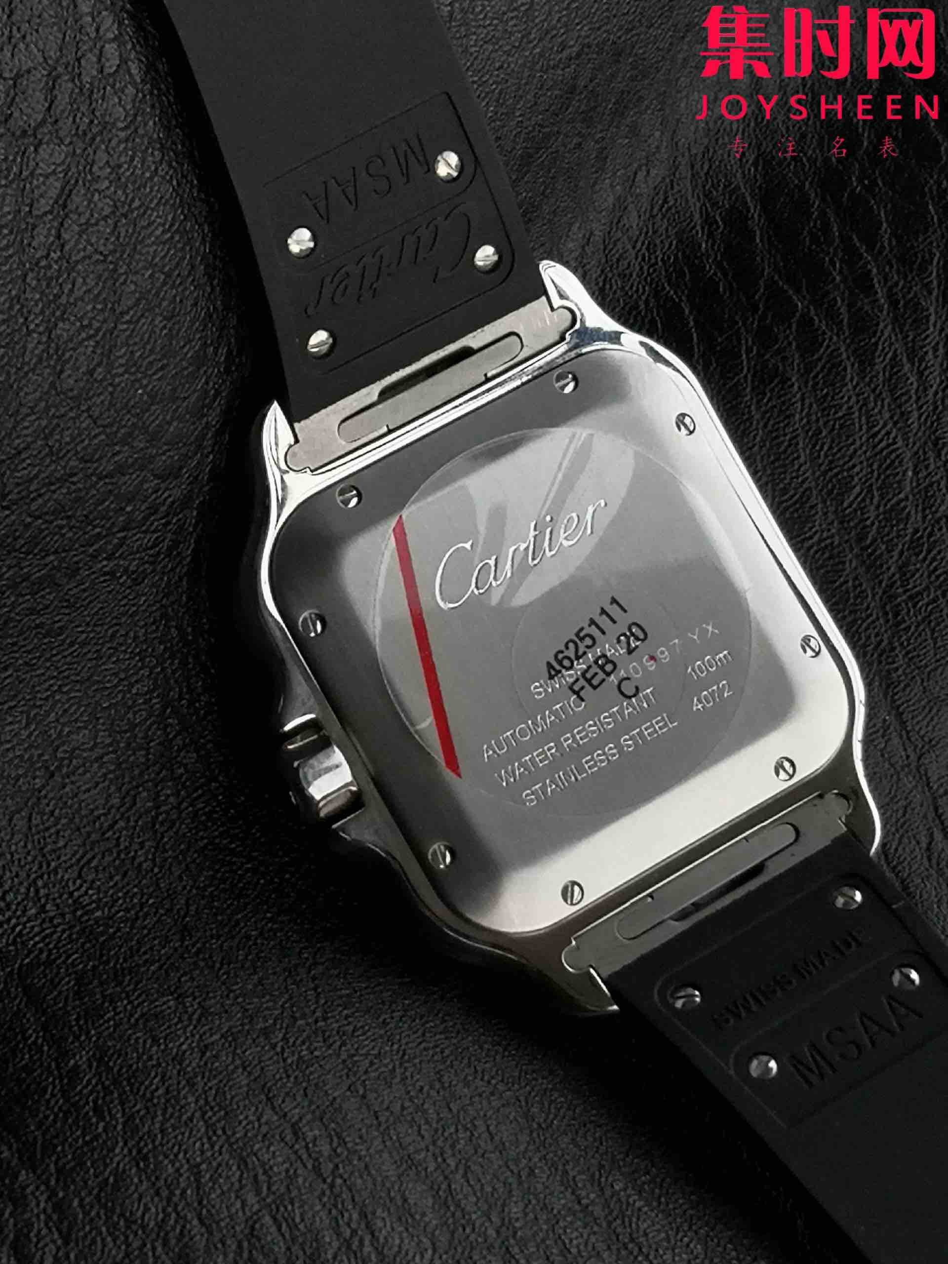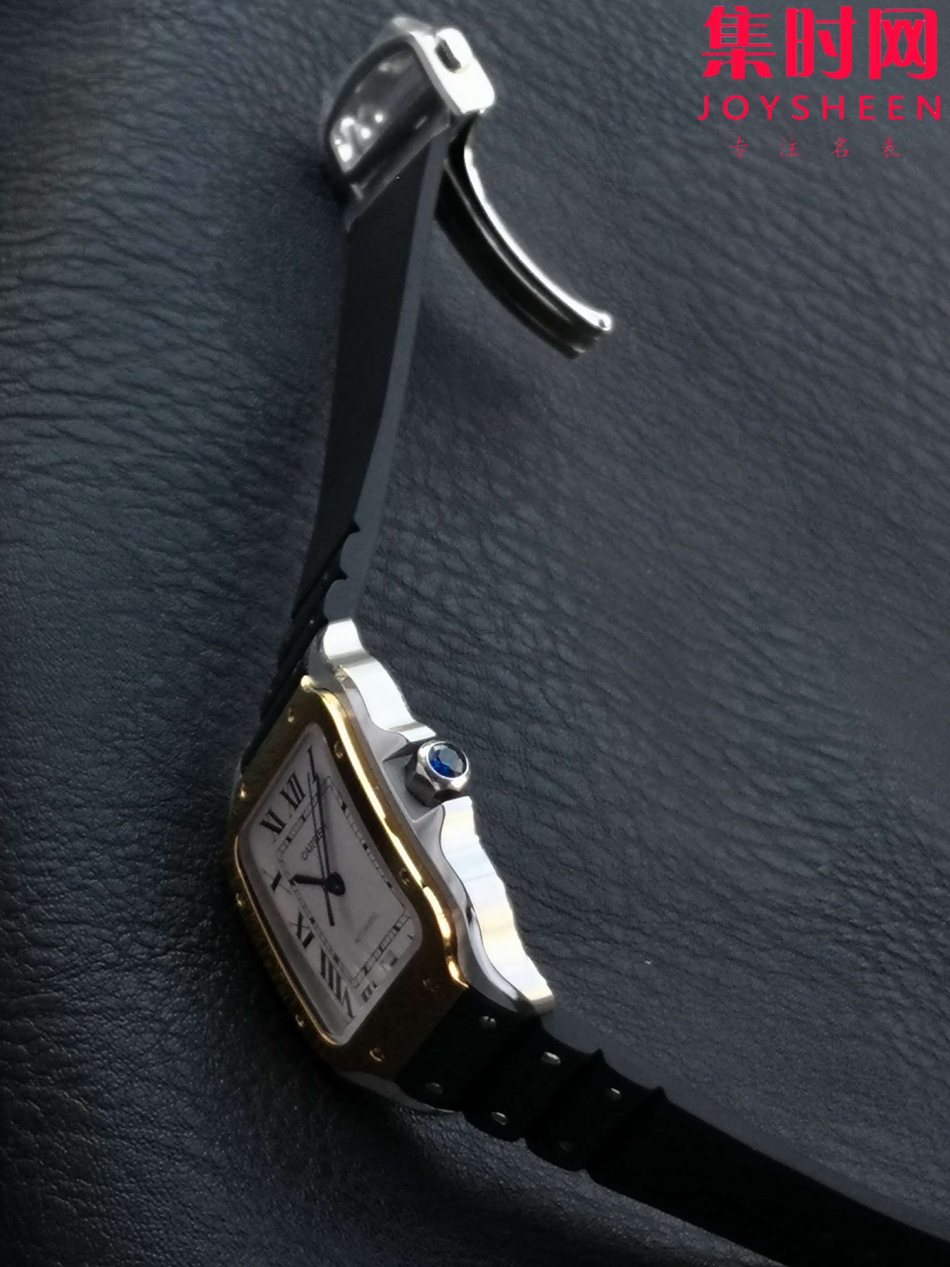 GF卡地亚山度士系列 山度士大号 间金款 男士腕表 绝对是绕不开的经典 表径39.8mm,舒适感很不错。从细节上看,表冠镶有蓝色合成多切面尖晶石,增添了许多精致感。6点钟还设置了日期显示窗口。采用进口9015改Cal.1847 MC自动上链机械机芯,在稳定性和日常佩戴的可靠性上没有问题。防水达到100米。总的来说,这款山度士更适合那些既看重品牌调性,又希望腕表能兼顾实用性的用户。