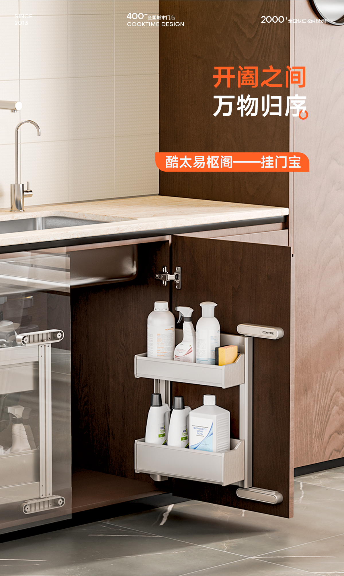 酷太坚持8年自主研发,已获得专利证书130项,拥有一套领先市场的厨房收纳系统,为千万中国家庭解决厨房脏乱差,缔造厨房新生活。