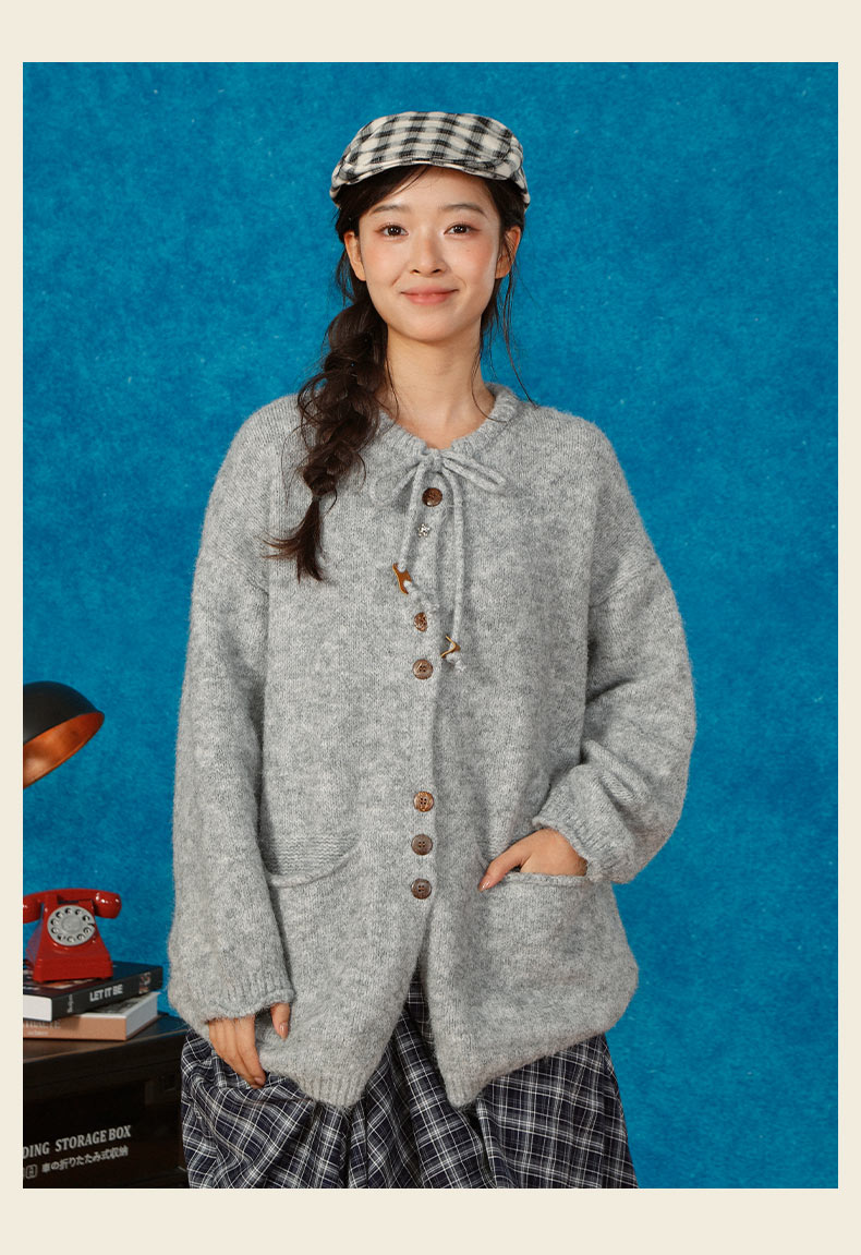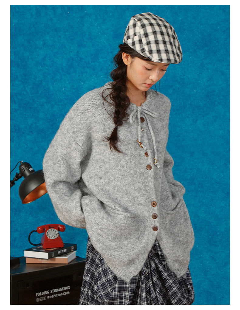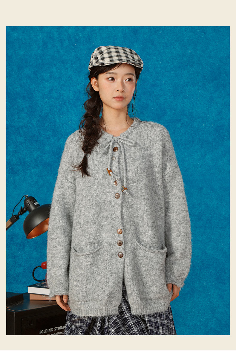 休闲大版领口打结复古开衫毛衣-纪念日百货门店同款165495241