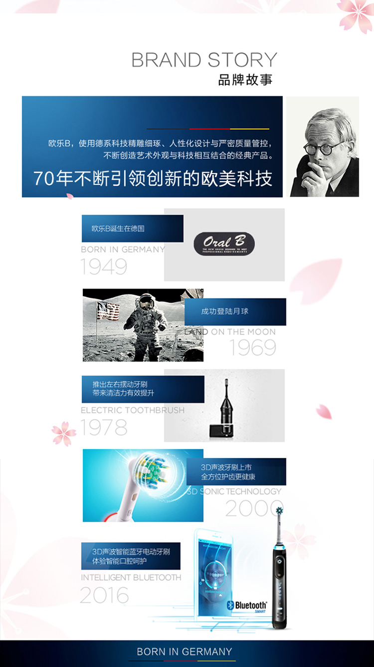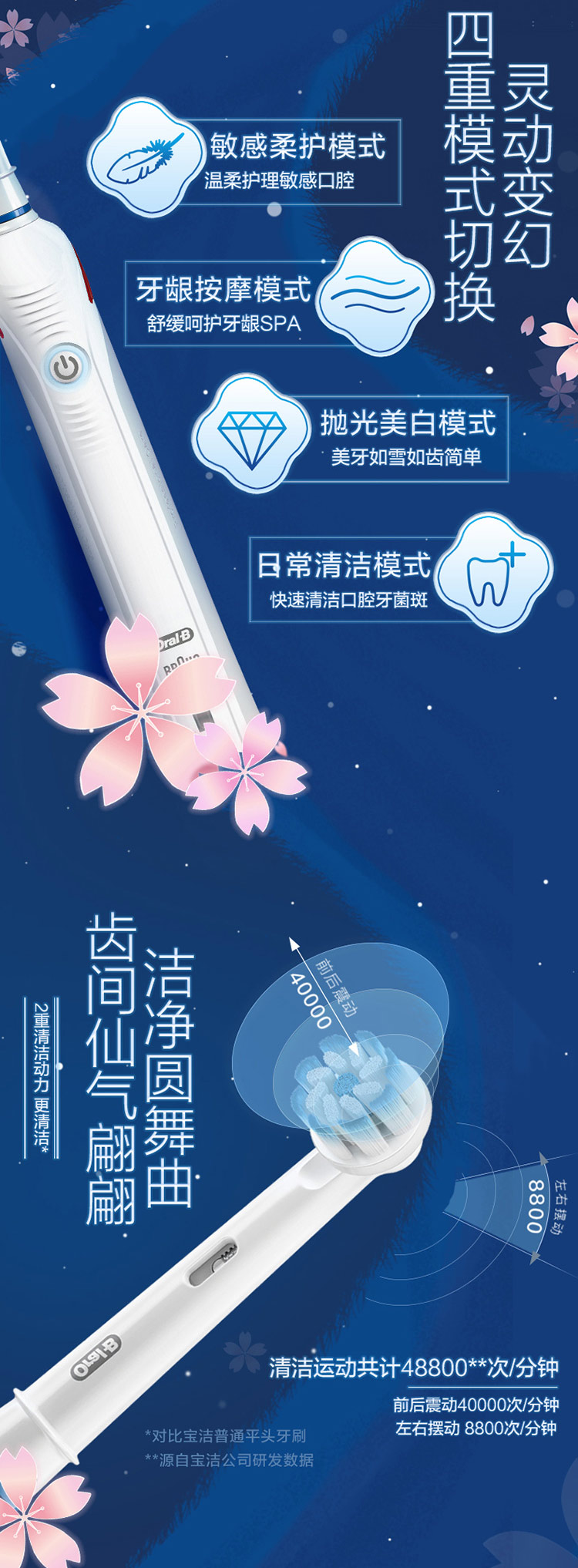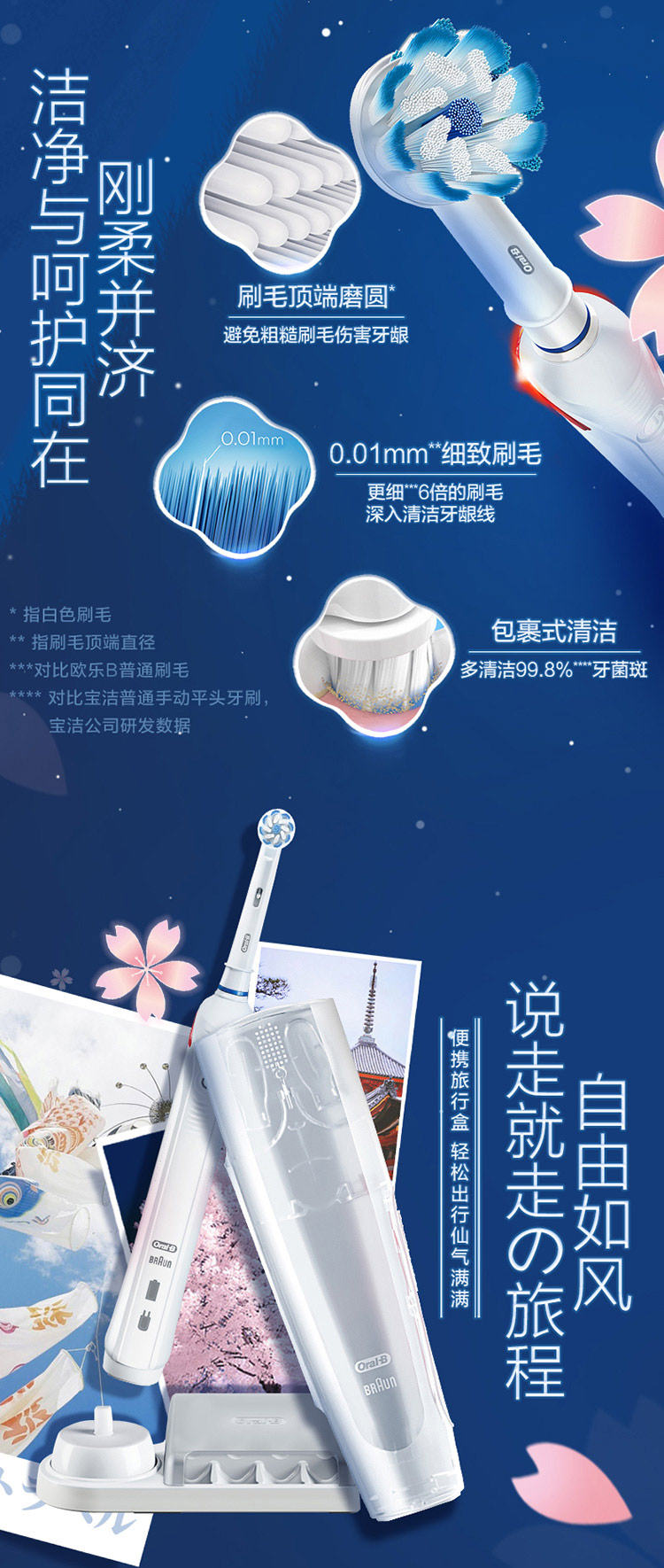 欧乐B电动牙刷 3D声波旋转摆动成人情侣充电式(含刷头*2+旅行盒)P4000 白 新年礼物