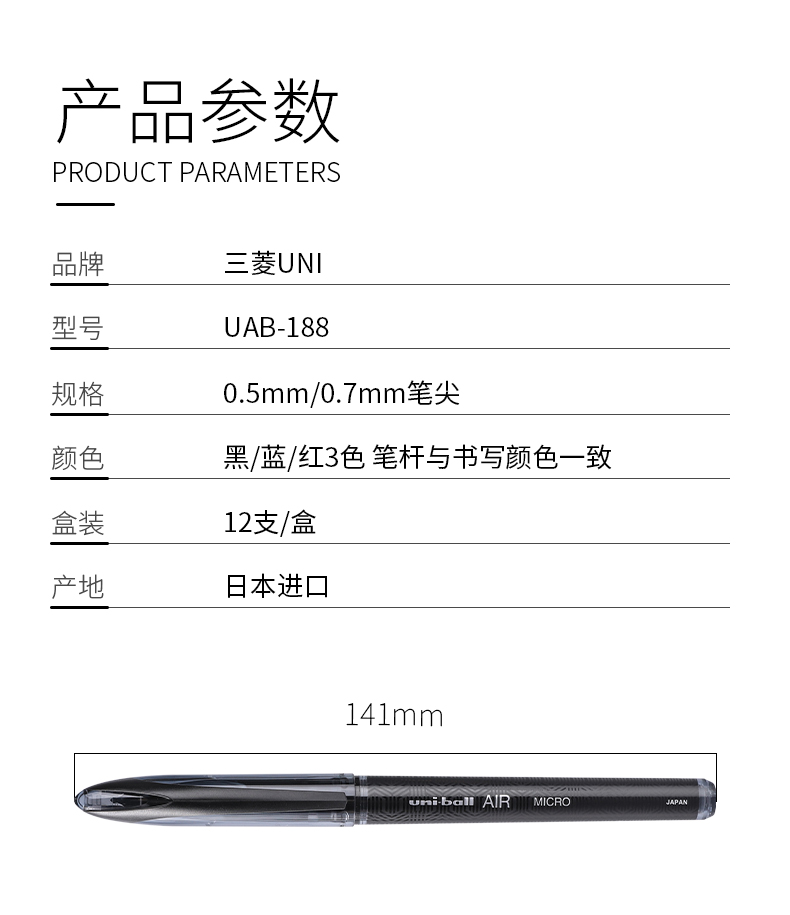 三菱黑科技UBA-188中性笔0.5黑
