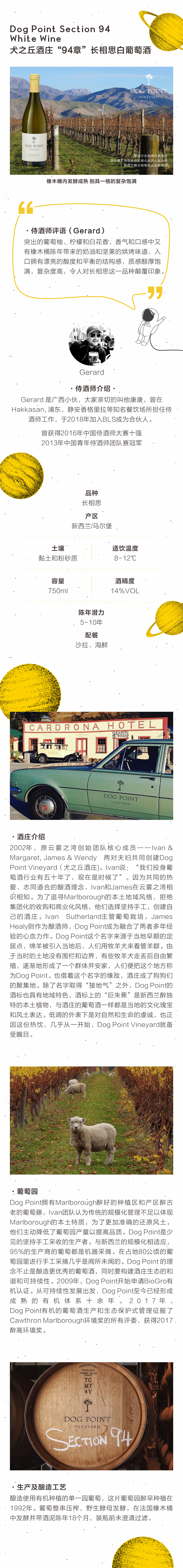 【过桶长相思标杆】新西兰犬之丘酒庄“94章”长相思白葡萄酒 2020 Dog Point Section 94 White Wine