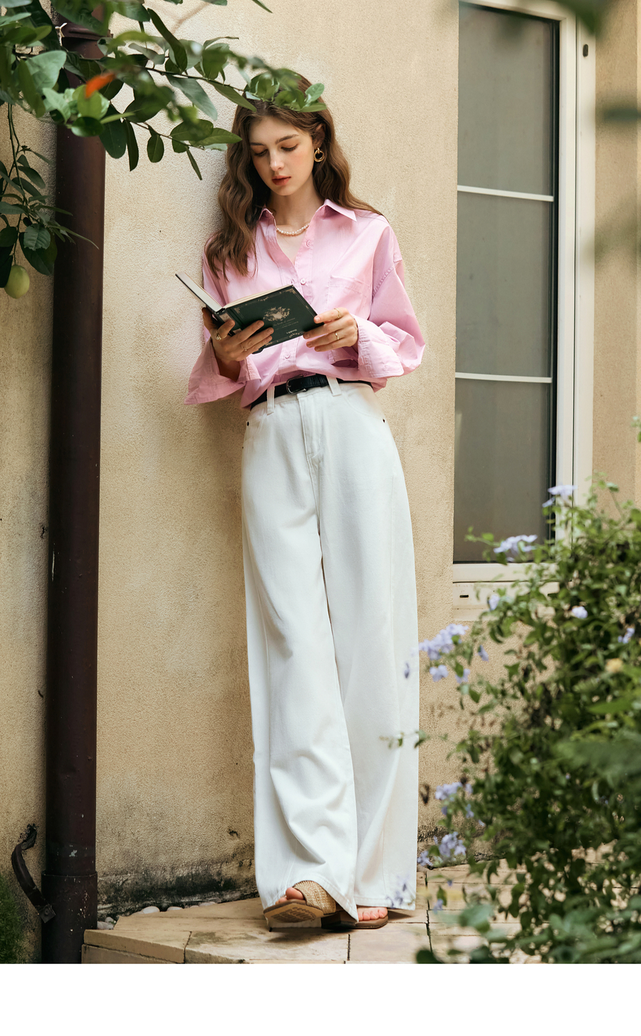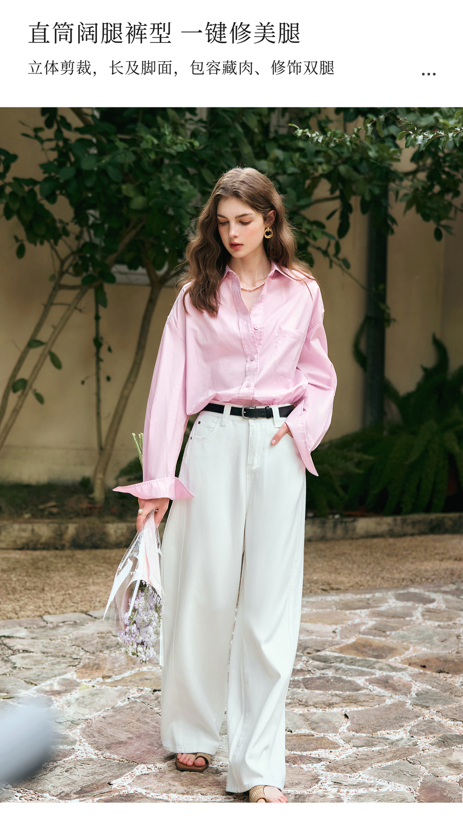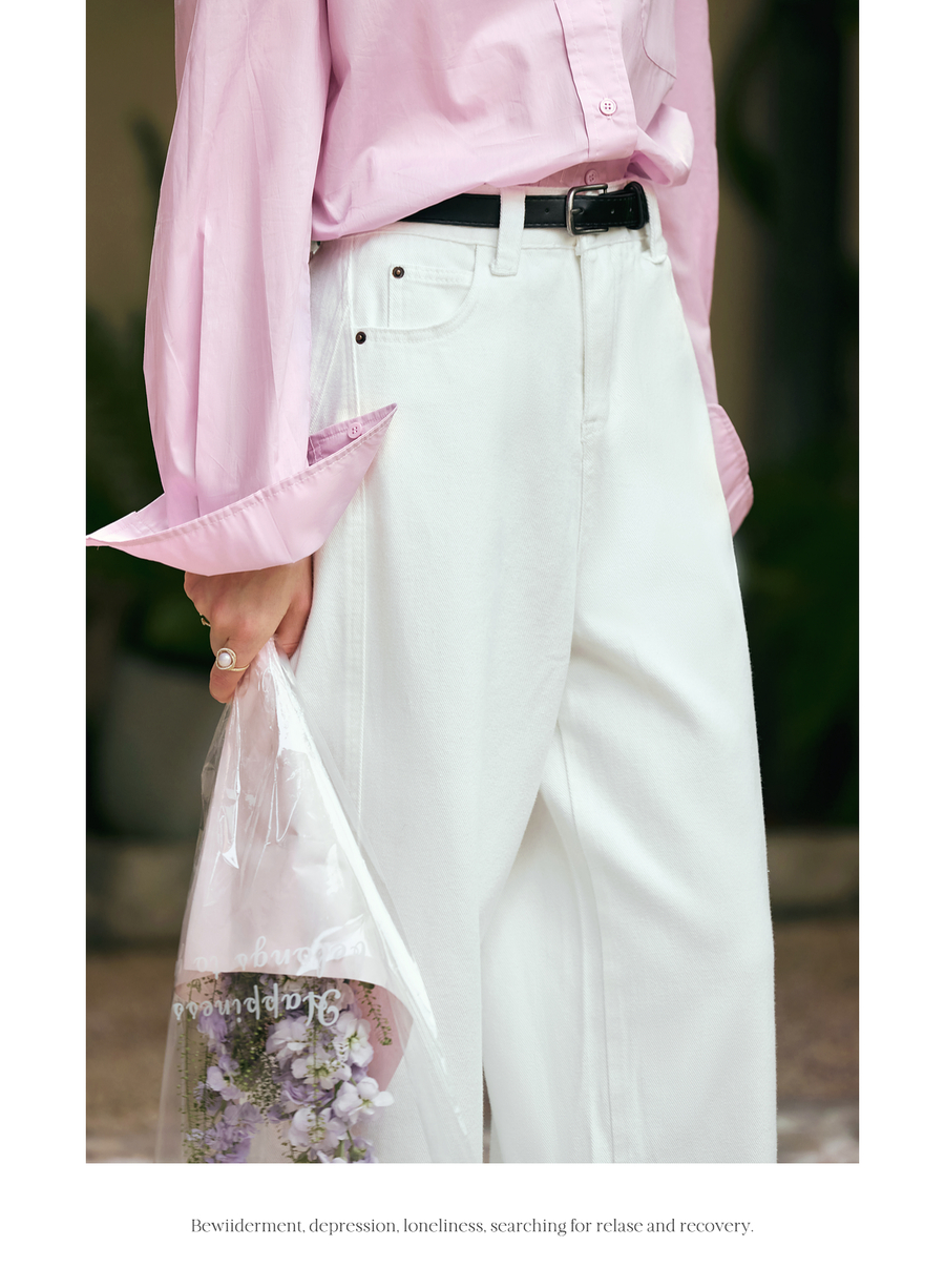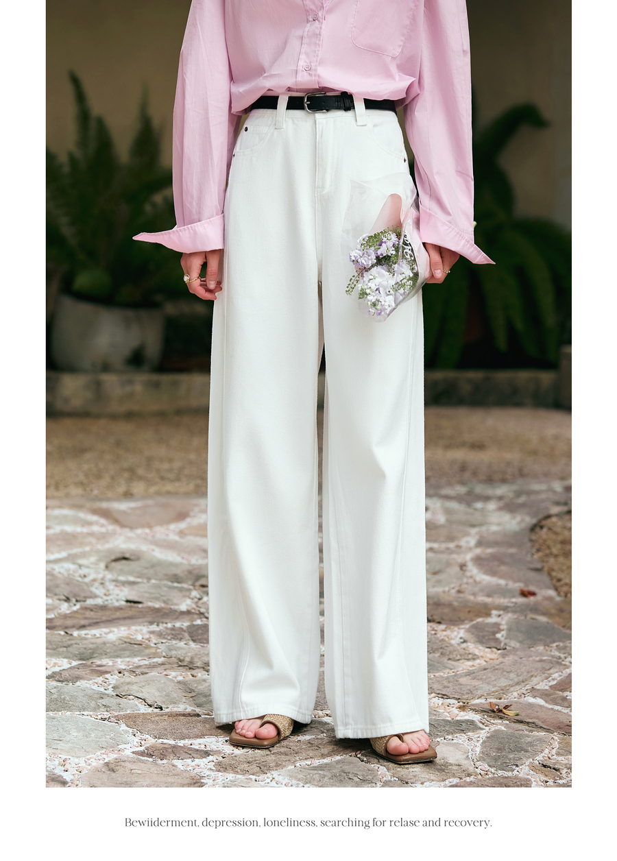 OLrain欧芮儿白色休闲牛仔裤女冬季2024年新款宽松显瘦直筒阔腿裤