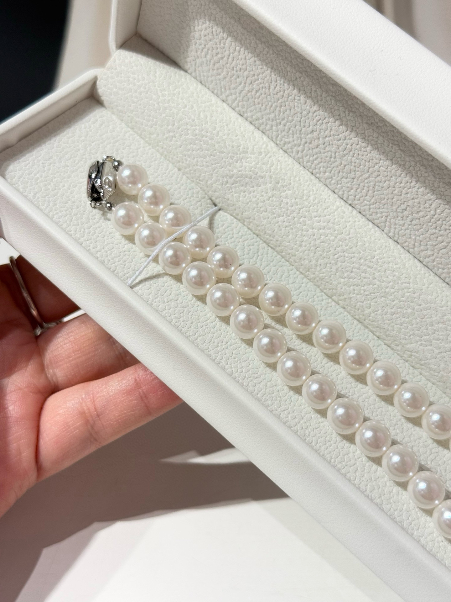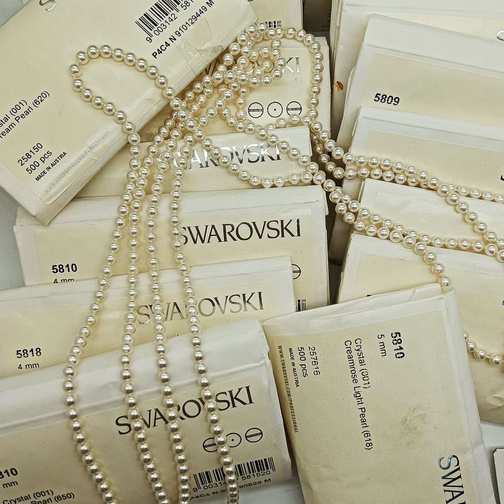 科普一下哈:什么叫施华洛世奇的珍珠呢~施华洛世奇的珍珠是很多大品牌,比如香奶奶,比如D奥等一线奢侈品常用的一种人造珠子。施华洛世奇的人造珠为啥这么多大品牌都用呢?因为光泽好(有施华洛特色的暖光哈),质感好,不会掉皮有珠宝感的同时又非常有档次。~