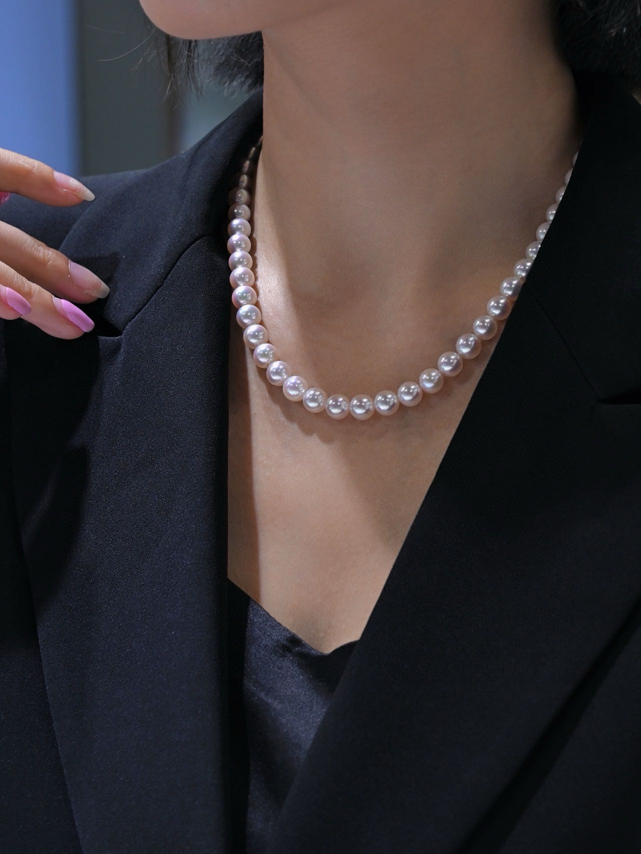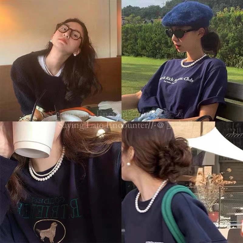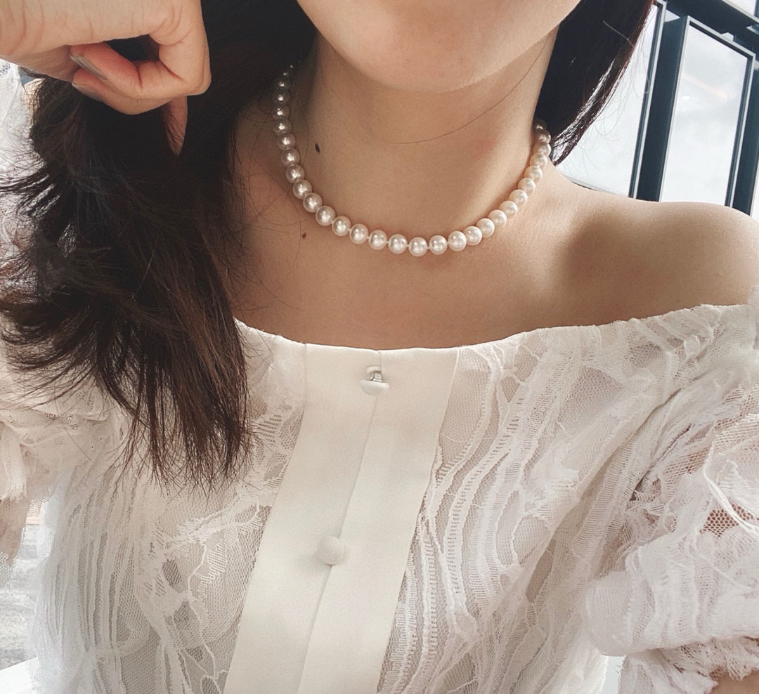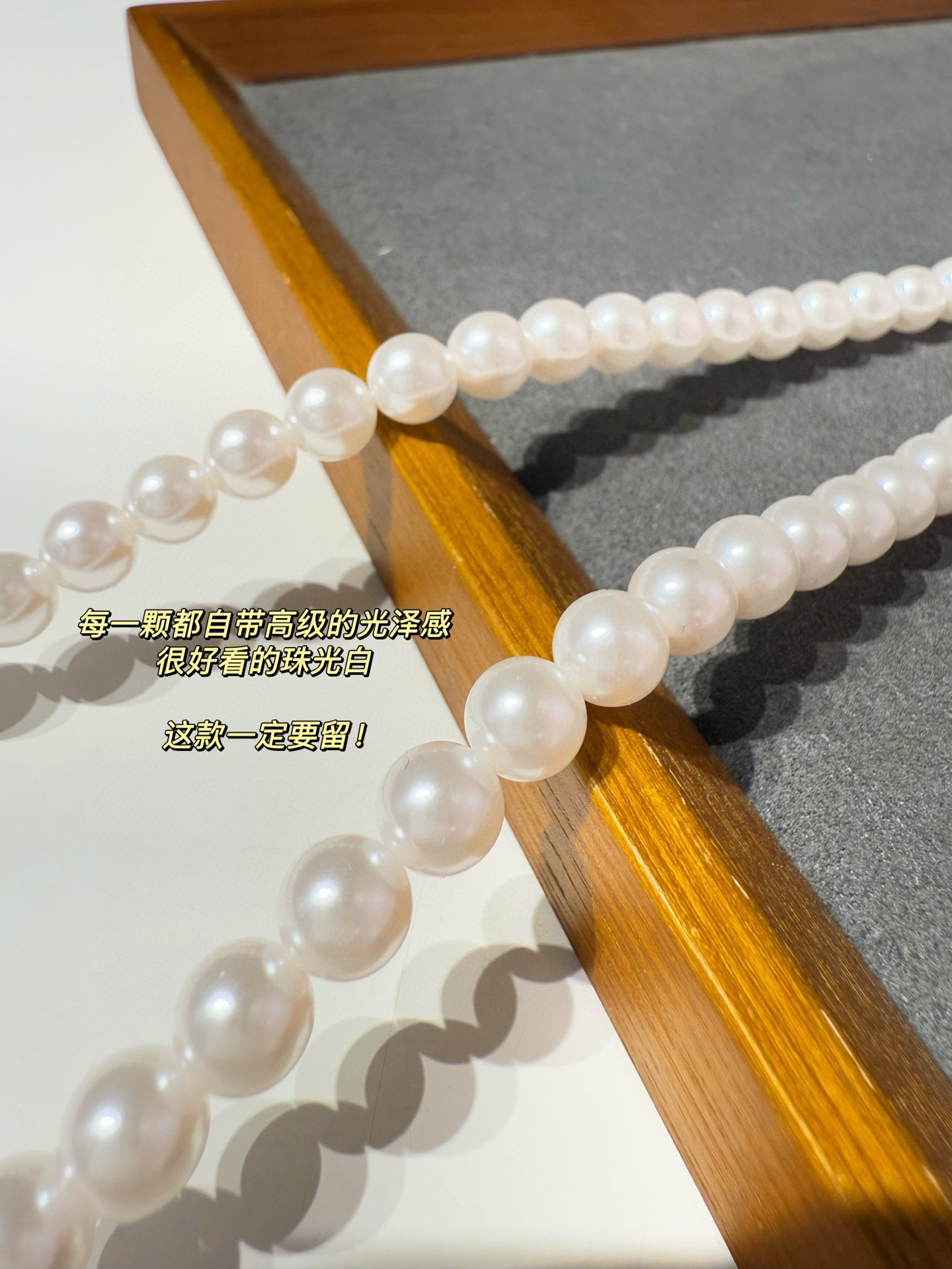 俗称“脖颈上的小灯泡”一款精美制作的珍珠项链真的很百搭,搭配不同风格的衣服也不违和,珍珠柔美的色泽很衬肤色。~