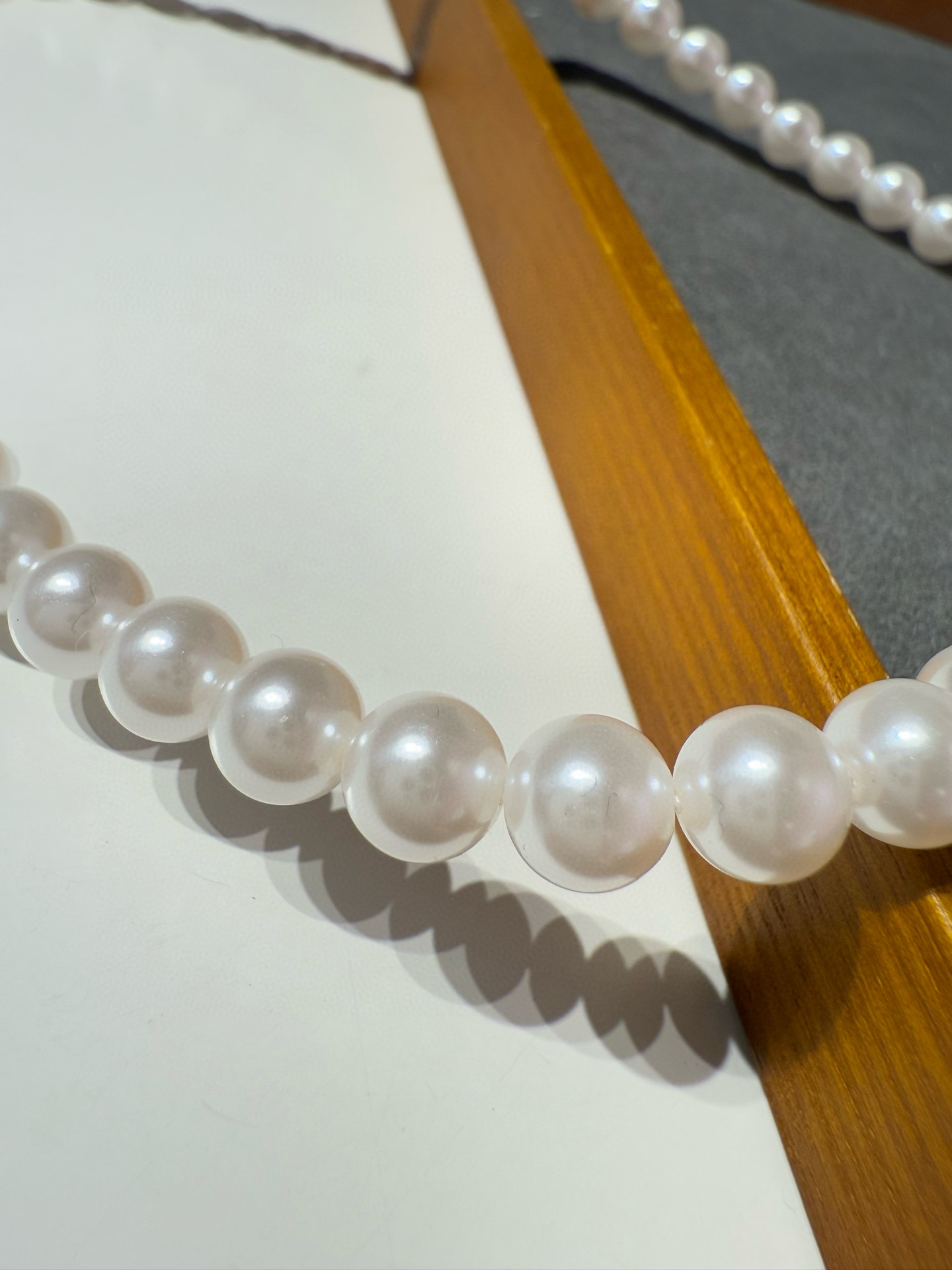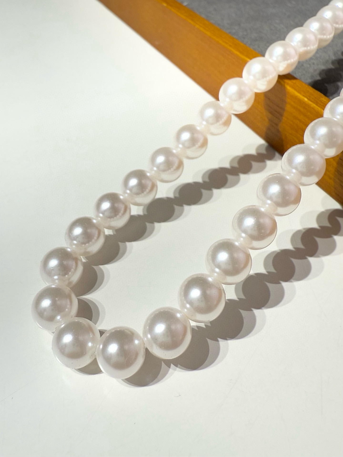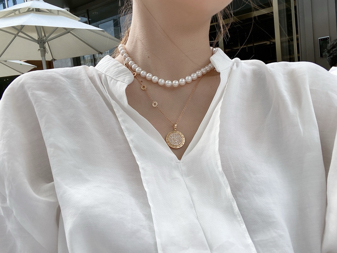 俗称“脖颈上的小灯泡”一款精美制作的珍珠项链真的很百搭,搭配不同风格的衣服也不违和,珍珠柔美的色泽很衬肤色。~