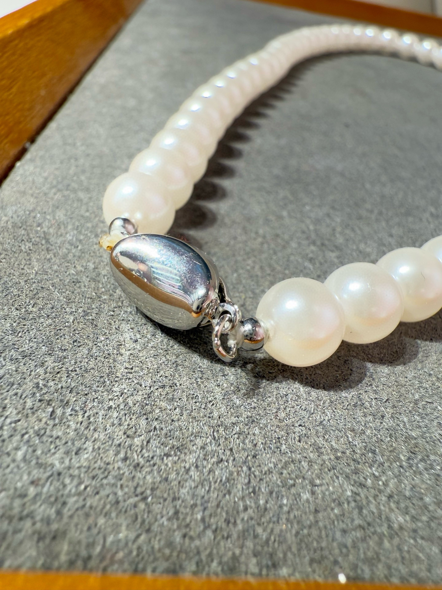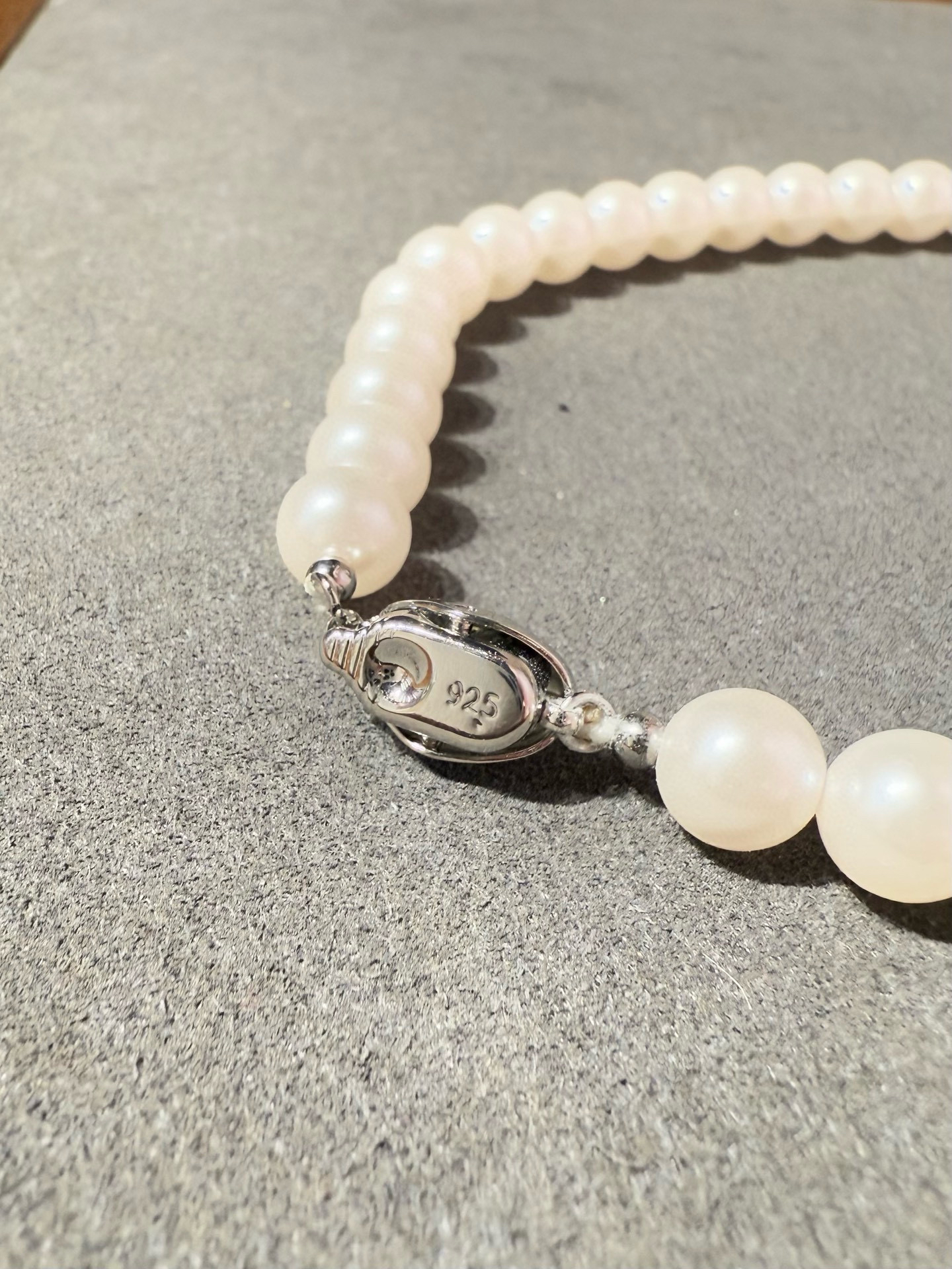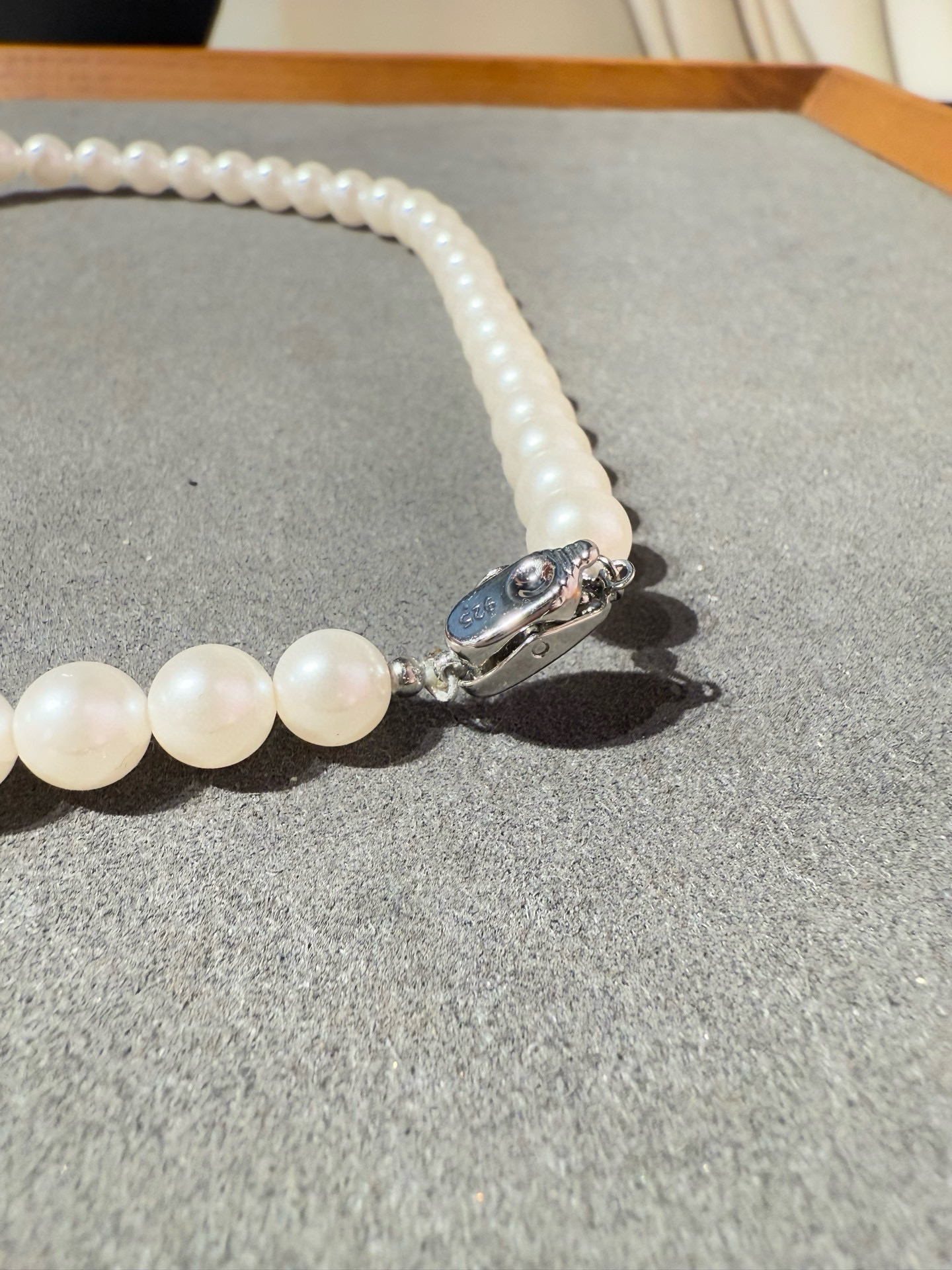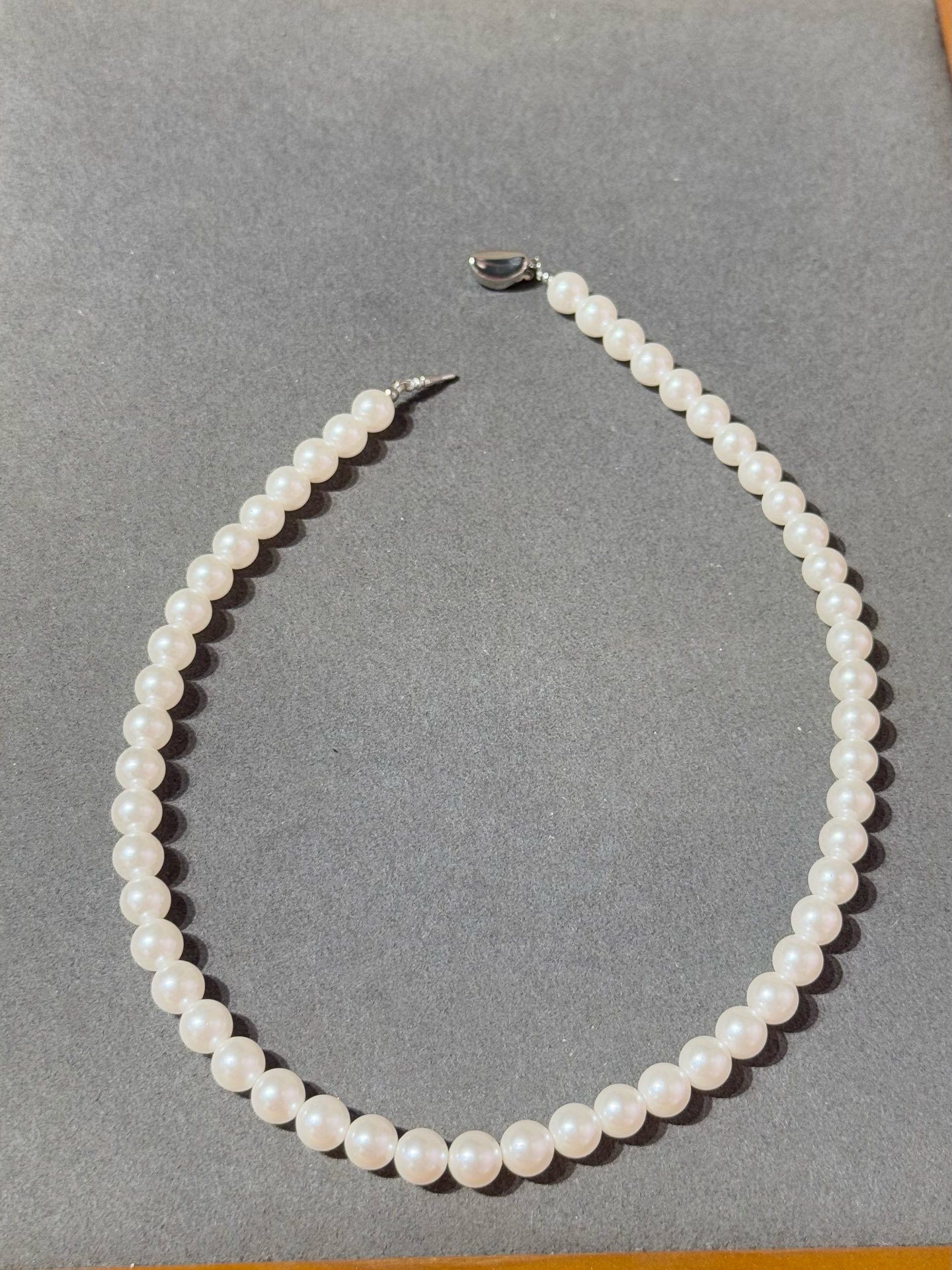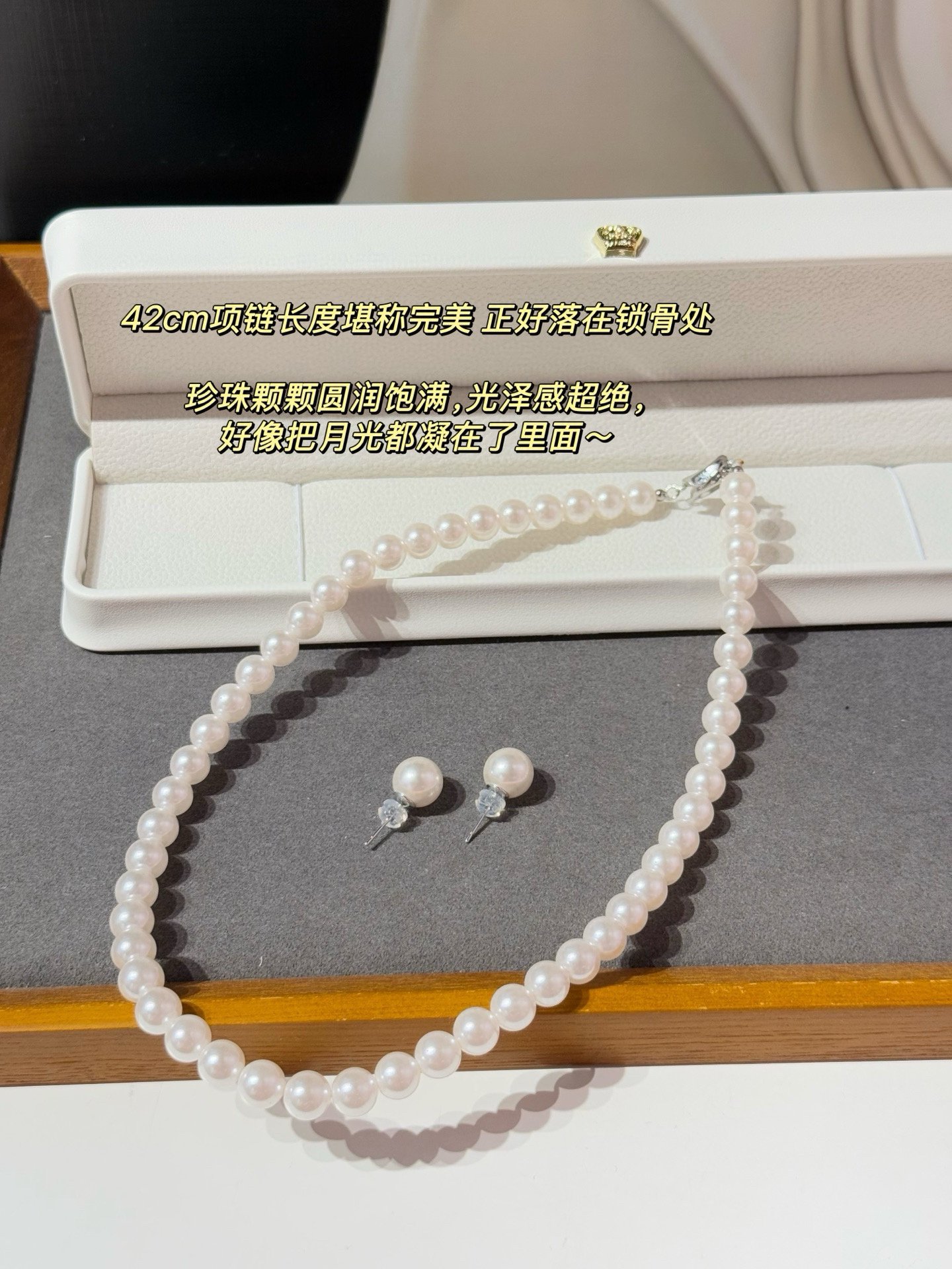 先来看项链~珍珠项链可以说是时尚圈的“常青树”了,不挑年龄,也不挑穿搭风格,一直火爆真的实至名归!42cm项链长度堪称完美,正好落在锁骨处,珍珠颗颗圆润饱满,光泽感超绝,好像把月光都凝在了里面~~