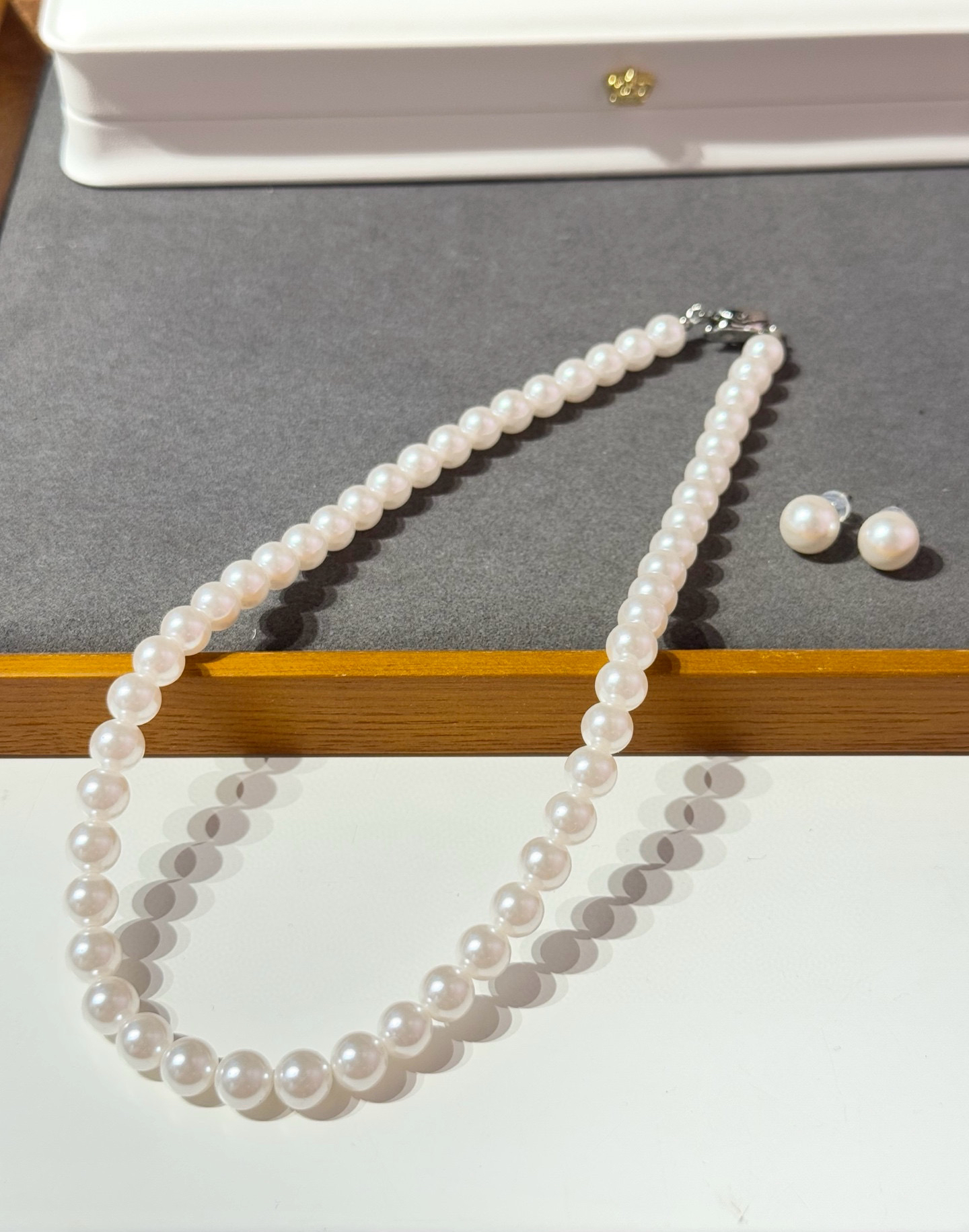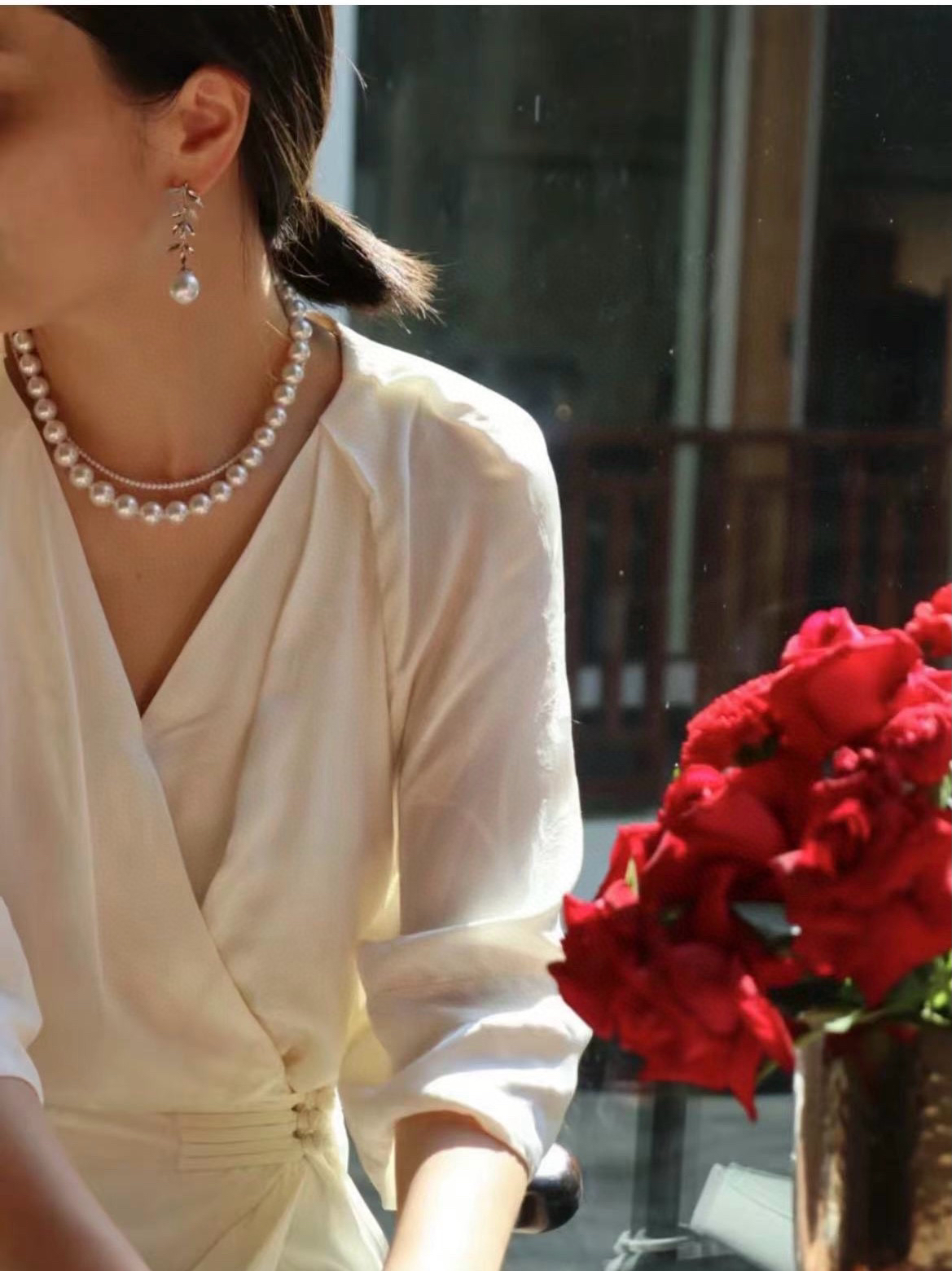 富家千金的优雅密码,全在这套的珍珠项链&耳钉里了。施华洛珍珠8mm尺寸大小刚刚好,在搭配上它的存在感很强,然而又不会过于张扬,珍珠颗颗圆润饱满,光泽细腻柔和,就像刚剥开壳的荔枝果肉,嫩得能掐出水来。~