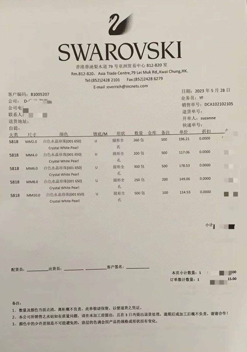 每一颗施华洛珍珠我们会经过人工筛选,再次挑选出挑出来进行大货加工处理。