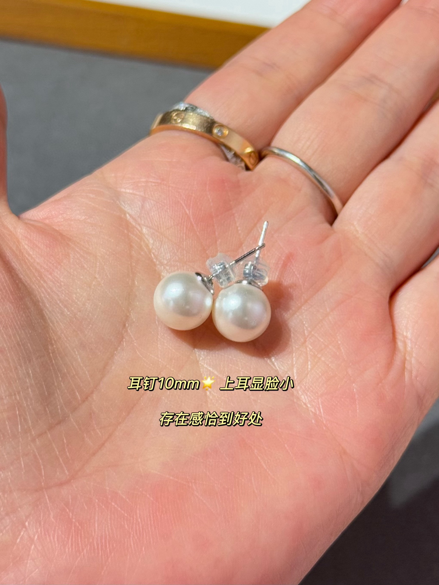 耳钉10mm🌟 925纯银针 防过敏,上耳显脸小,存在感恰到好处,无论披发还是扎发,都能成为造型的点睛之笔。珍珠光泽柔和又高级,让耳朵瞬间精致起来,随便一戴就是清冷大小姐。~