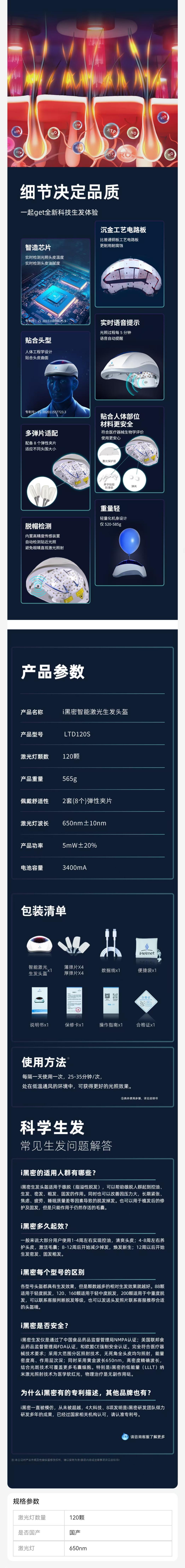 【升级版】i黑密生发头盔 /生发帽 138颗灯(适合1-3级脱发)/ 赠腺苷头皮营养液60ml / type-c充电器即可充电