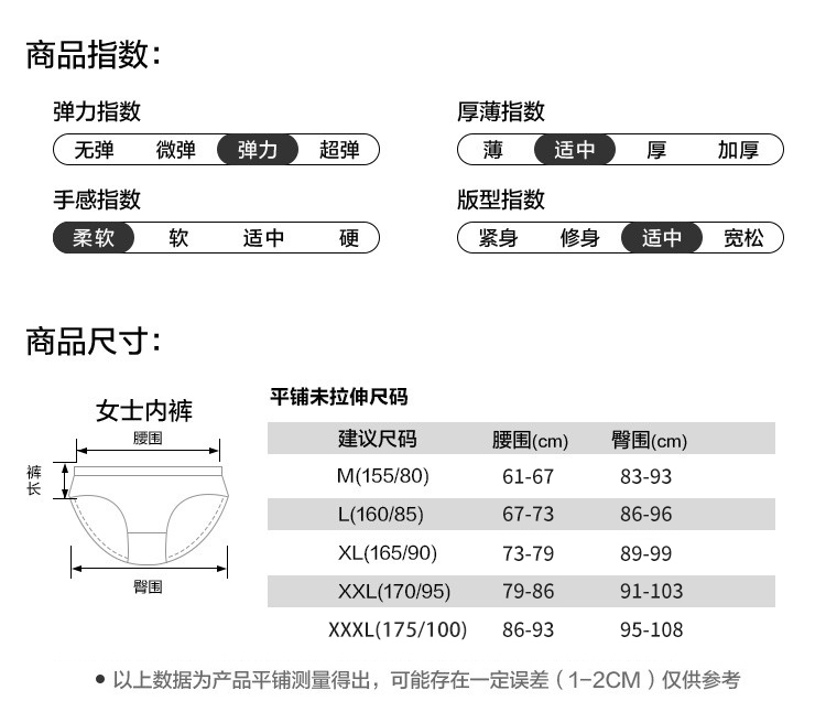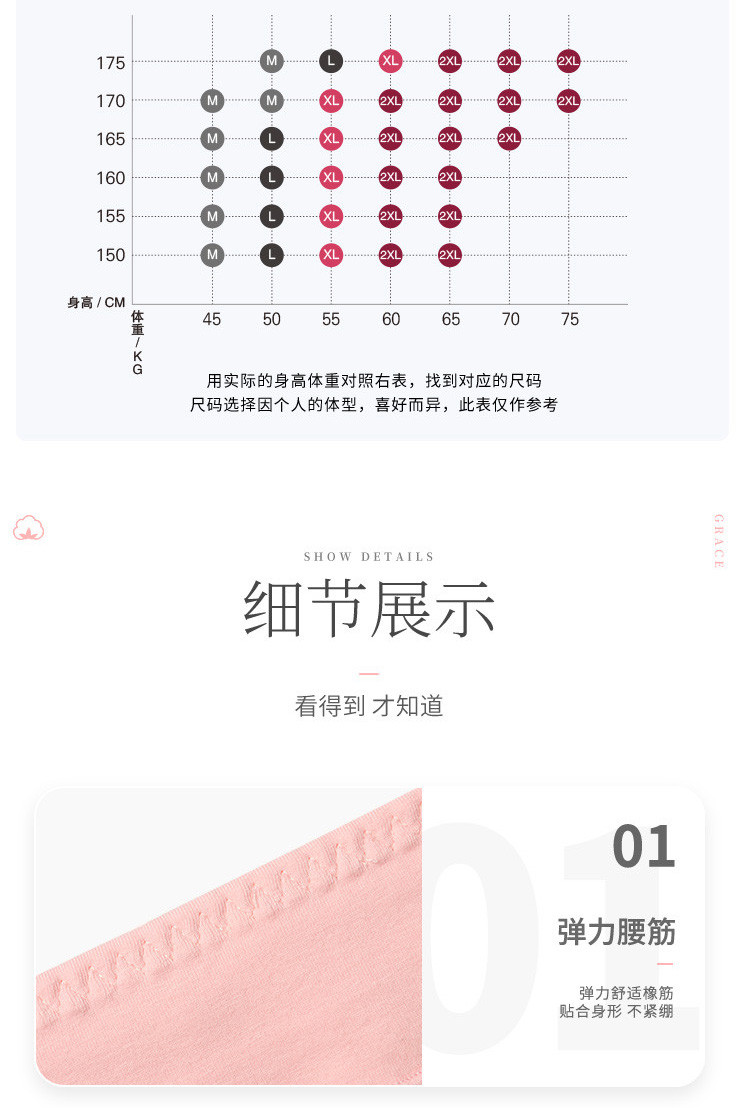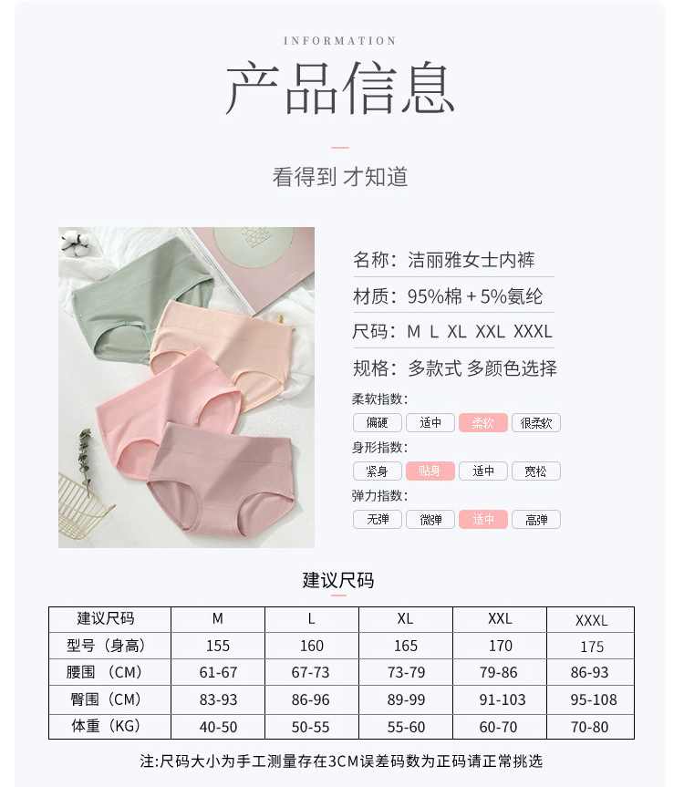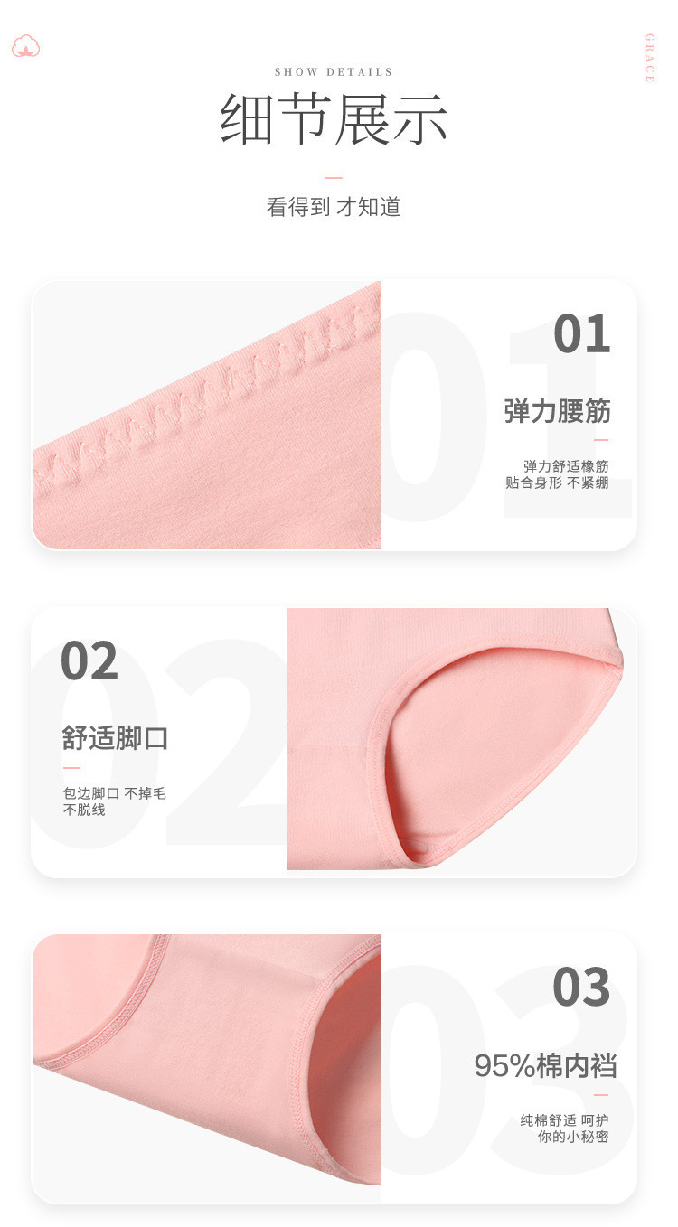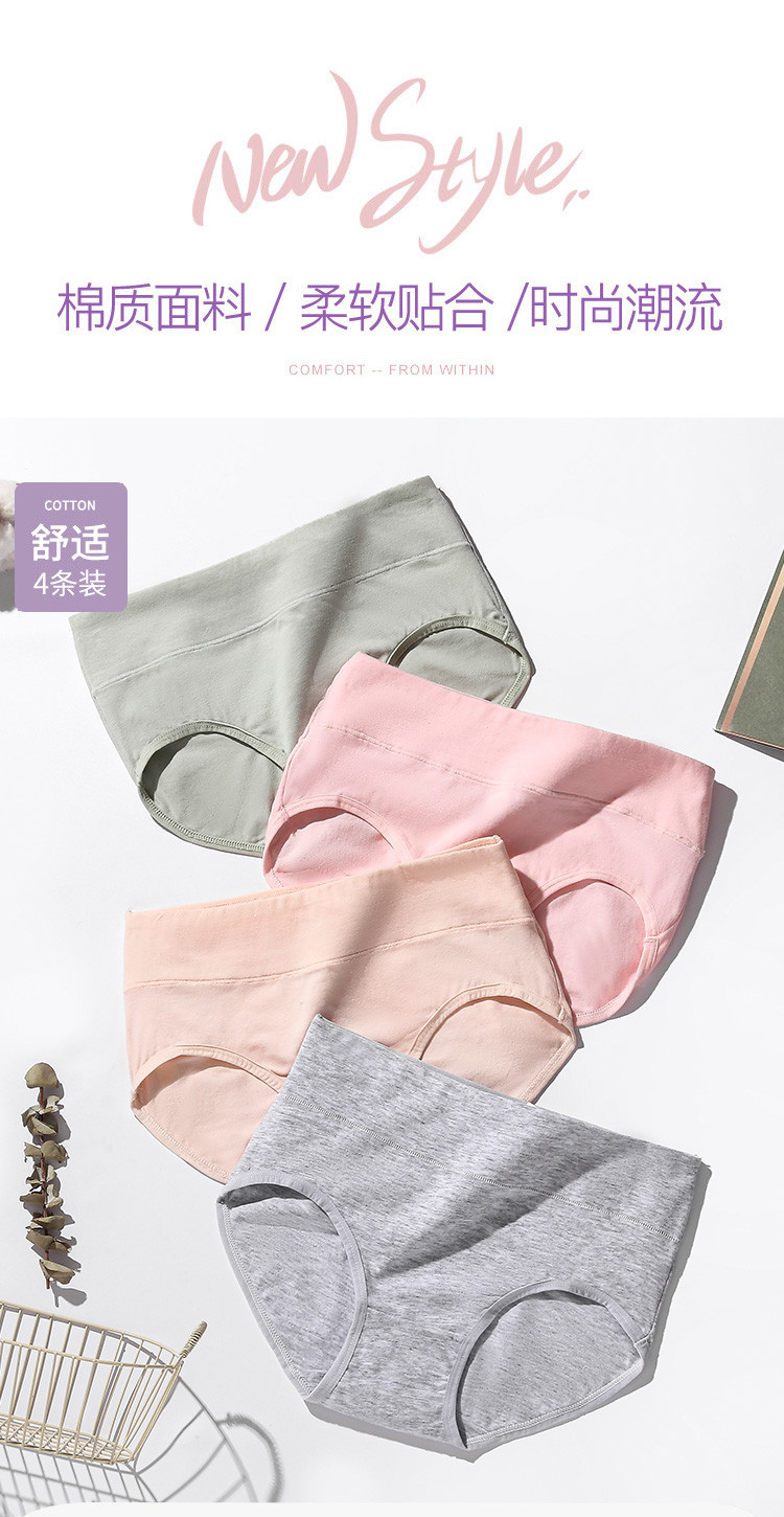 洁丽雅棉质不卷边舒适健康4条装提臀透气中腰收腹女士内裤女