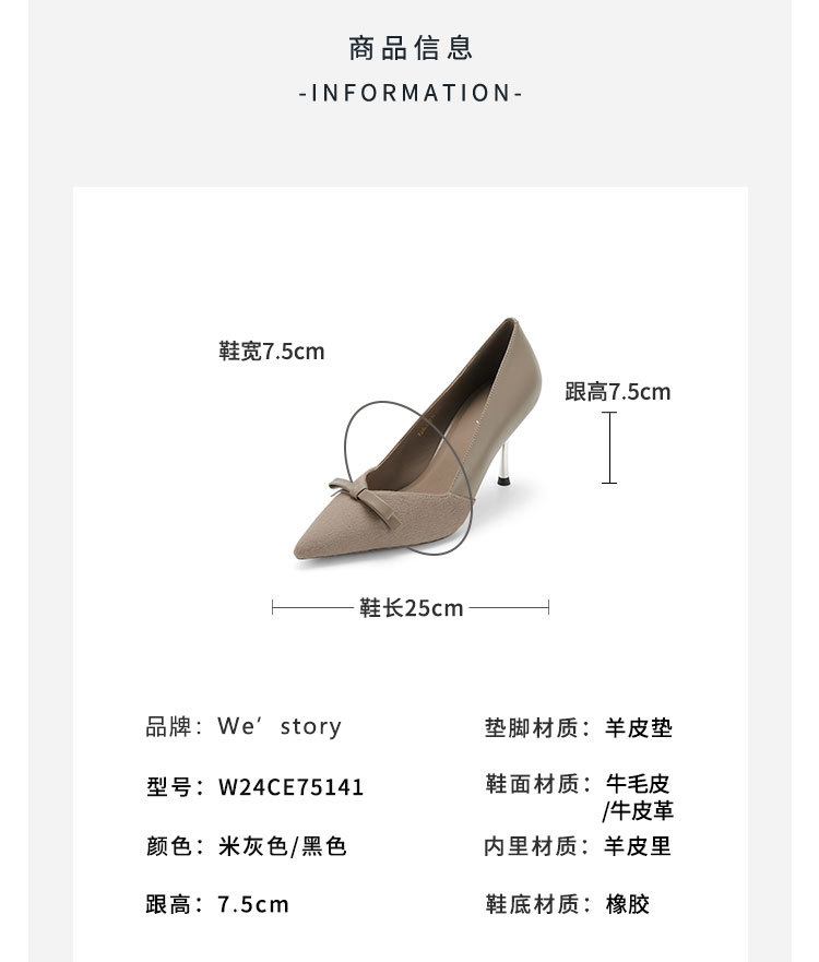 westory2024年秋季新款饰扣小尖头细高跟舒适优雅单鞋W24CE75141