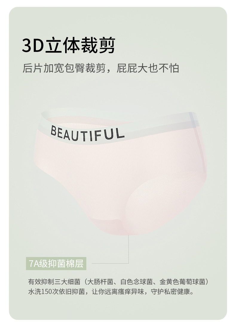 【7A抑菌】洁丽雅中腰女士内裤舒适亲肤凉感时尚撞色内裤