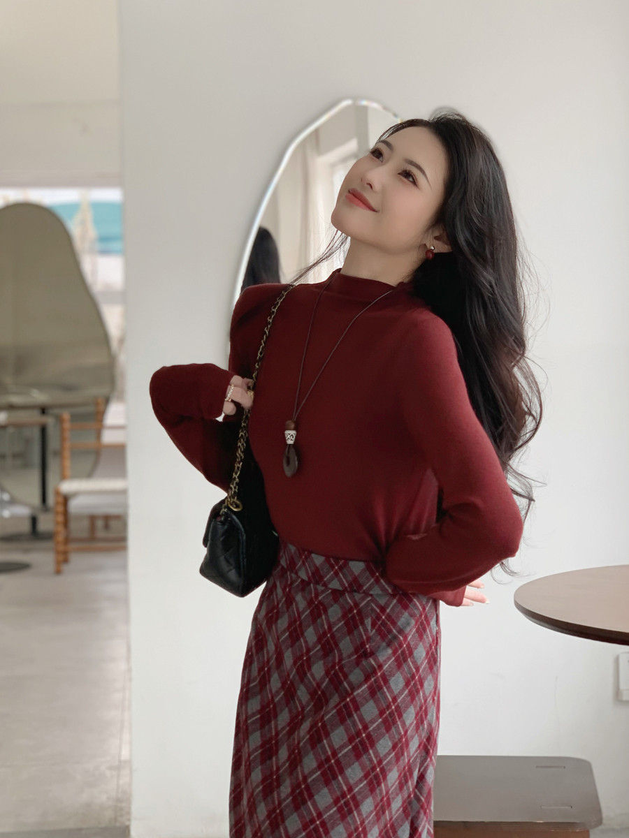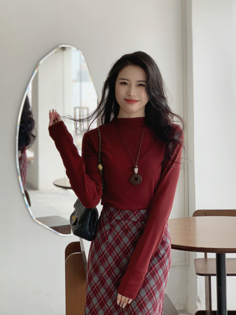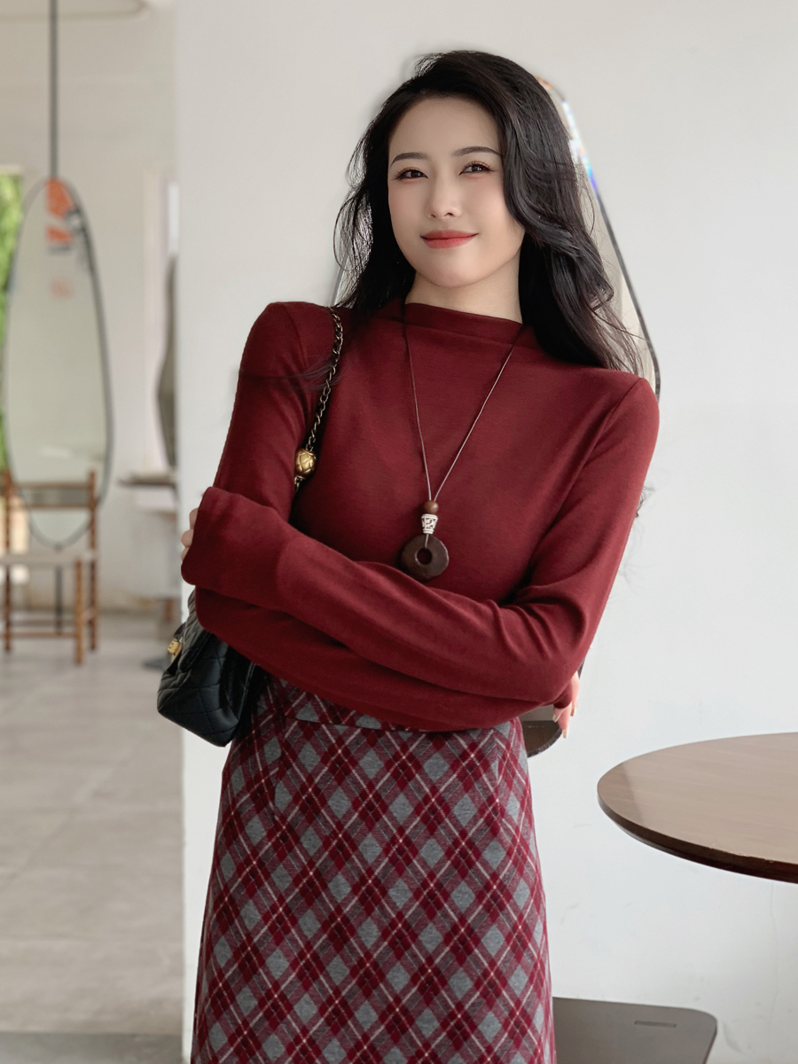 【百图lulu定制】【红曜石T恤】【赠来财吊坠】高弹 舒适 小立领 长袖T恤