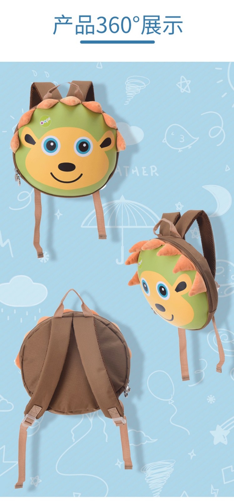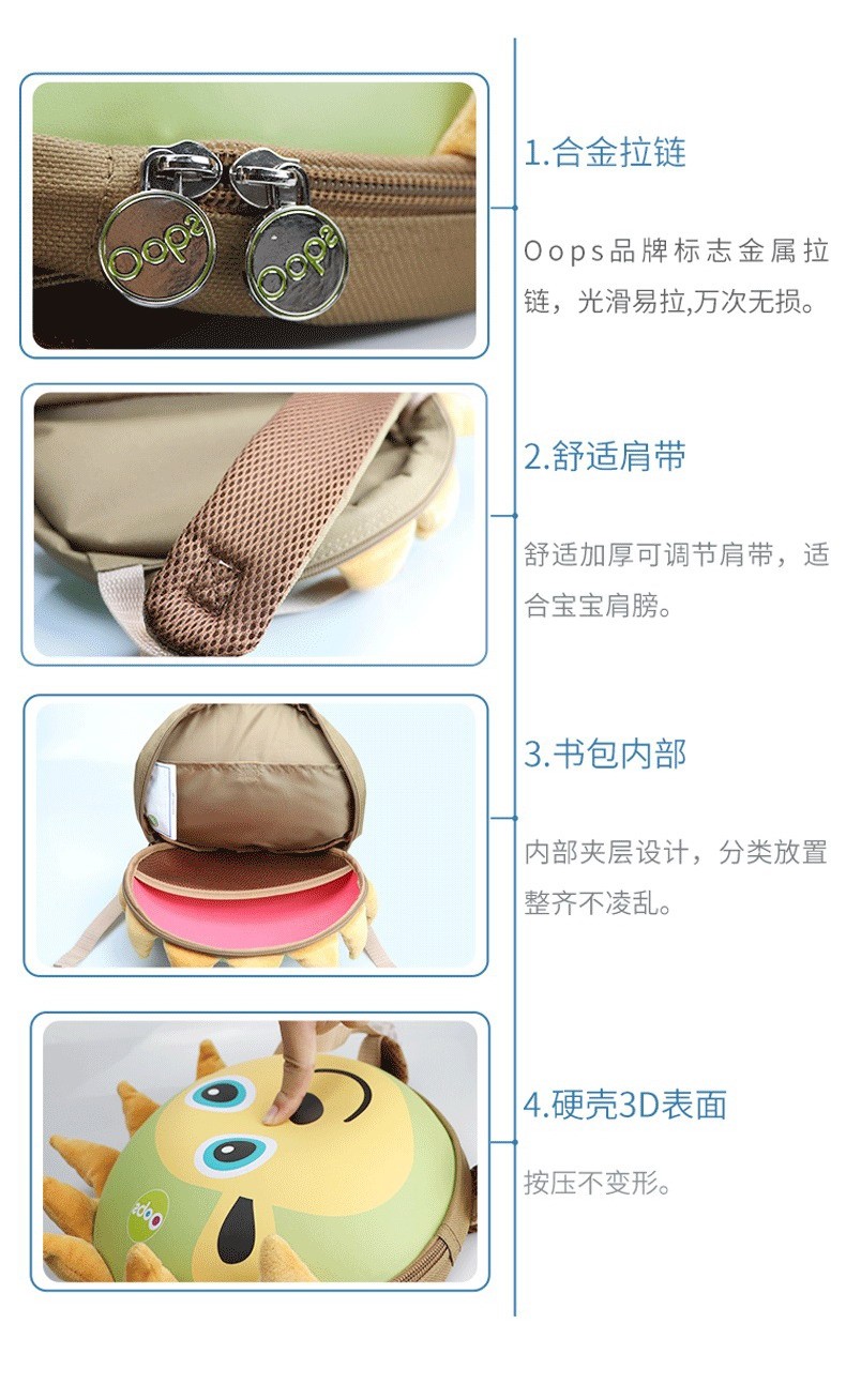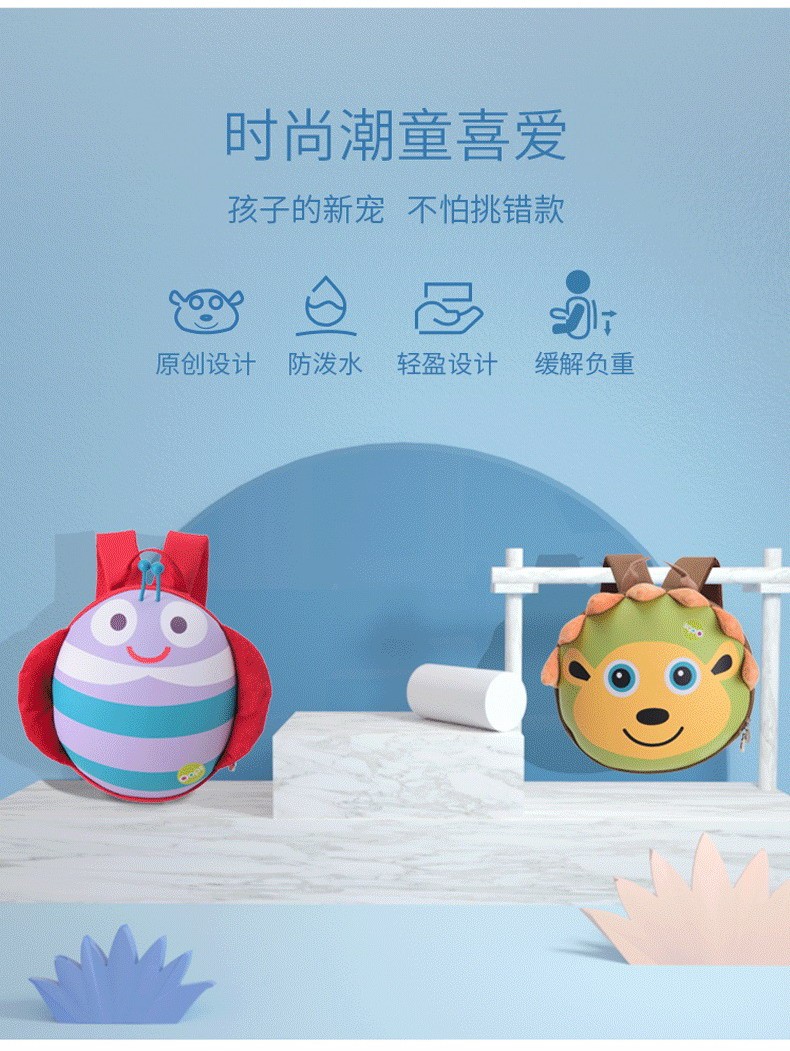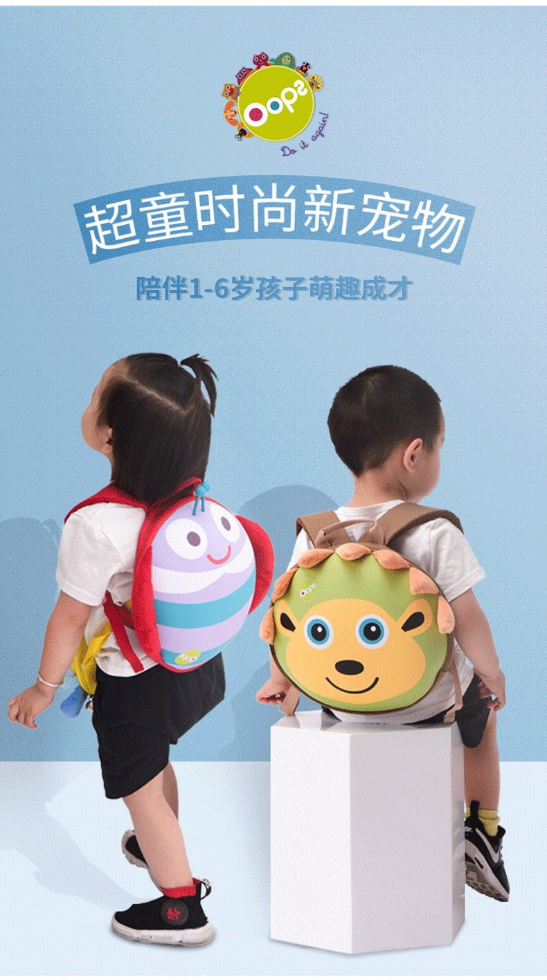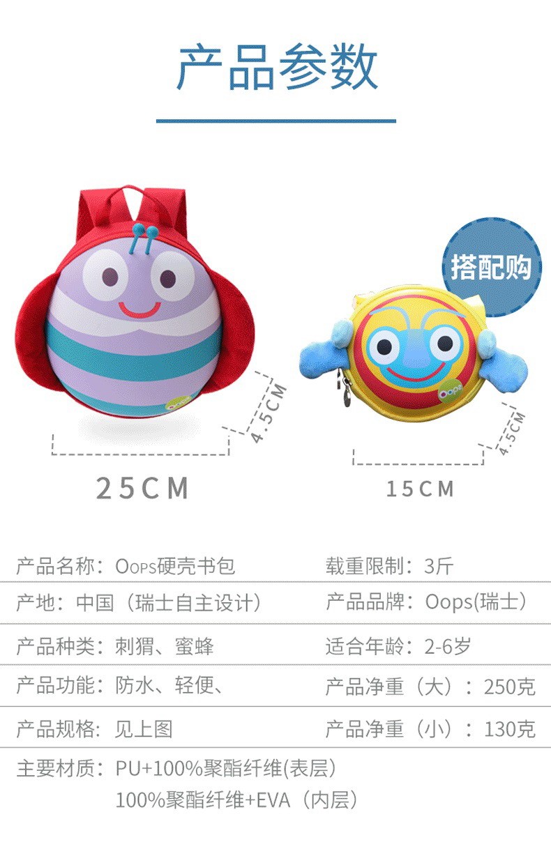瑞士Oops 儿童圆形包包卡通可爱幼儿园书包男女童超轻双肩背包2岁3岁4岁5岁6岁宝宝 双肩背包-瓢虫