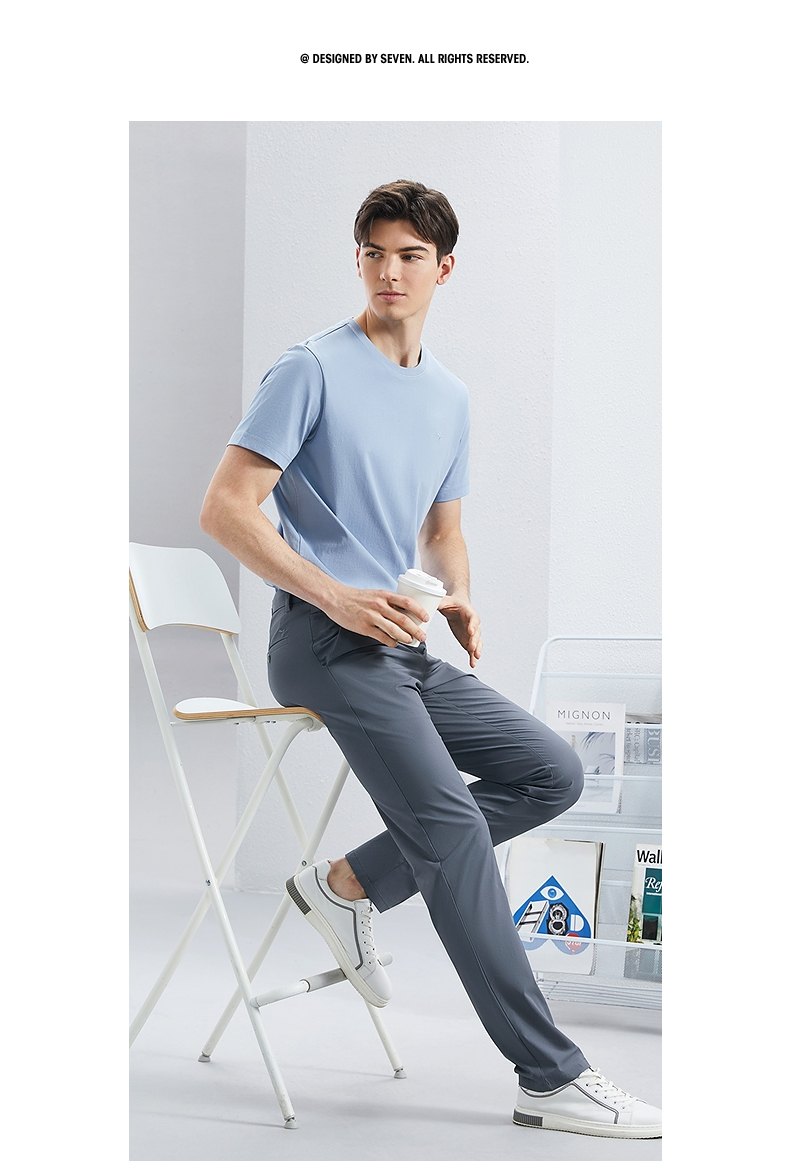 【冰藻泥】柒牌男装直筒休闲裤男2024夏季新款凉感舒适修身长裤 126H71750