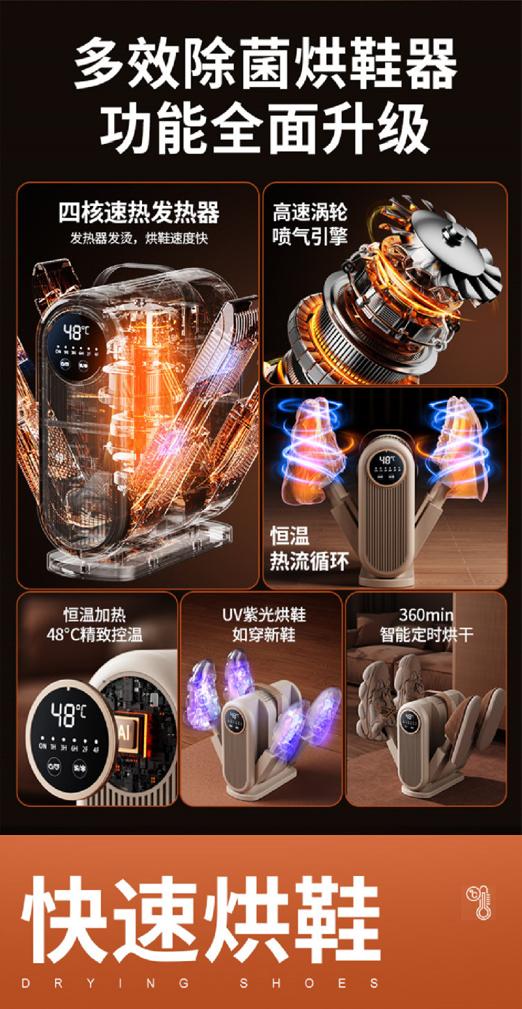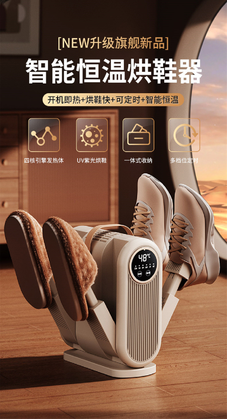 新款定时速干烘鞋器便携可折叠烘鞋机恒温除湿臭双V干鞋神器