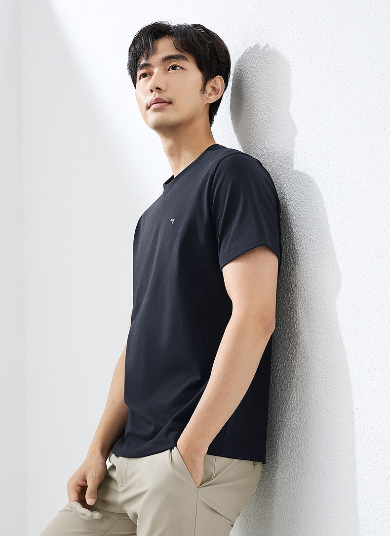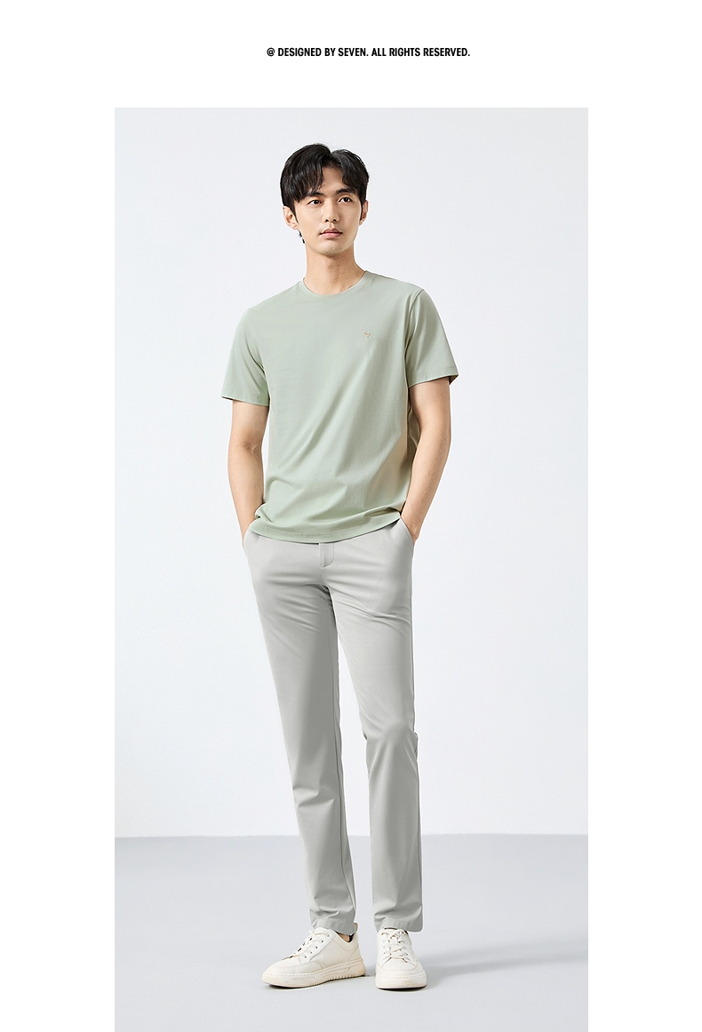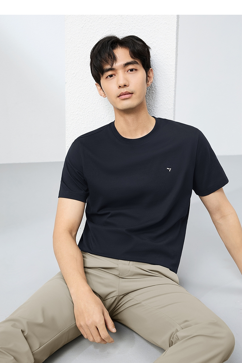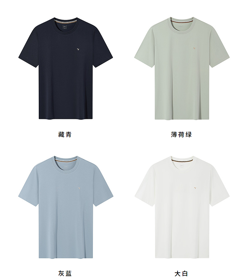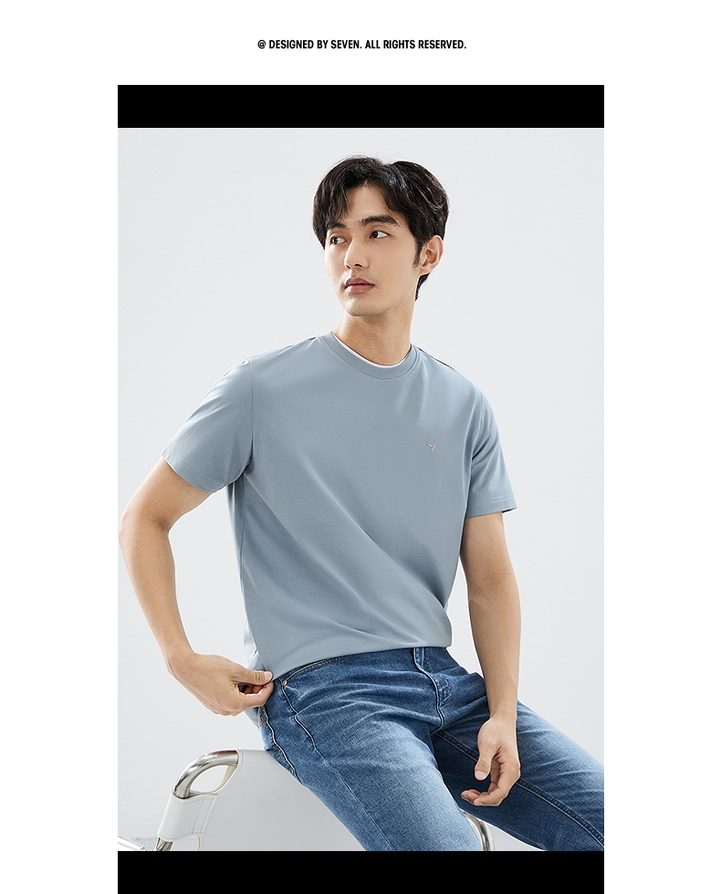 【含桑蚕丝】柒牌男装短袖T恤男2025夏季凉感休闲百搭圆领体恤衫
