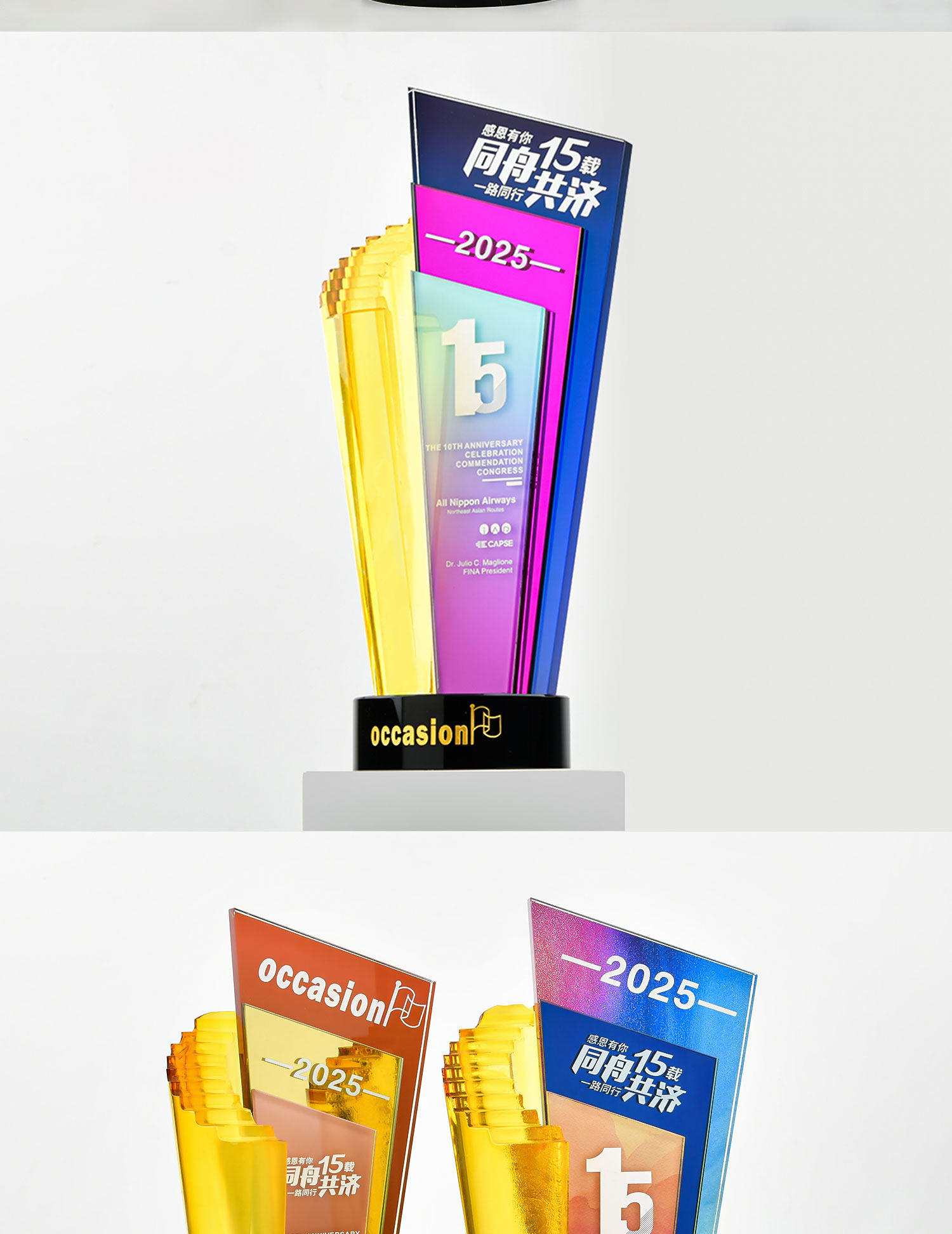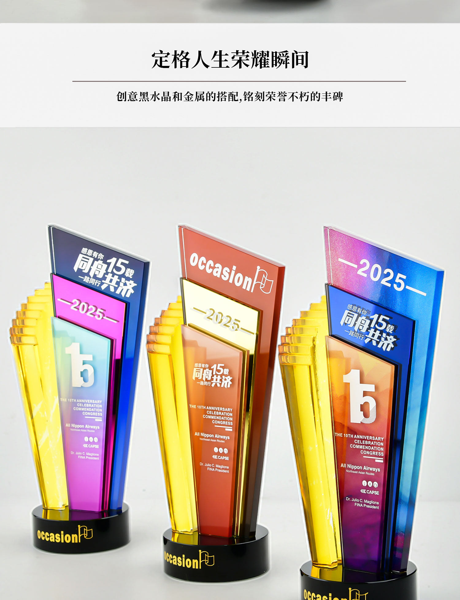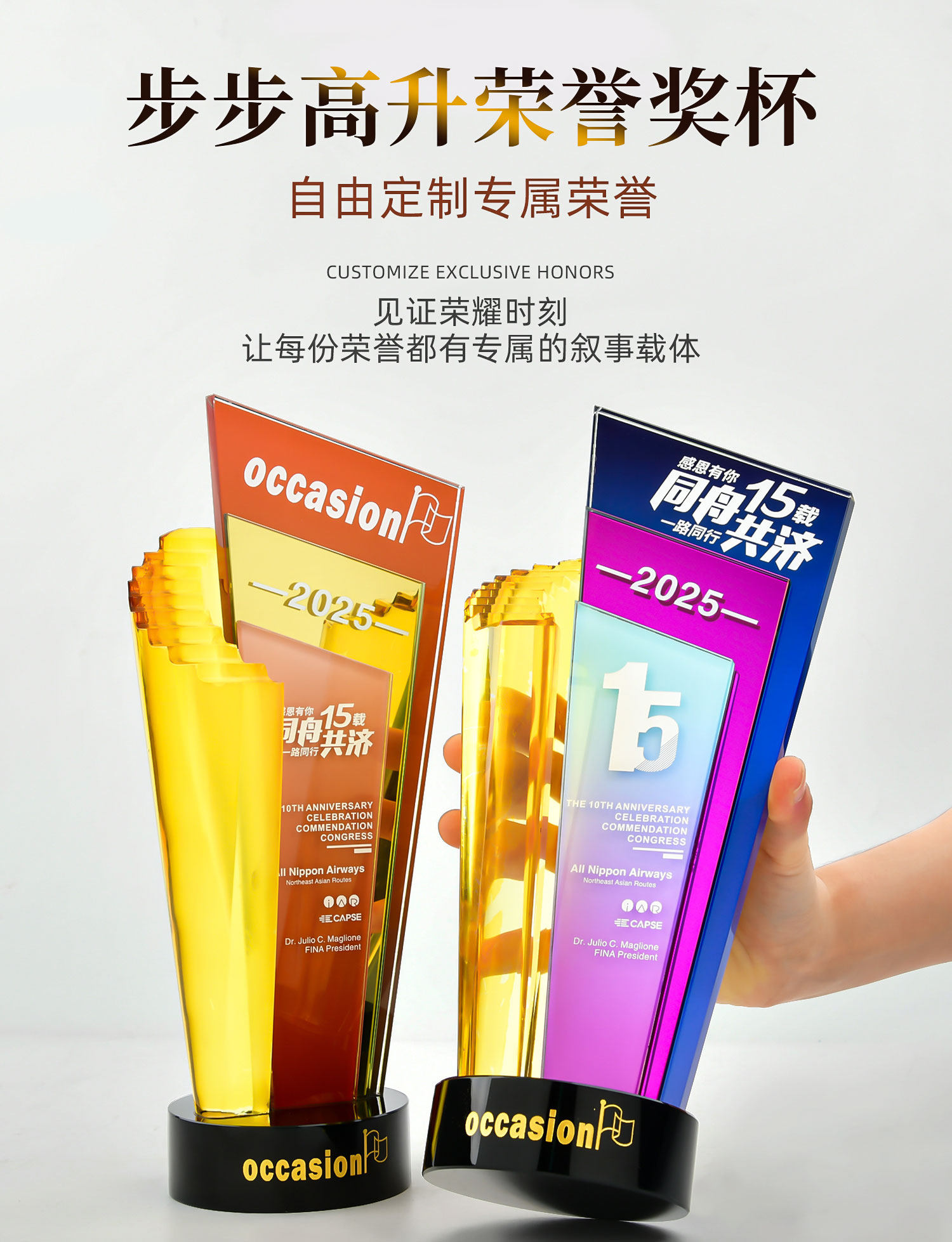 水晶奖杯定制创意炫彩透明奖牌表彰颁奖步步高升阶梯高档琉璃奖杯