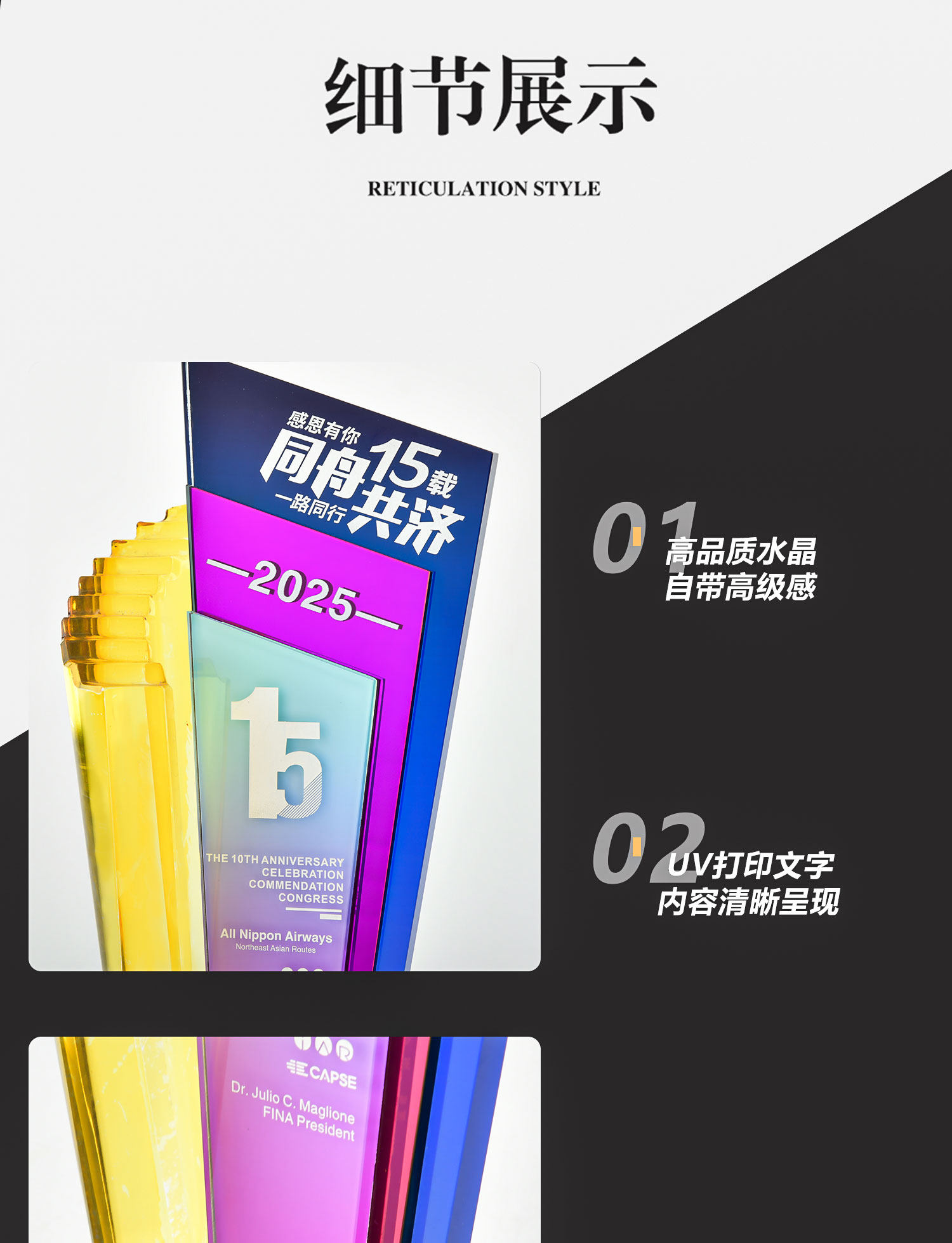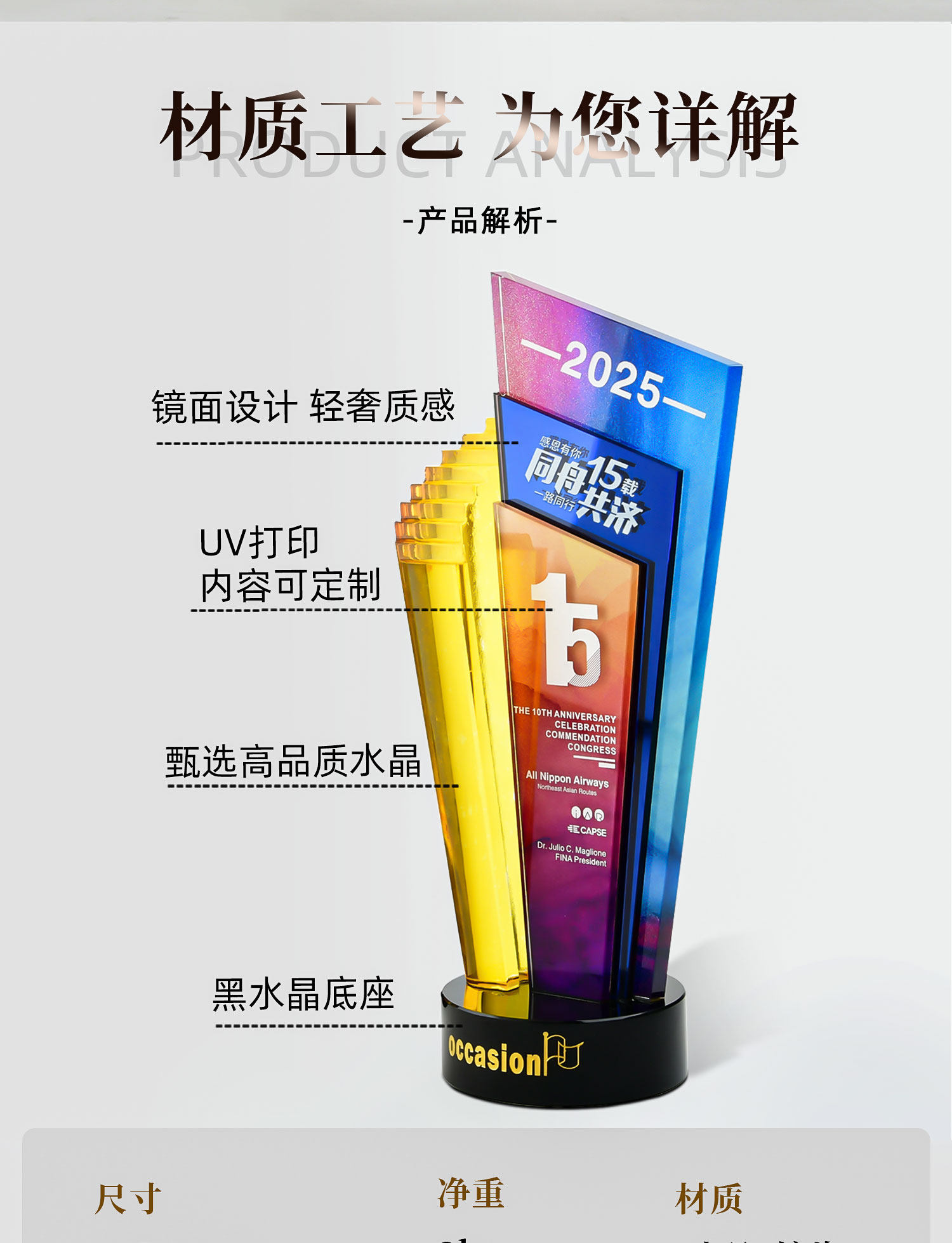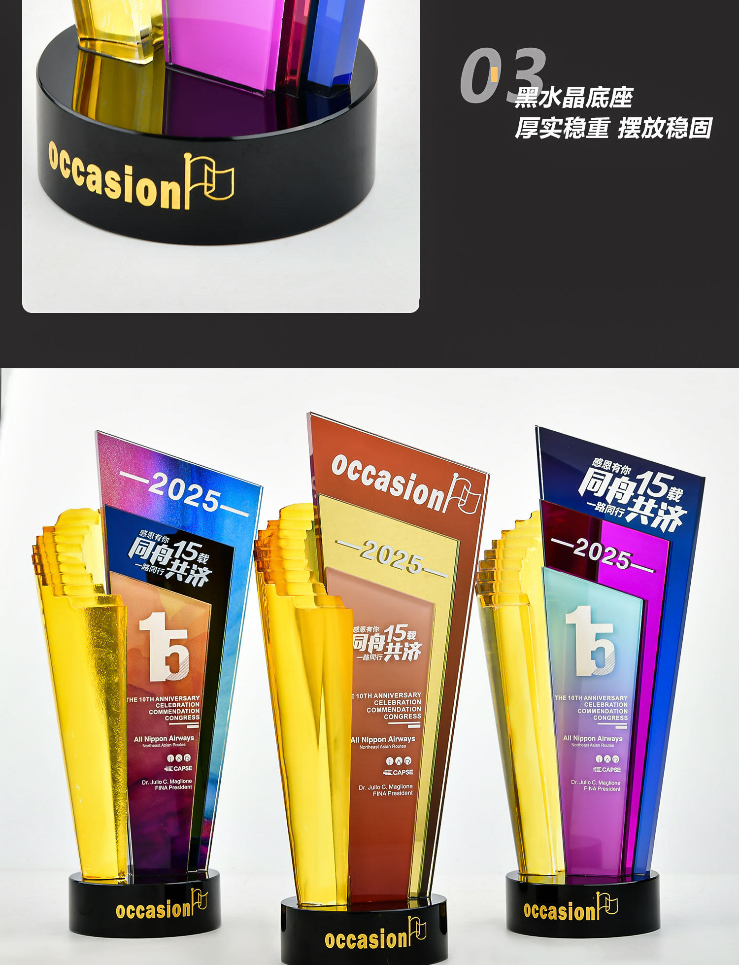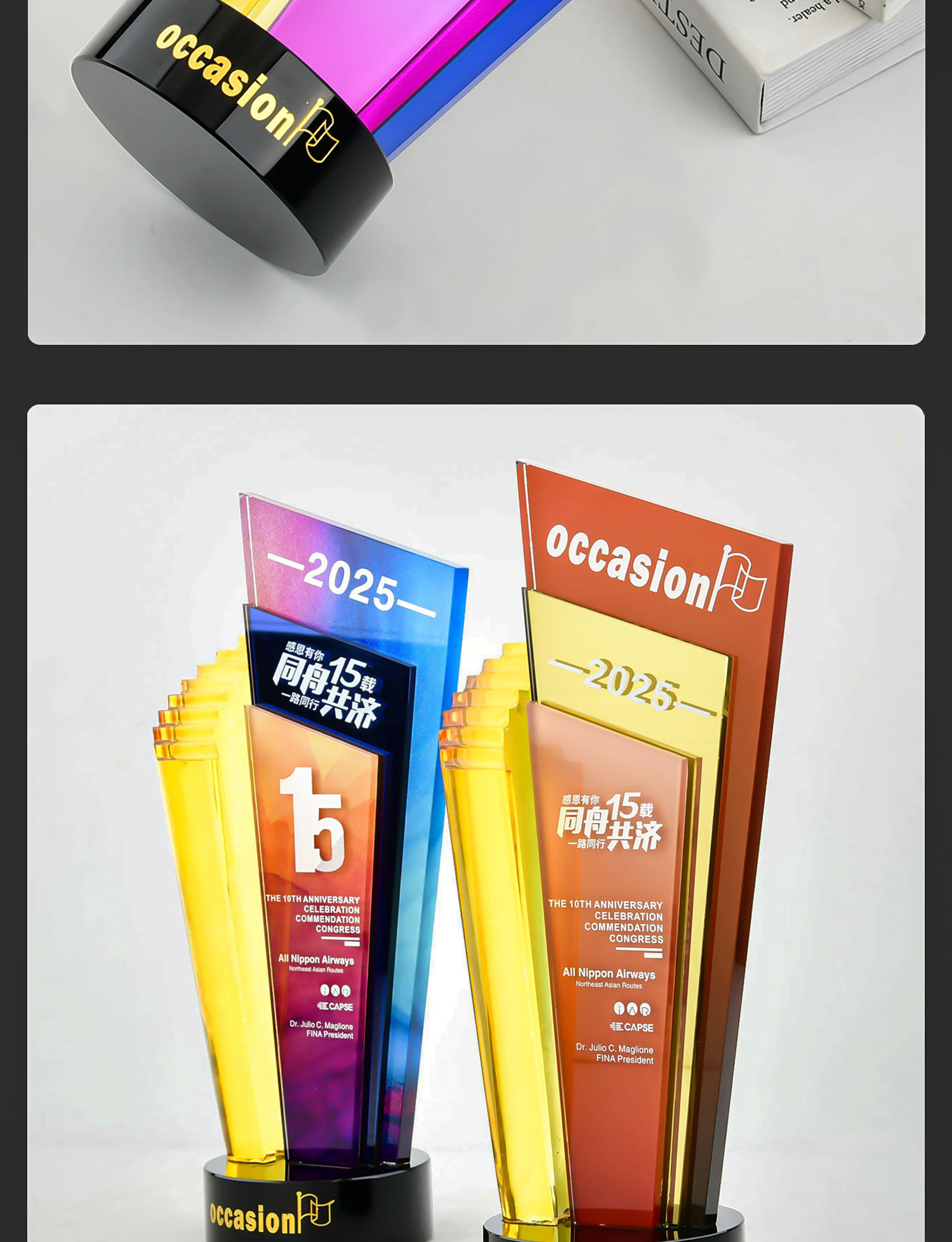 水晶奖杯定制创意炫彩透明奖牌表彰颁奖步步高升阶梯高档琉璃奖杯