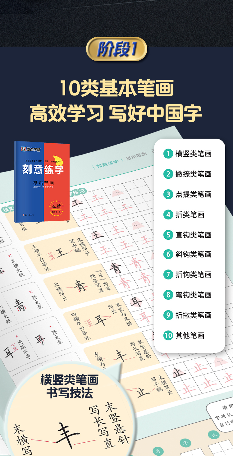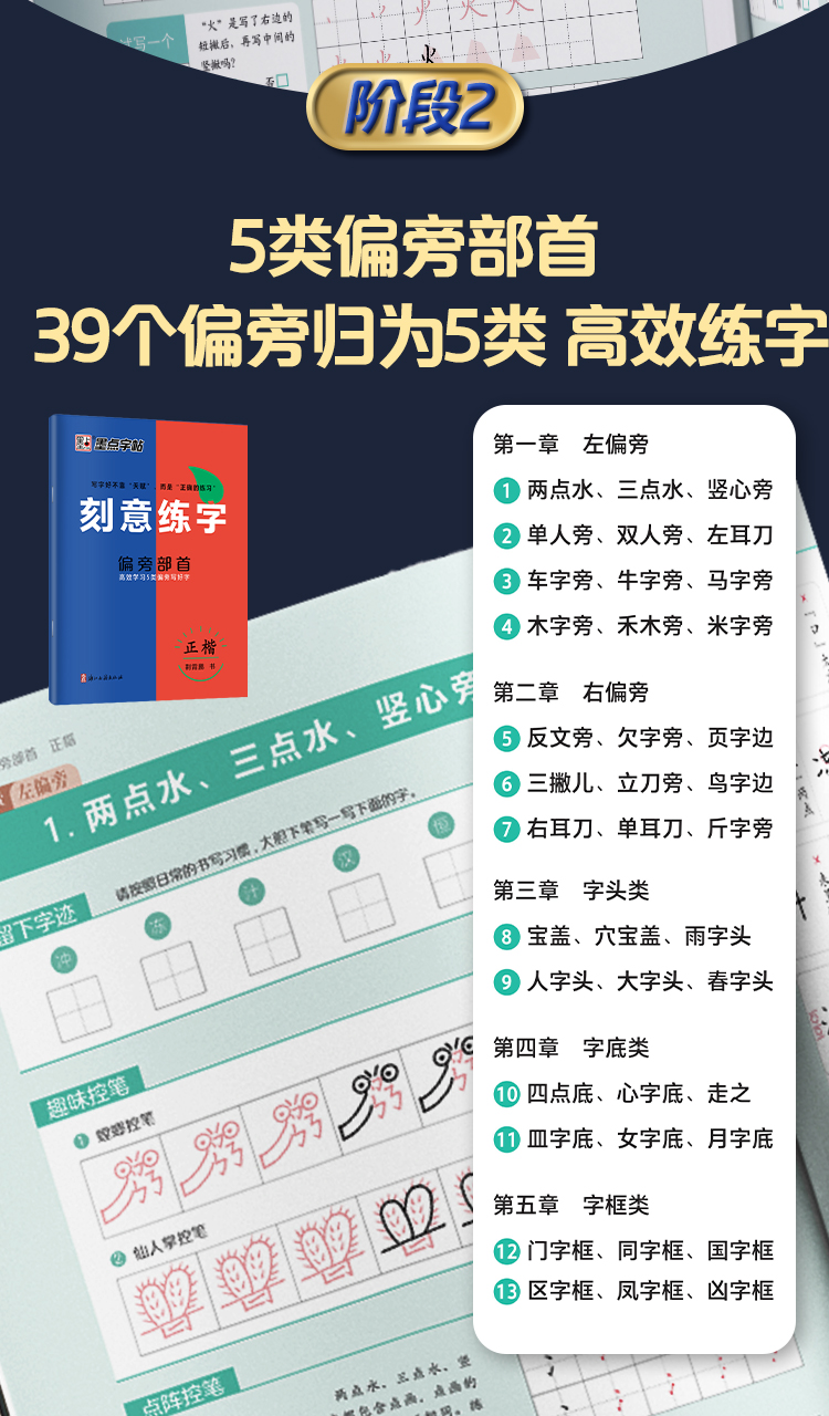 墨点字帖 刻意练字 基本笔画偏旁部首间架结构楷书字帖荆霄鹏楷书练字帖