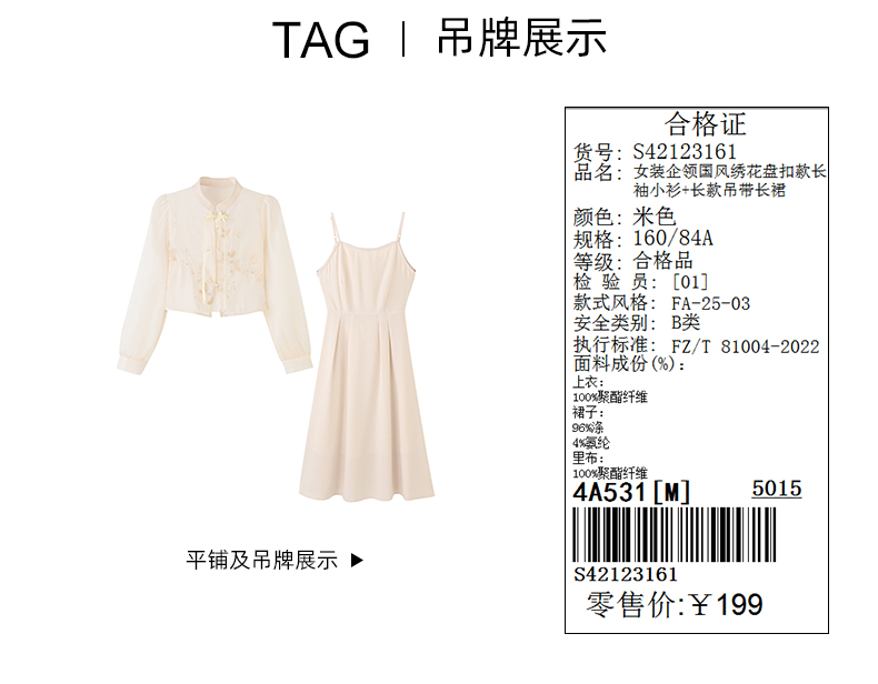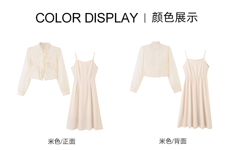 女装企领国风绣花盘扣款长袖小衫+长款吊带长裙S4212316