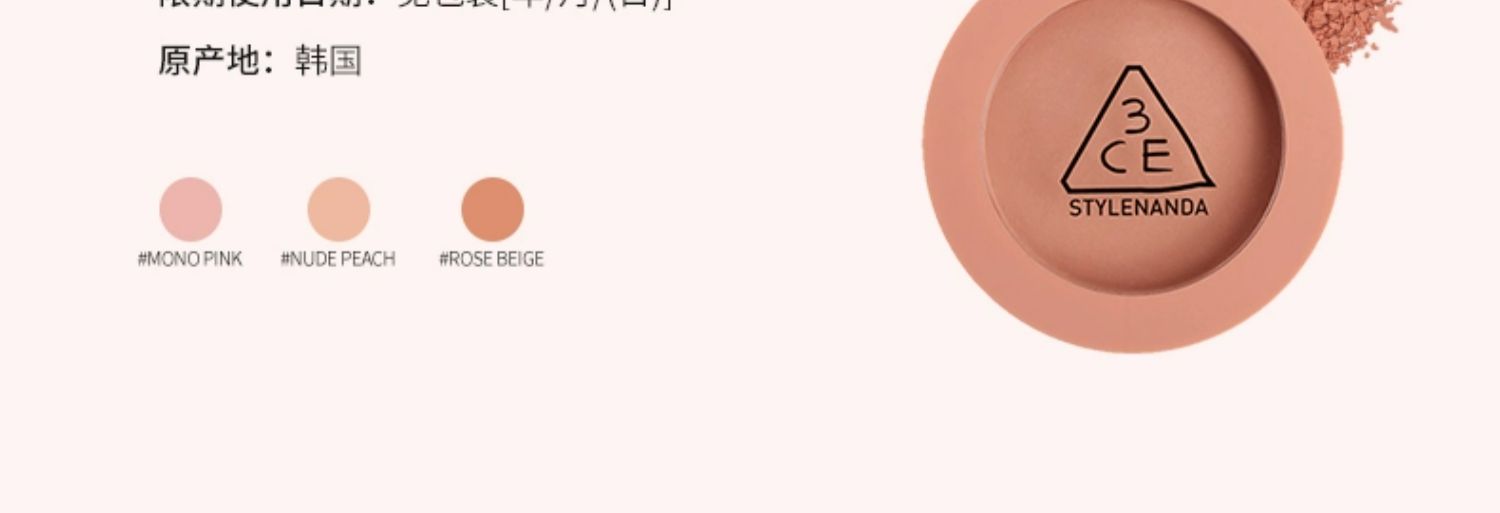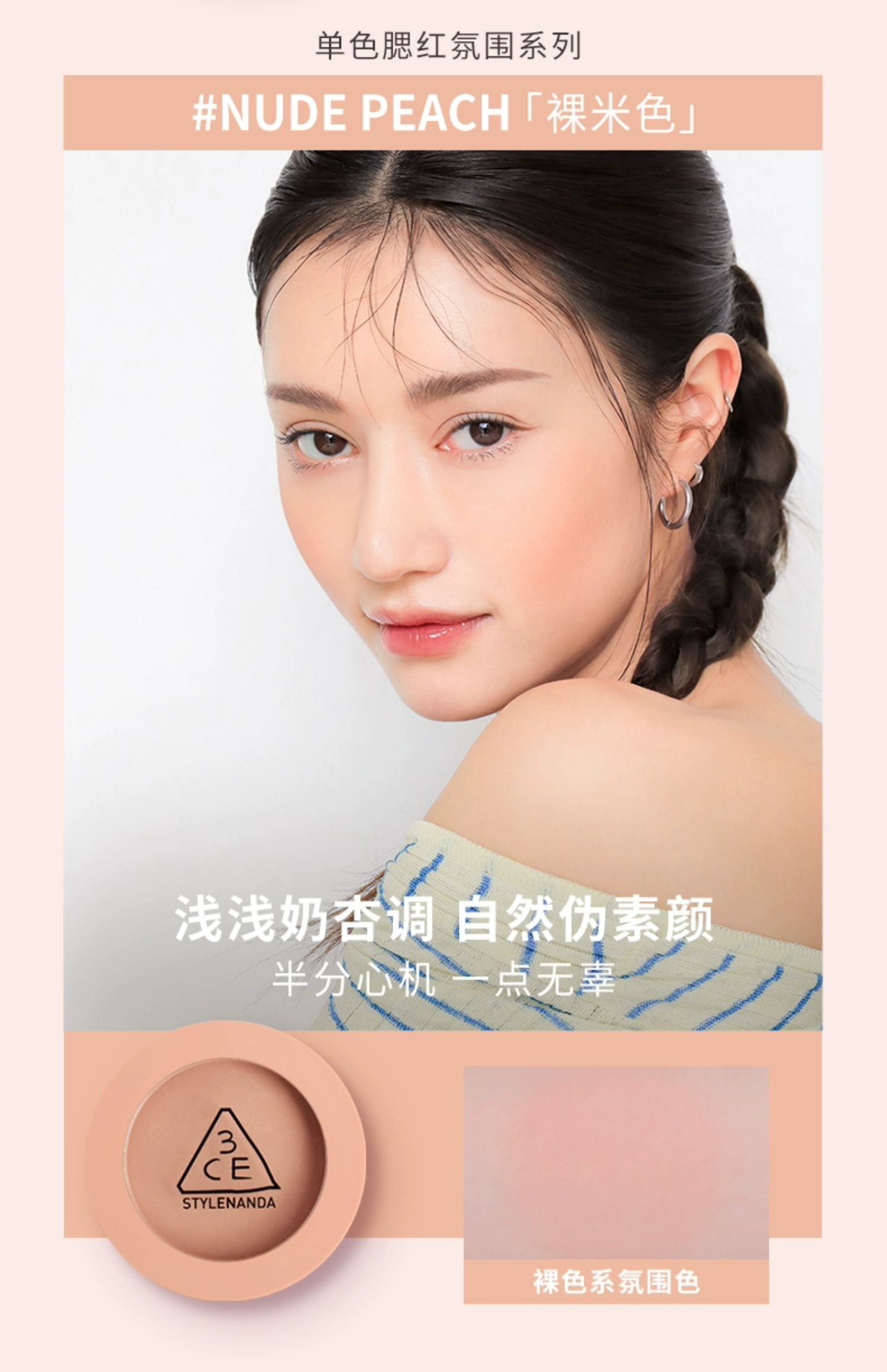 【保税仓】3CE三熹玉单色腮红裸米色/温婉粉色/蜜桃橘/CITYMAUVE 5.5g