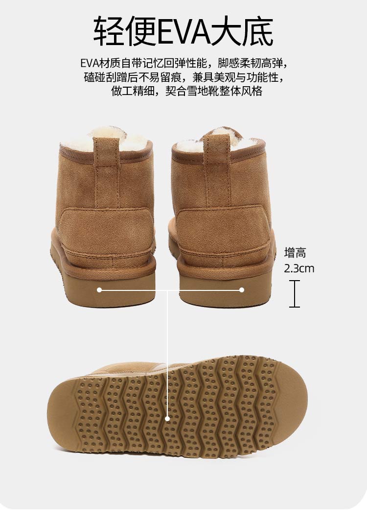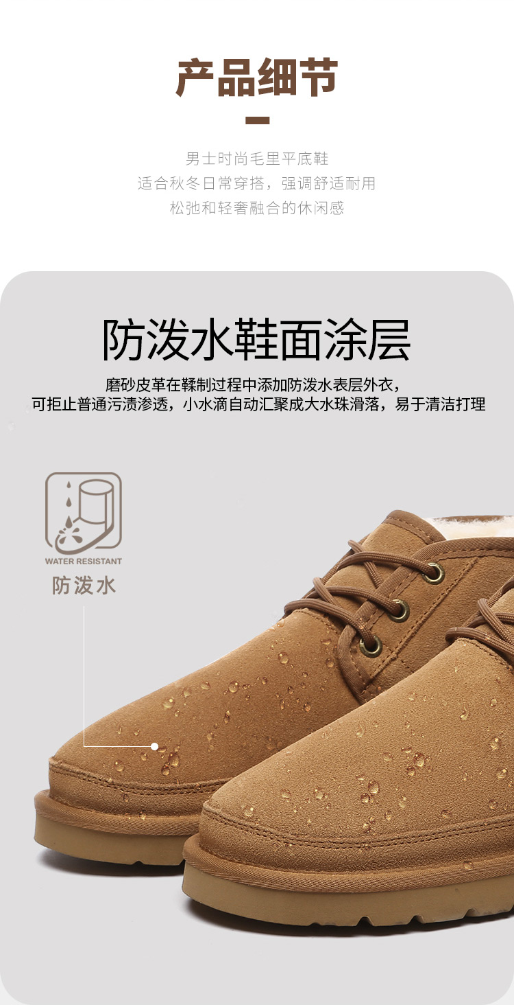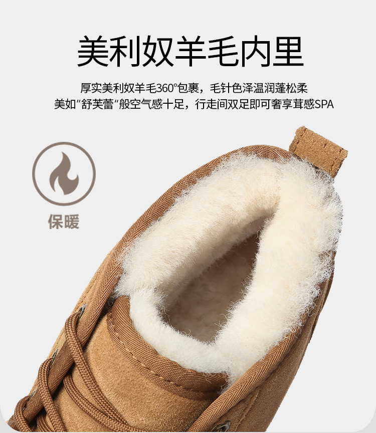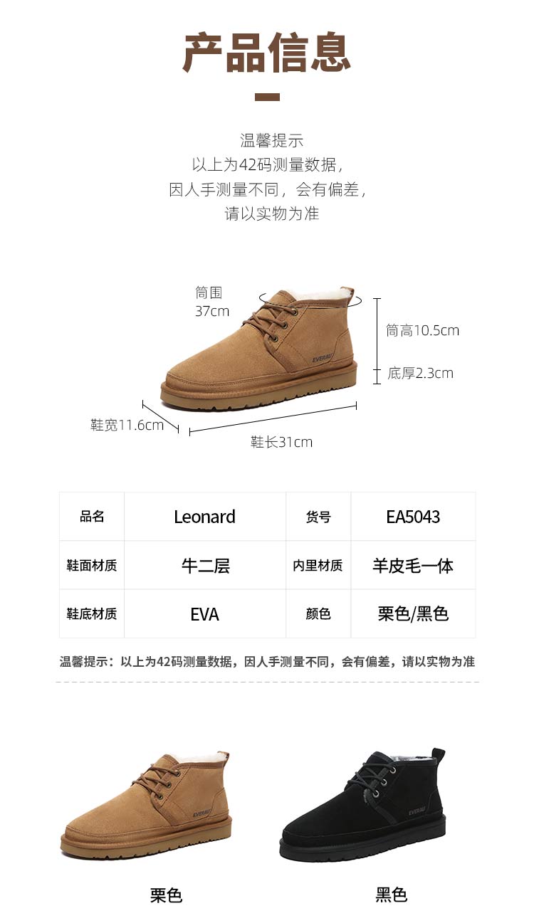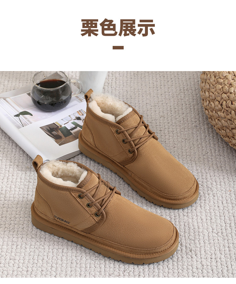EVERAU防风系带高帮设计内里澳洲美利奴羊皮毛一体做工走线精致户外通勤都可男士保暖高帮雪地靴EA5043