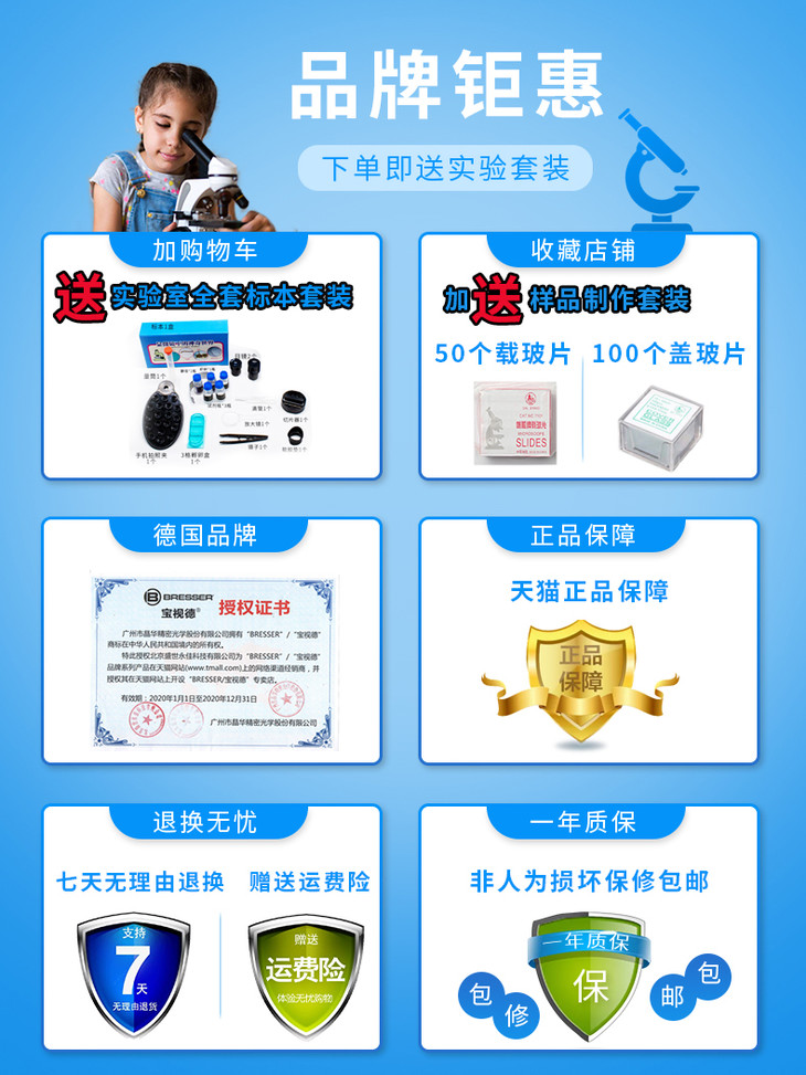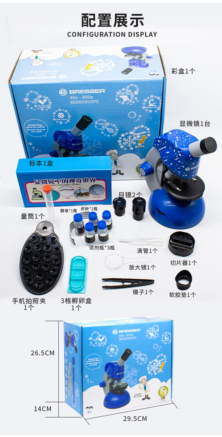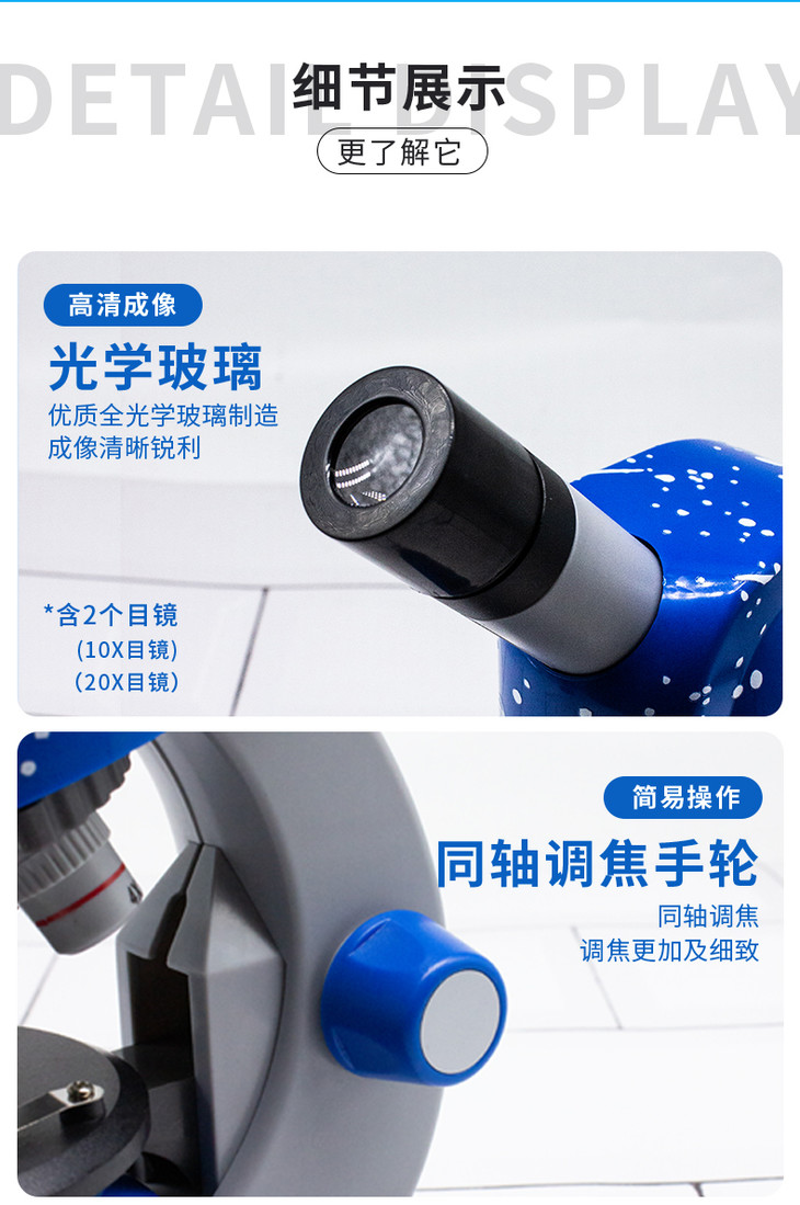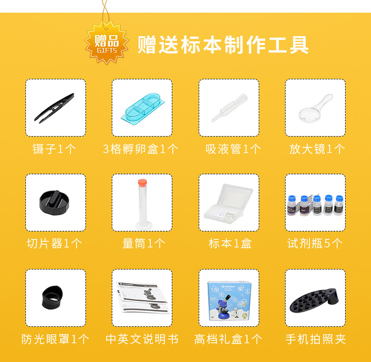 • 颜色分类: 科普入门款+全套配件+玻片套装 科普升级款+全套配件+35片分类标本+玻片(推荐) 全标本款+全套配件+100片标本 幼儿科普款+全套配件+48片儿童标本(4-7岁推荐) 科普升级款+儿童望远镜(热销) 科普升级款+天文望远镜