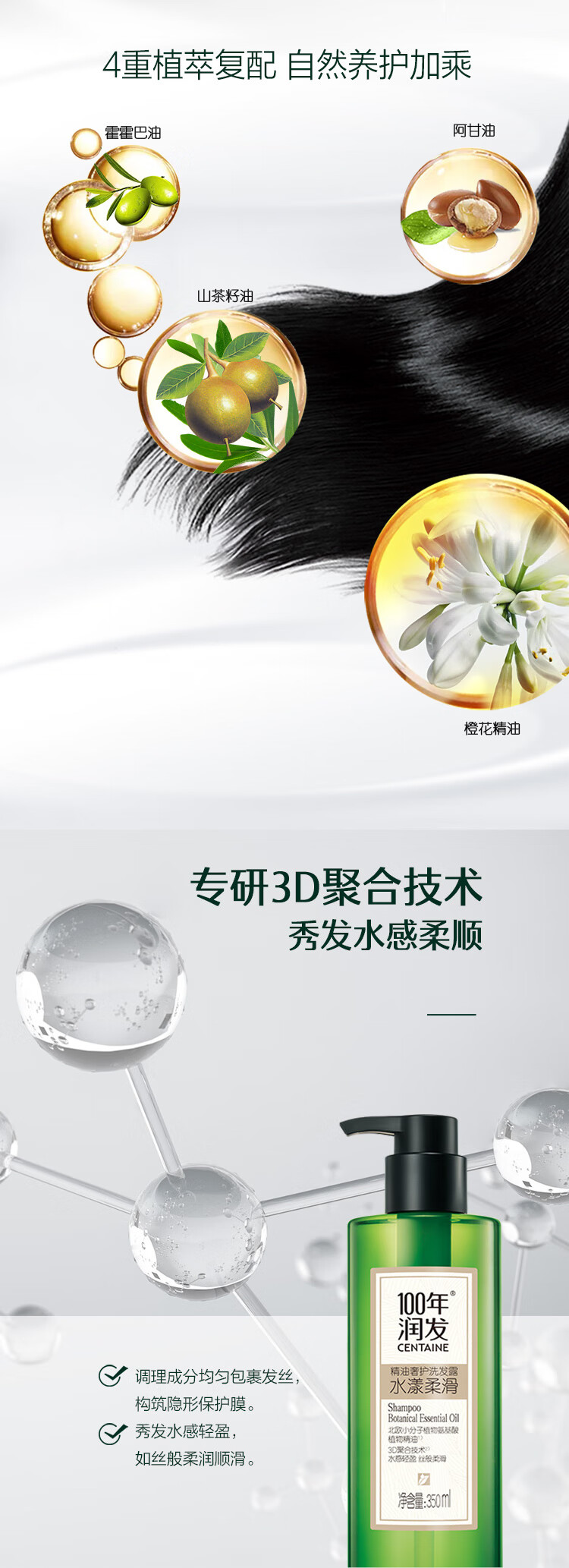 100年润发光泽润养精油奢护洗发露350ML