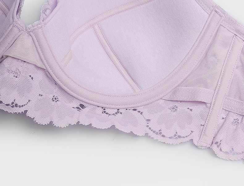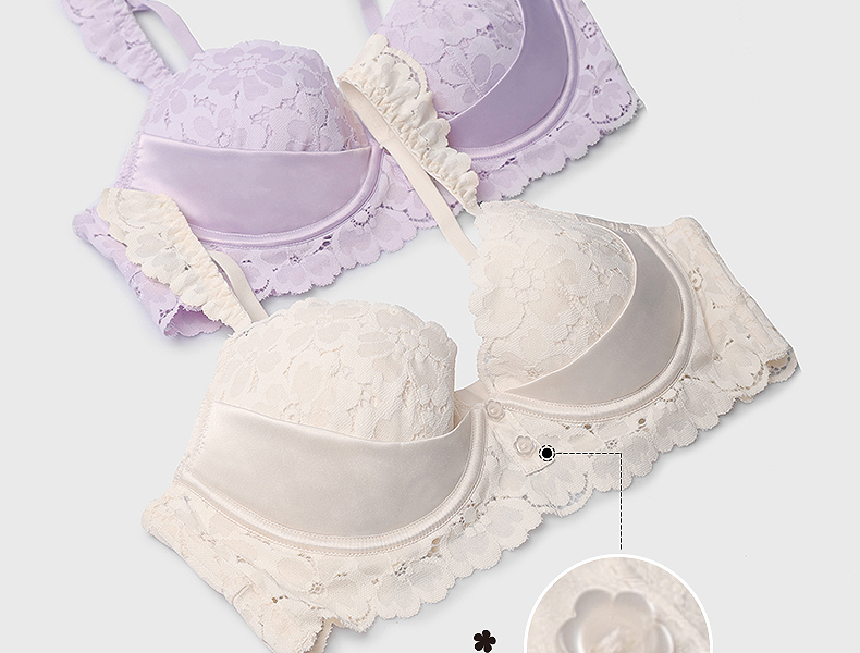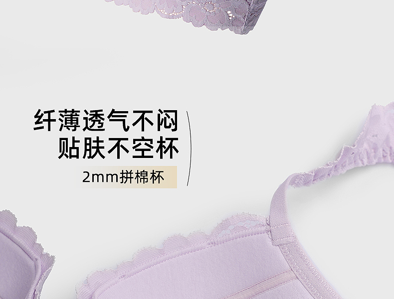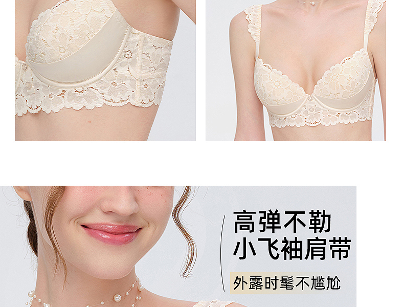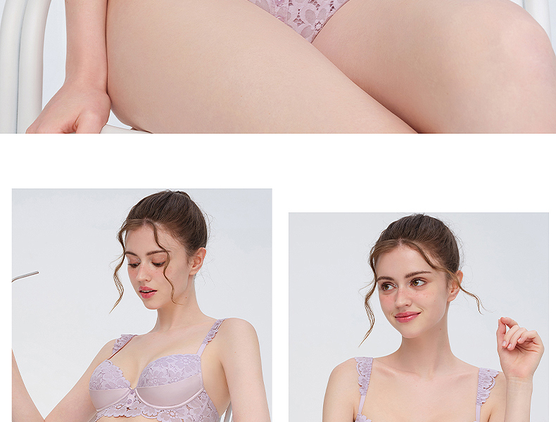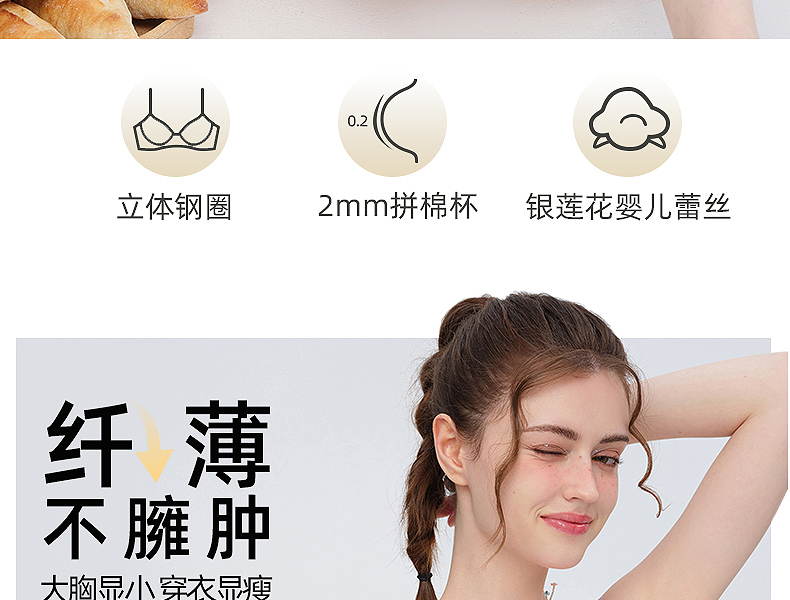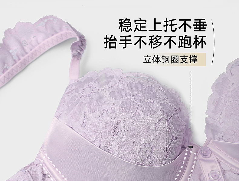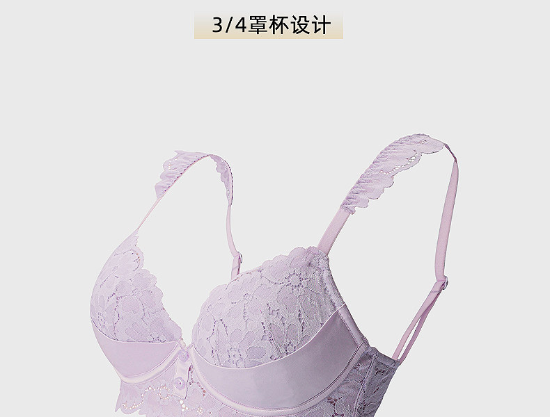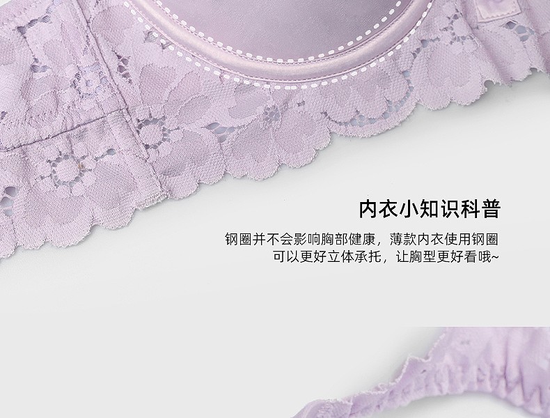 好奇蜜斯法式蕾丝大胸显小内衣女性感夏季薄款文胸罩套装上托新款森塔