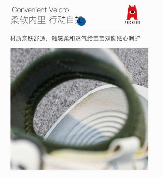 货号:SY423603363PY 颜色:米色、黑绿、粉色 尺码:26-36 材质:鞋面 仿超;鞋底 MD 鞋子整体也很轻便,宝宝穿着跑跳不会累脚,特别适合活泼爱动的宝贝们~ 鞋底防滑耐磨,回弹性也很好,宝宝户外玩耍穿着它,又自在有安全~ 鞋子内里采用亲肤吸汗的材质,让宝宝脚丫时刻保持舒适不闷脚 魔术贴设计让宝宝穿脱超级方便,不用为系鞋带而烦恼!! 鞋头微翘贴合宝宝走路的习惯,让宝宝走路更加稳,不容易摔倒