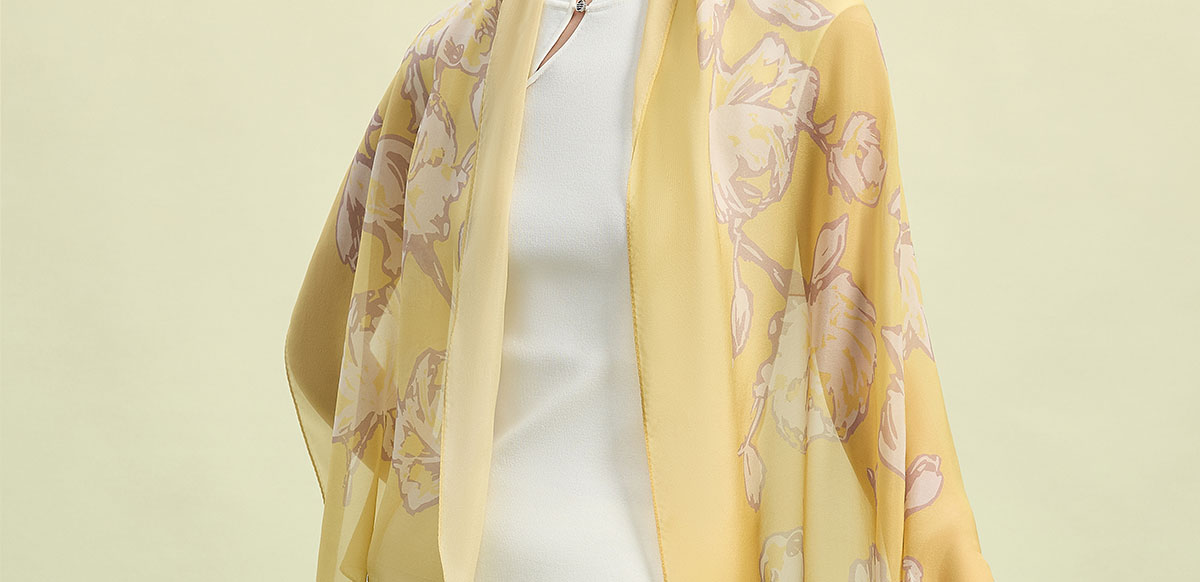 万事利“丽芙花园”51厘米双面印花真丝小方巾
