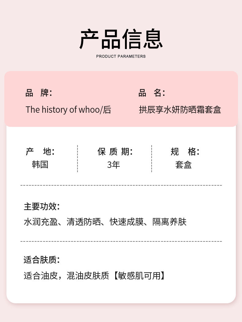 【预售 急单慎拍】后拱辰享水妍防晒霜乳60ml套盒清爽水润控油SPF50+