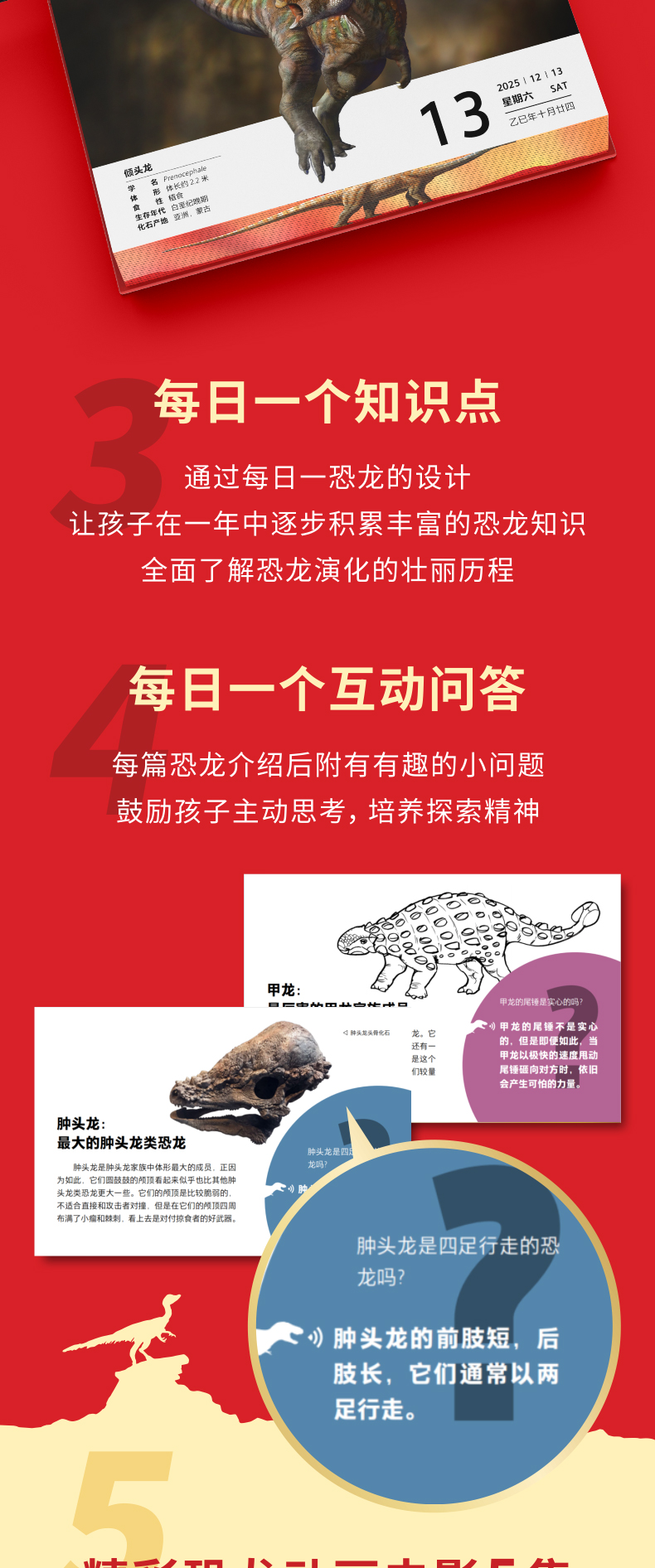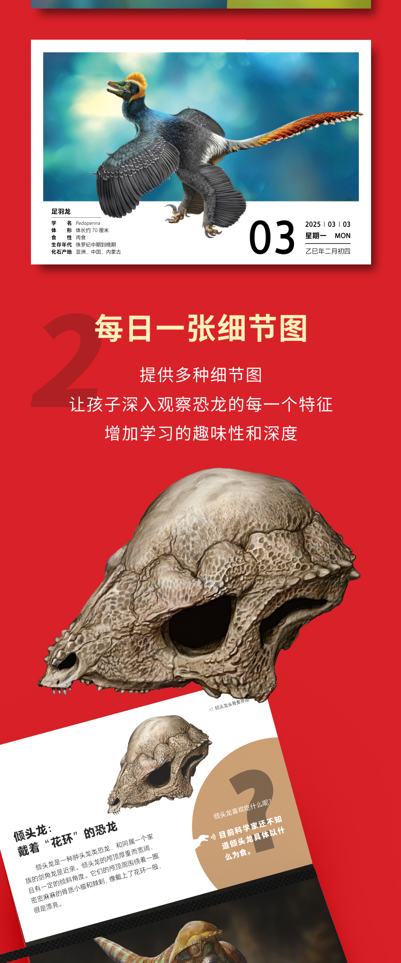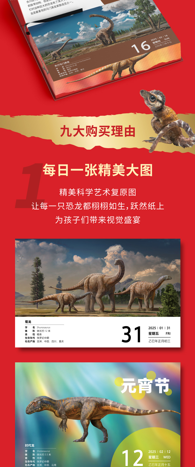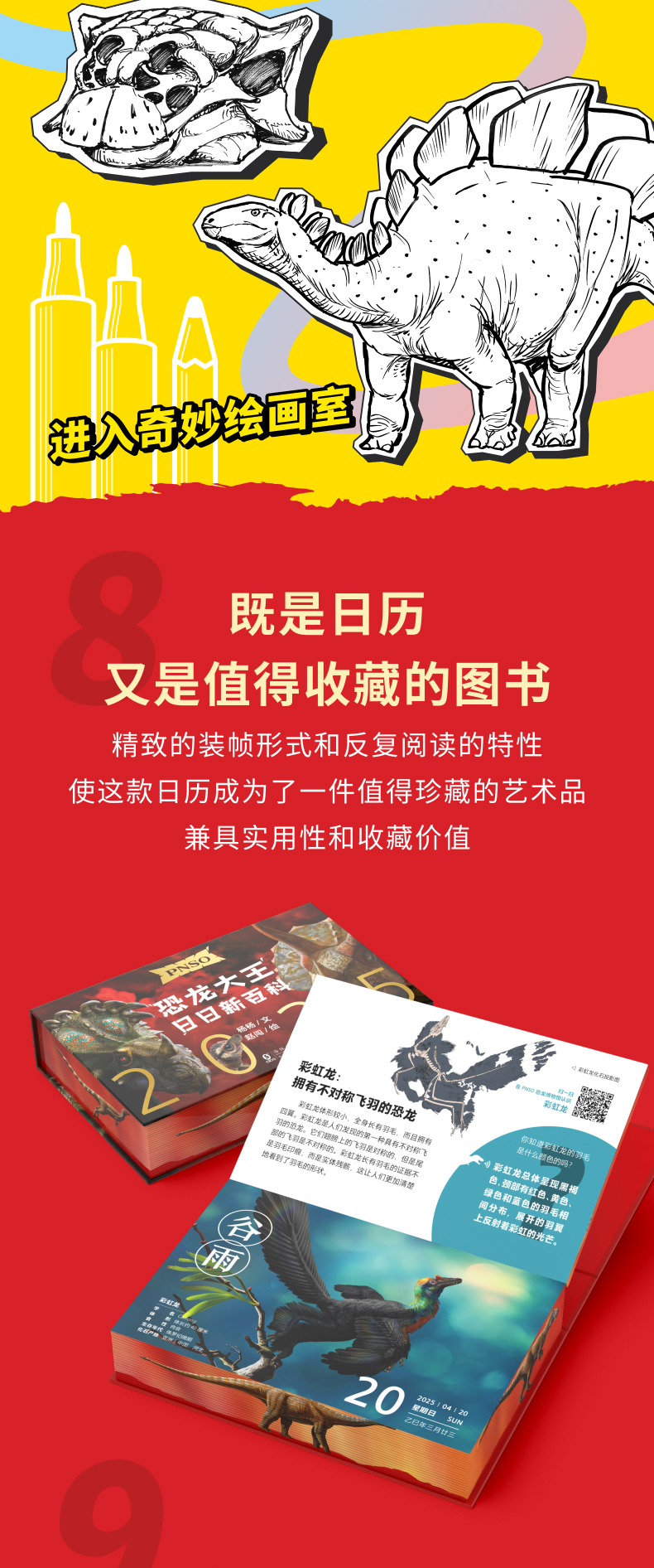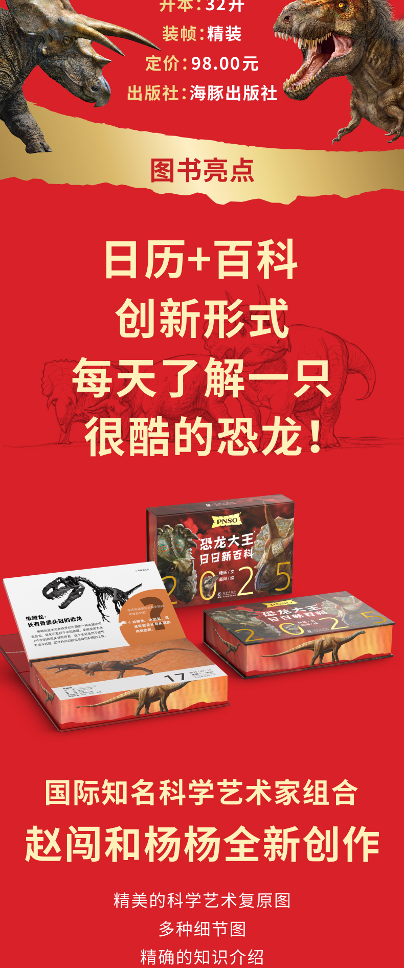 恐龙日历2025年 PNSO恐龙大王日日新百科 随机赠送一款恐龙小卡