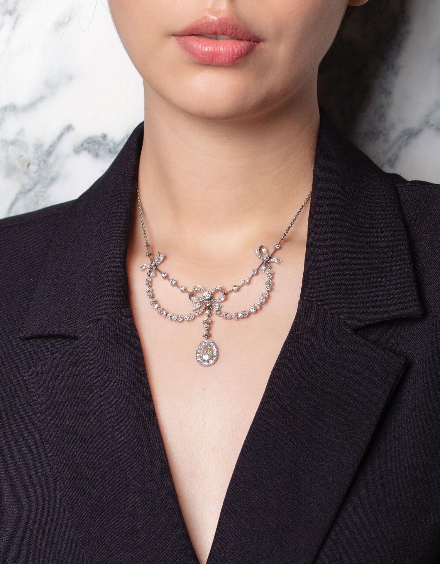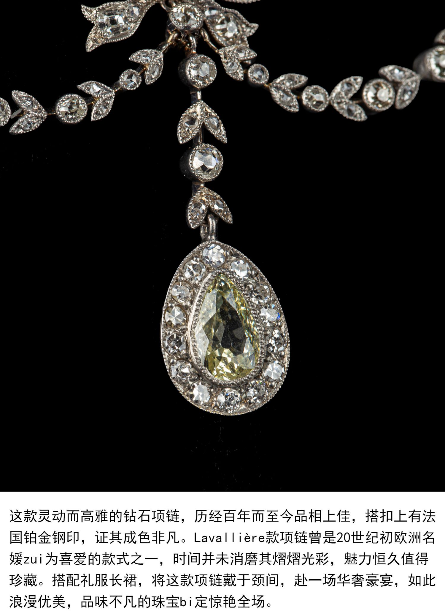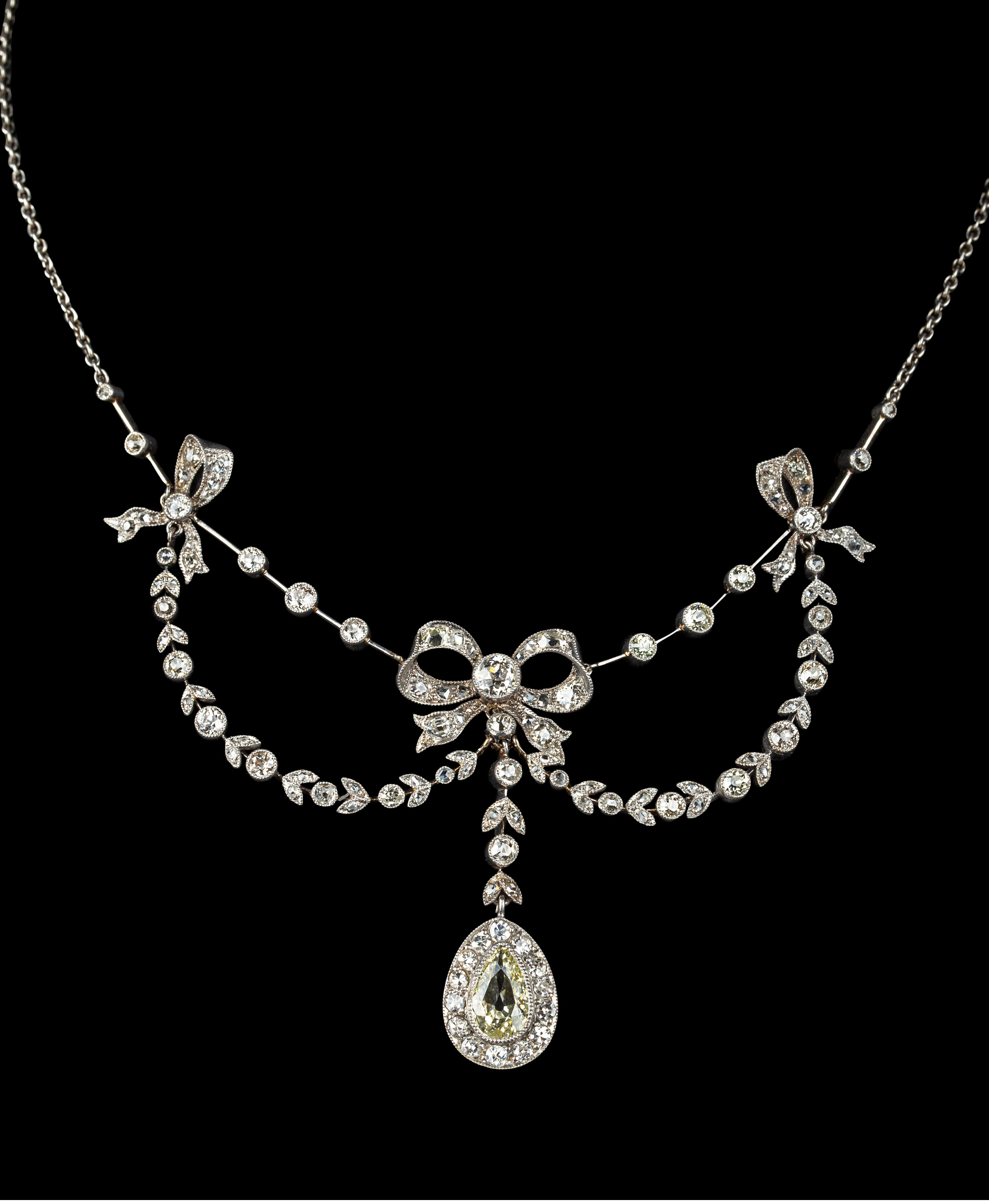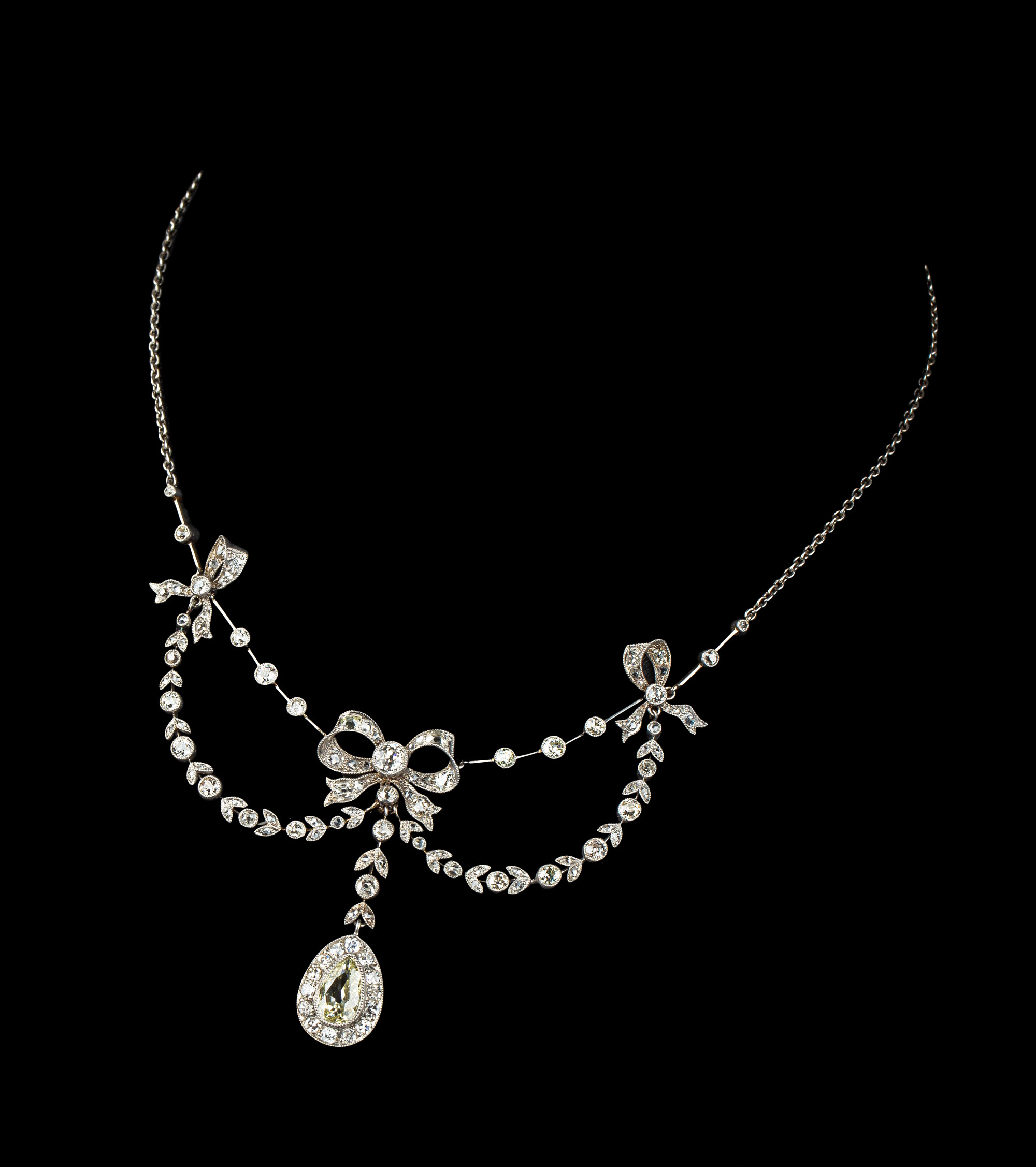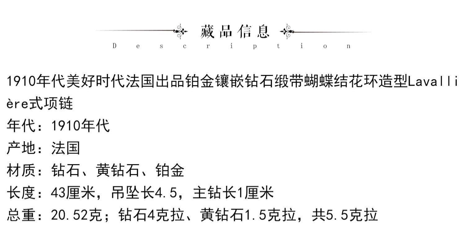 独角鹿西洋古董珠宝首饰美好时代铂金镶嵌钻石缎带蝴蝶结花环项链